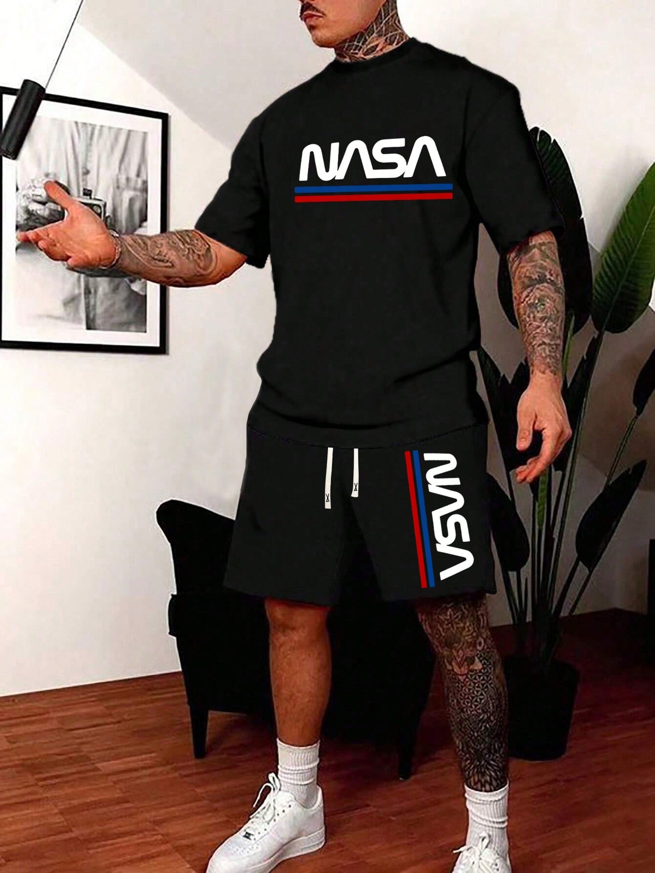 Men's Summer Letter Print Short Sleeve T-Shirt And Shorts Set