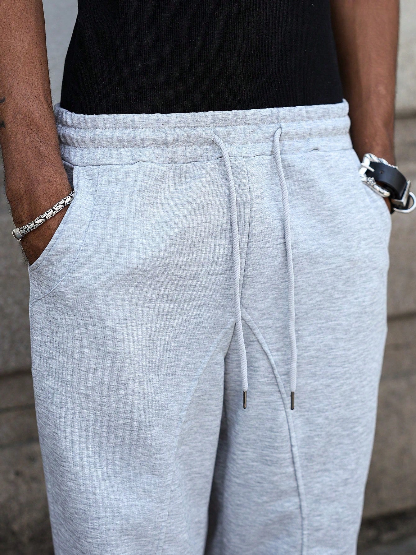 PAVTROS Men's Elastic Drawstring Waist Solid Color Street Style Summer Grey Sweatpants Joggers