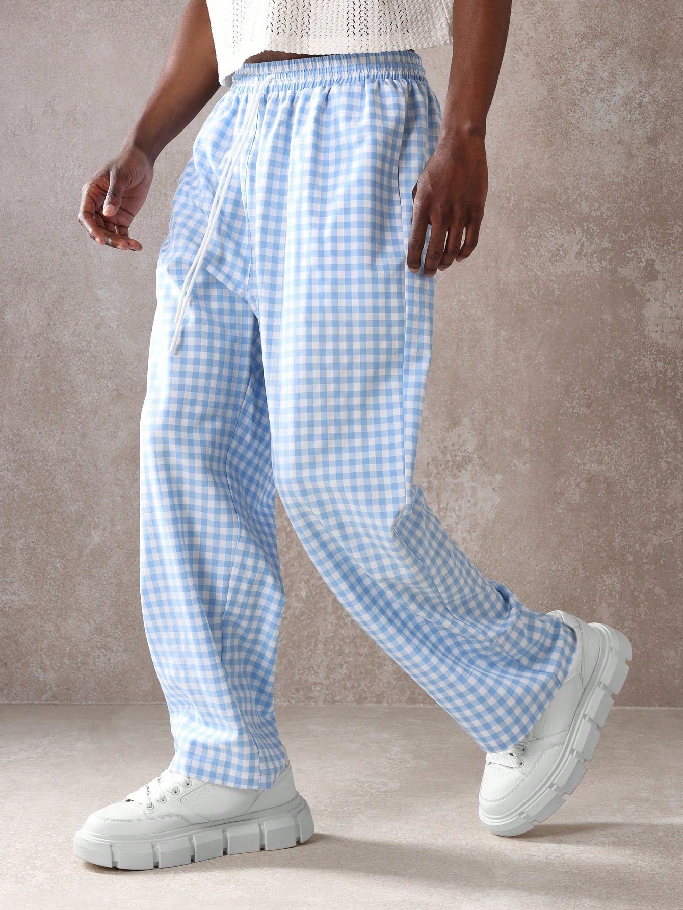 SUMWON Gingham Check Lounge Pants Elastic Waist Wide-Leg Casual Summer Palazzo Pants Breathable Relaxed
