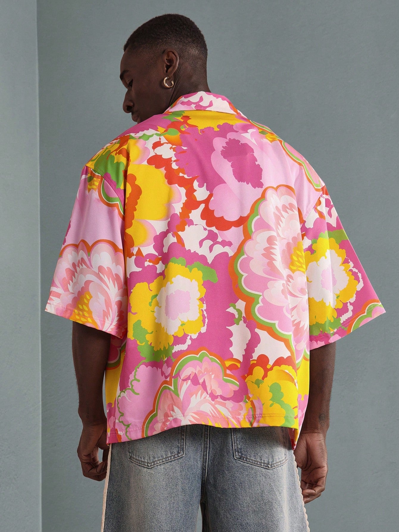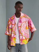 SUMWON Retro Floral Resort Shirt Boxy Fit Hawaiian Style Button Down Summer Beach Vacation Camp Shirt Festival Short Sleeve Relaxed Holiday Party Casual