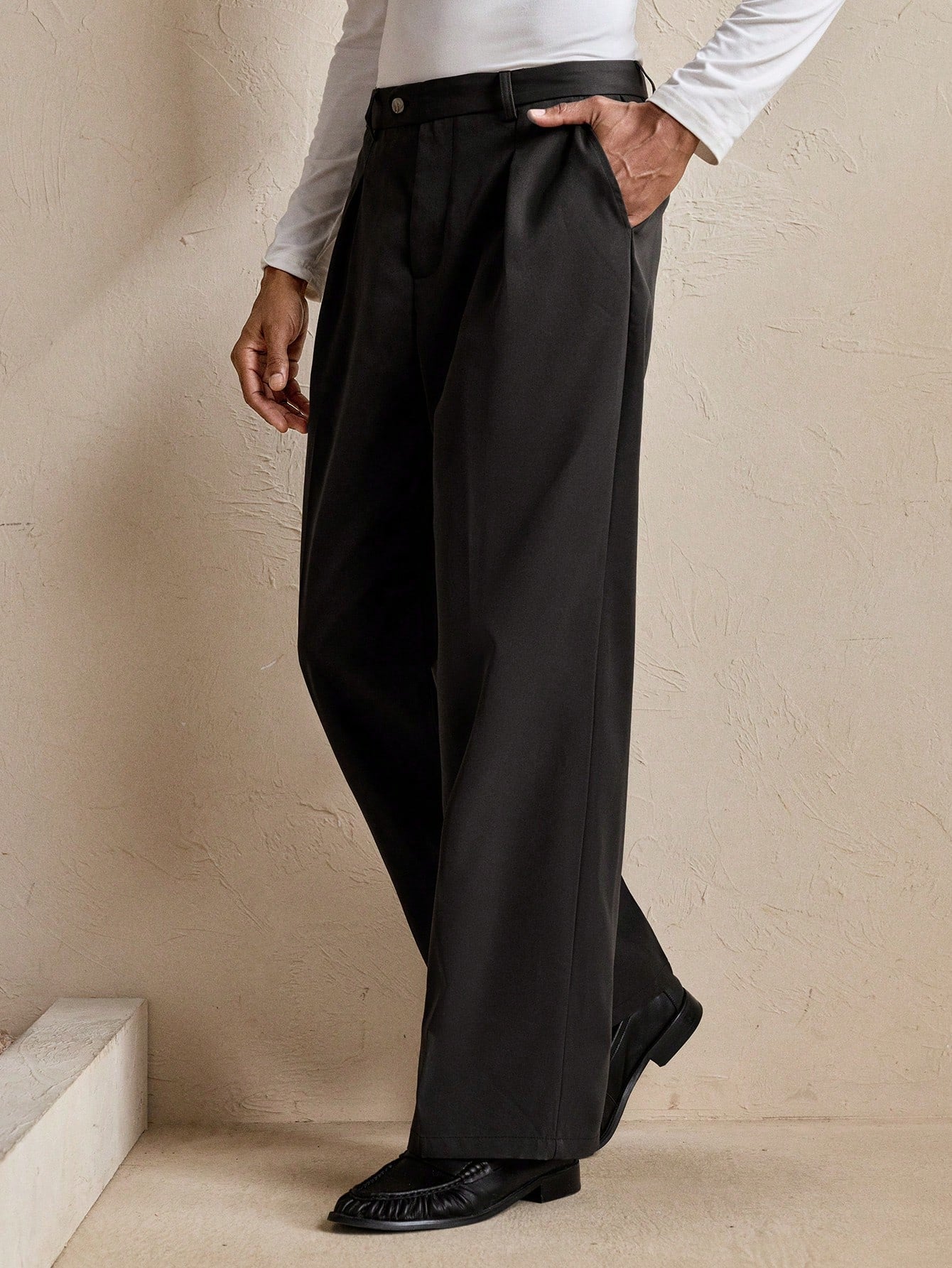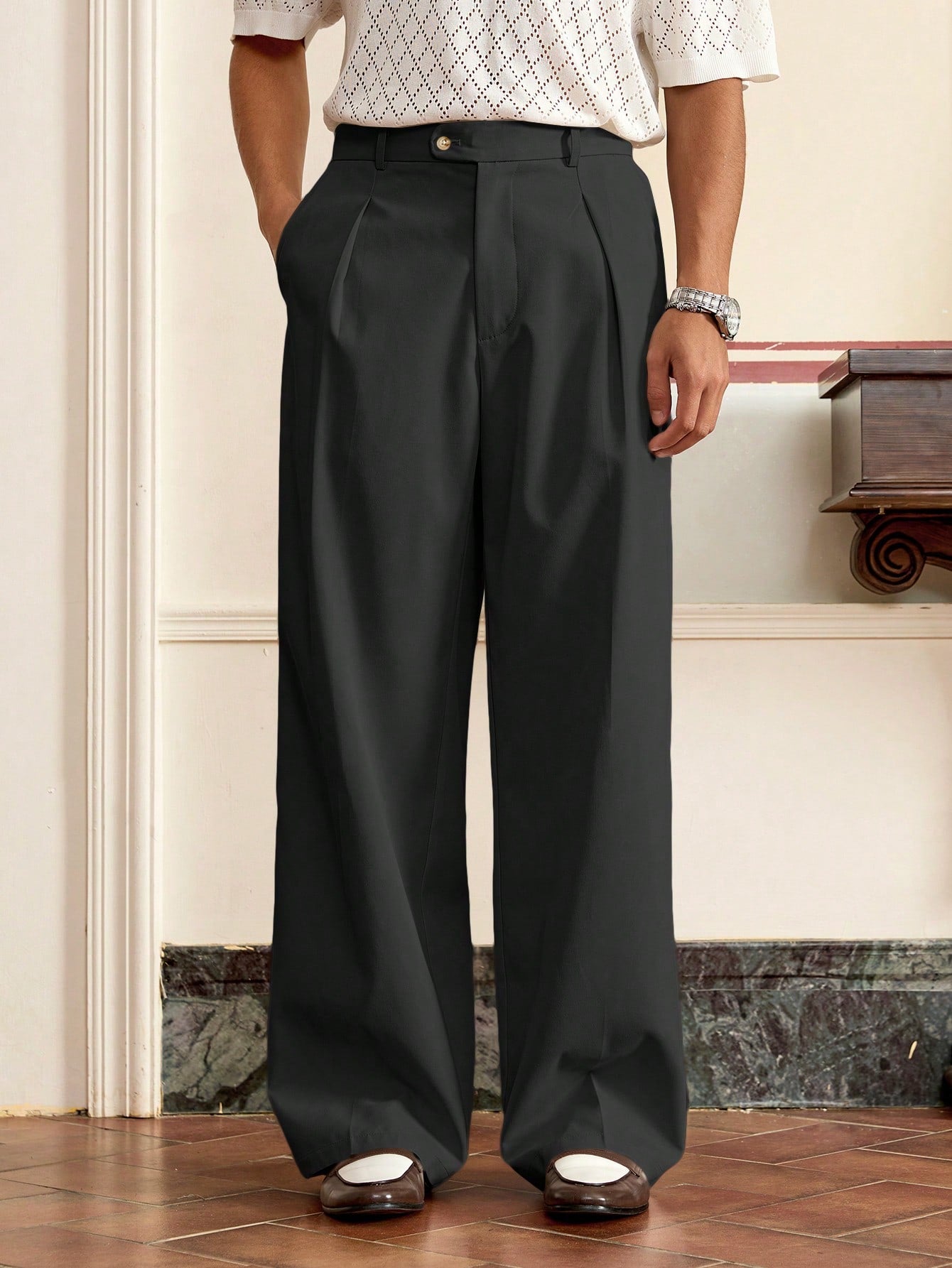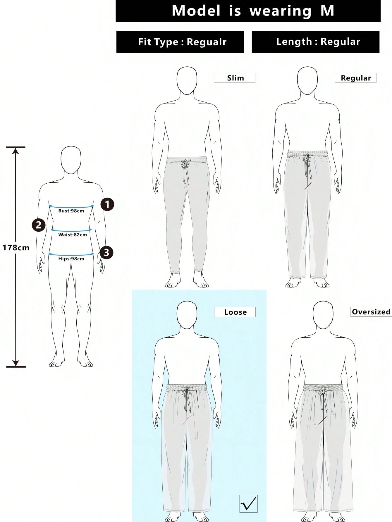 SWAVVY Men's Woven Casual Loose Solid Color Elastic Waist Straight Leg Pants