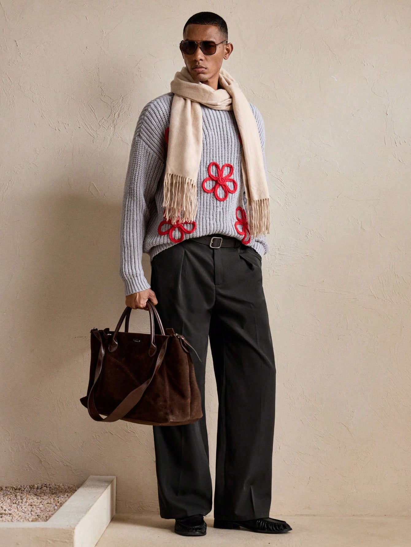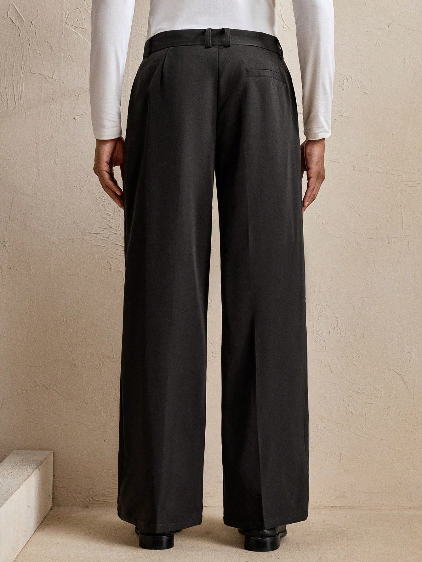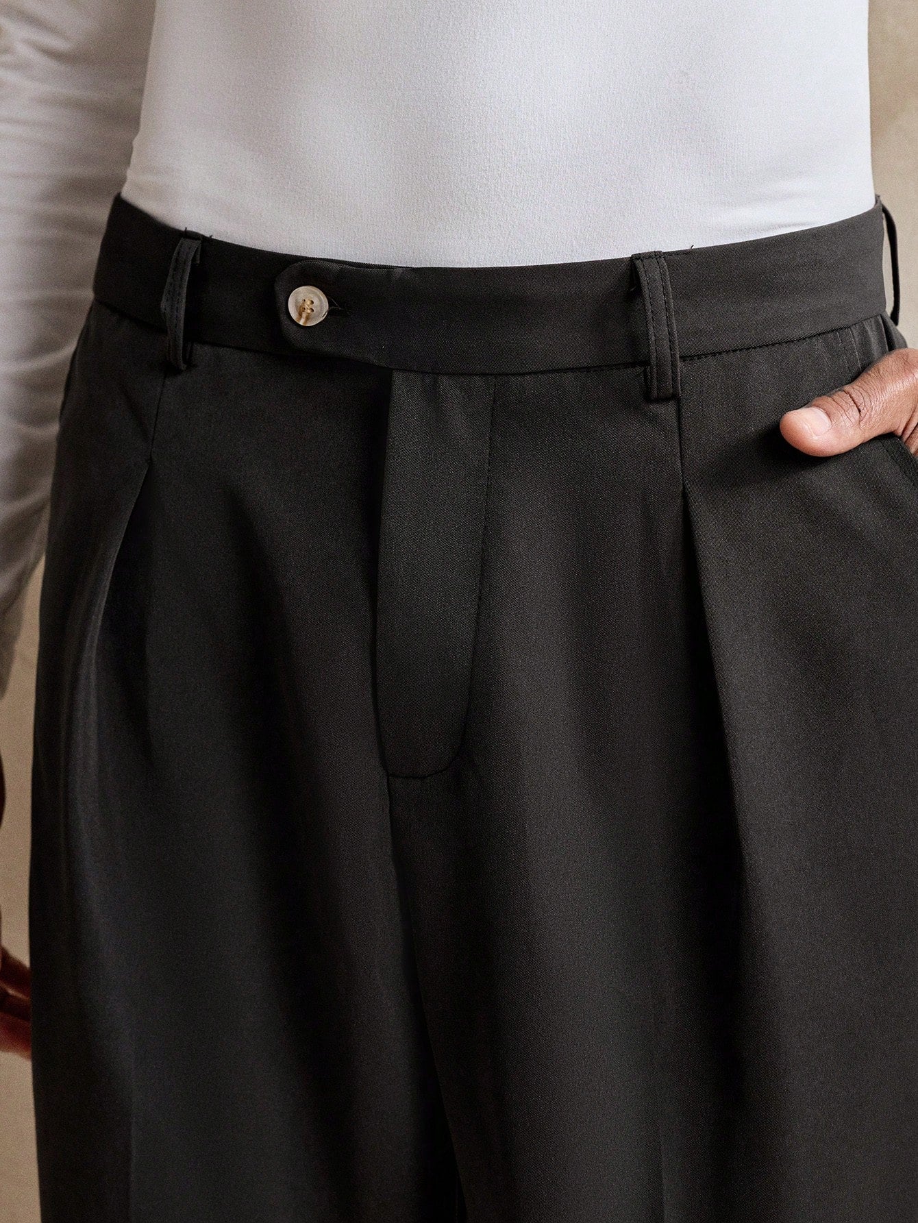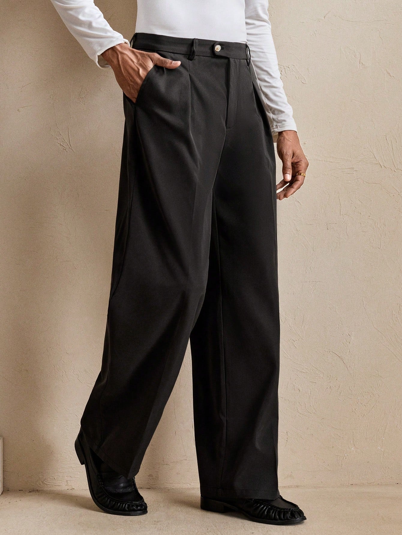 SWAVVY Men's Woven Casual Loose Solid Color Elastic Waist Straight Leg Pants