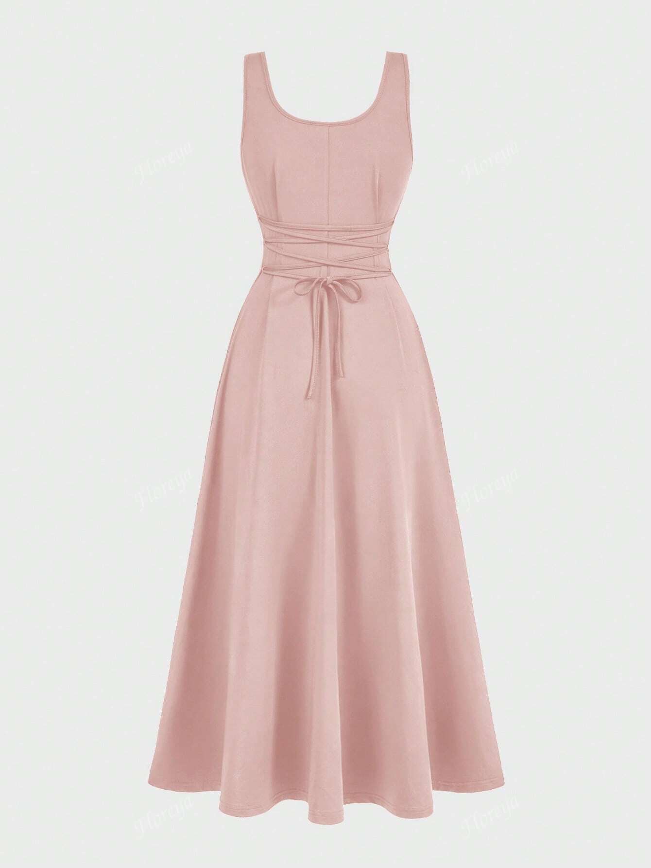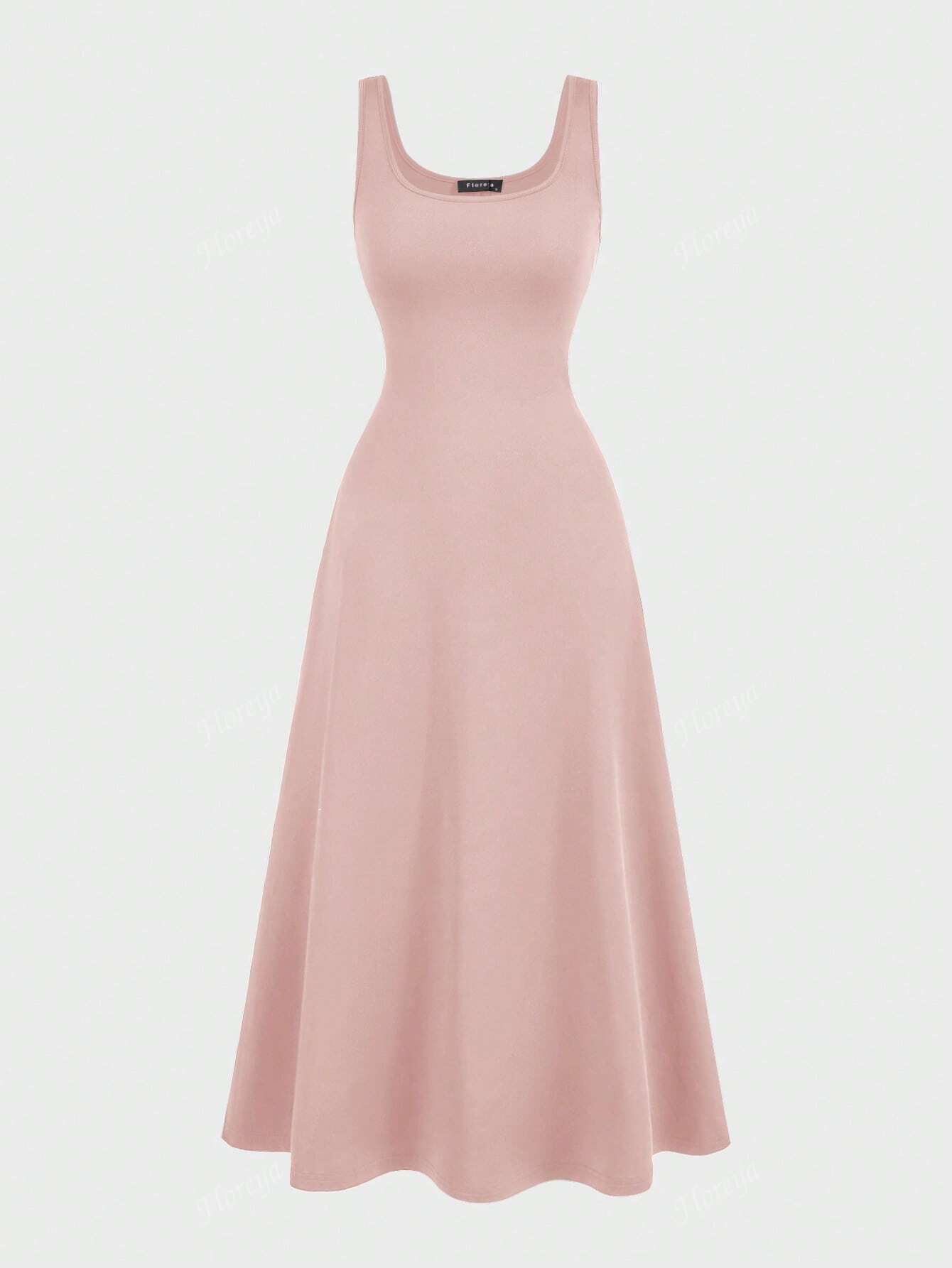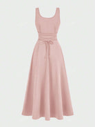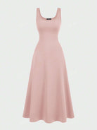 2025 New Arrival European And American Elegant High-End Sleeveless Fitted Midi Dress, Gem Blue Color