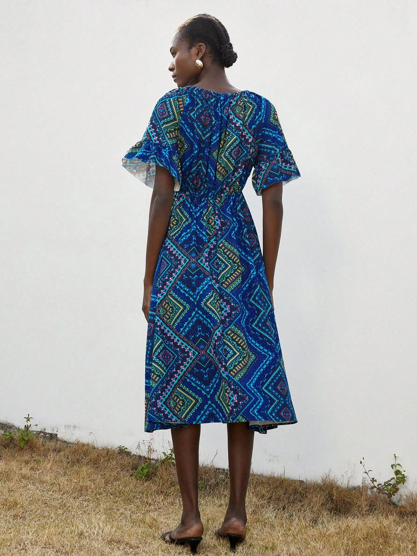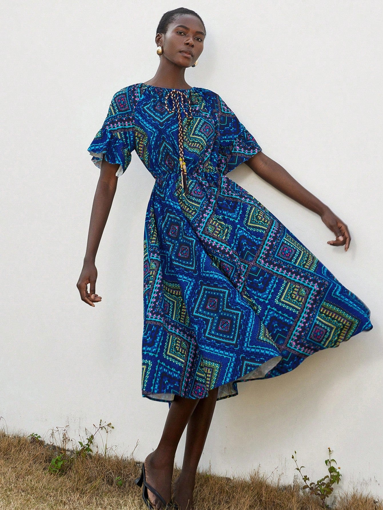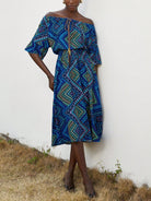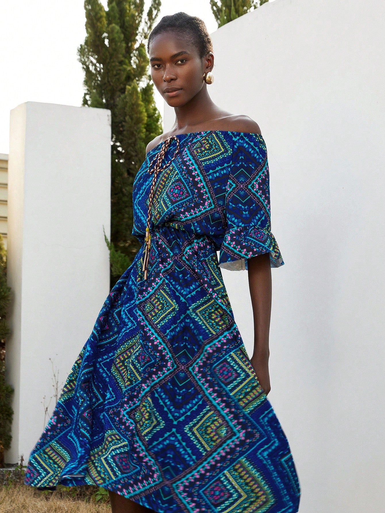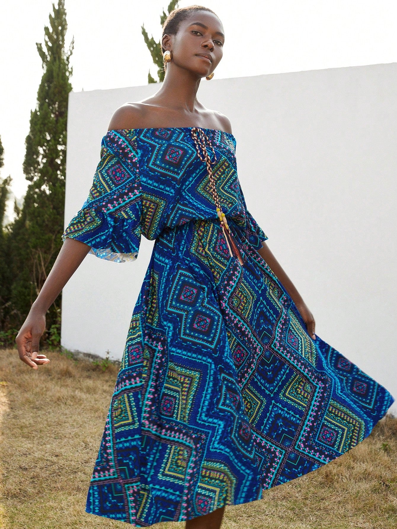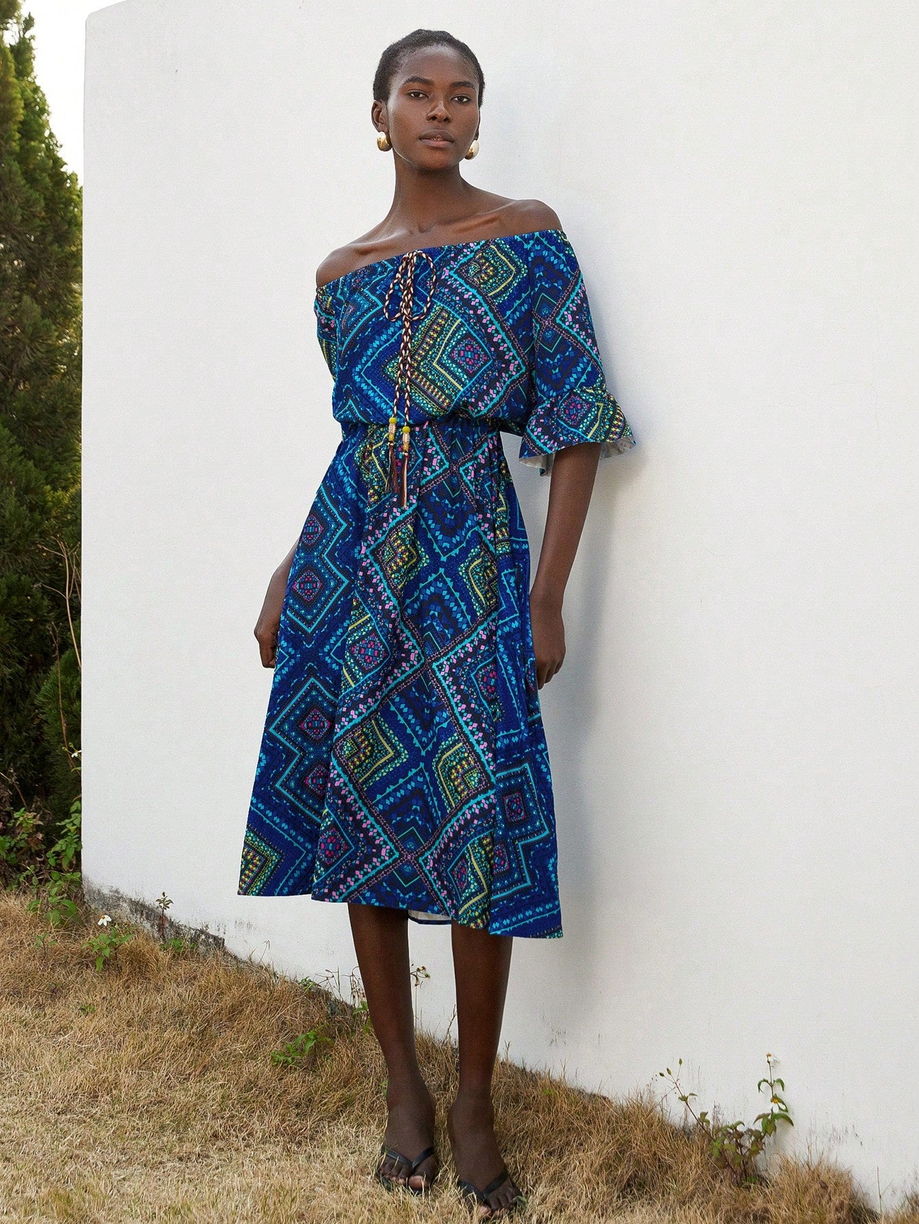 Aveloria Modichic Slouchy And Comfortable Vacation Two-Wear Off Shoulder Waisted Perlis Print Contrast