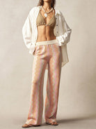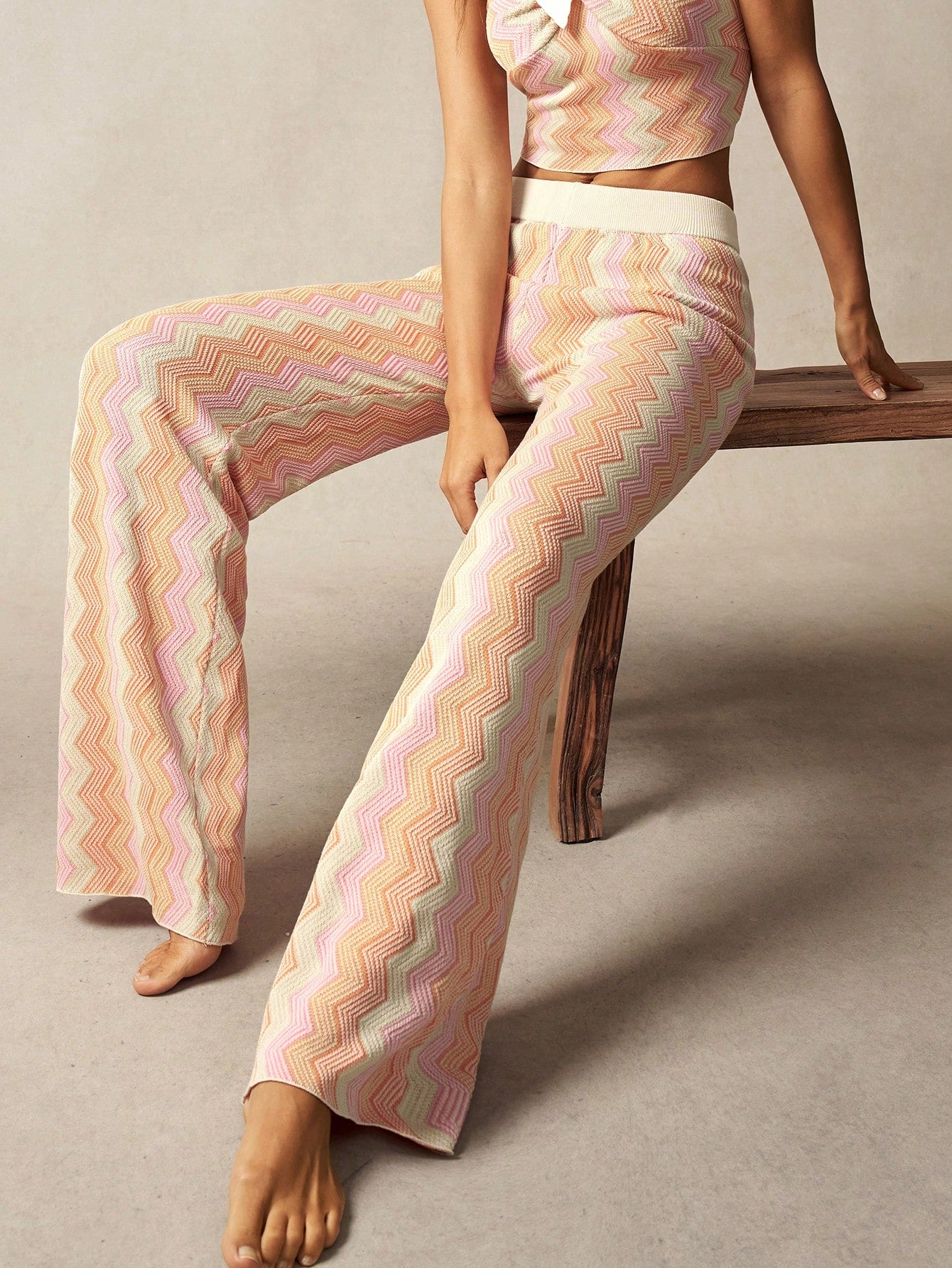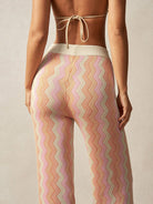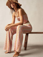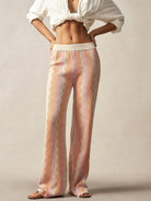 Bohemela BOHO Women's Vacation Casual Contrast Color Herringbone Knit Pants