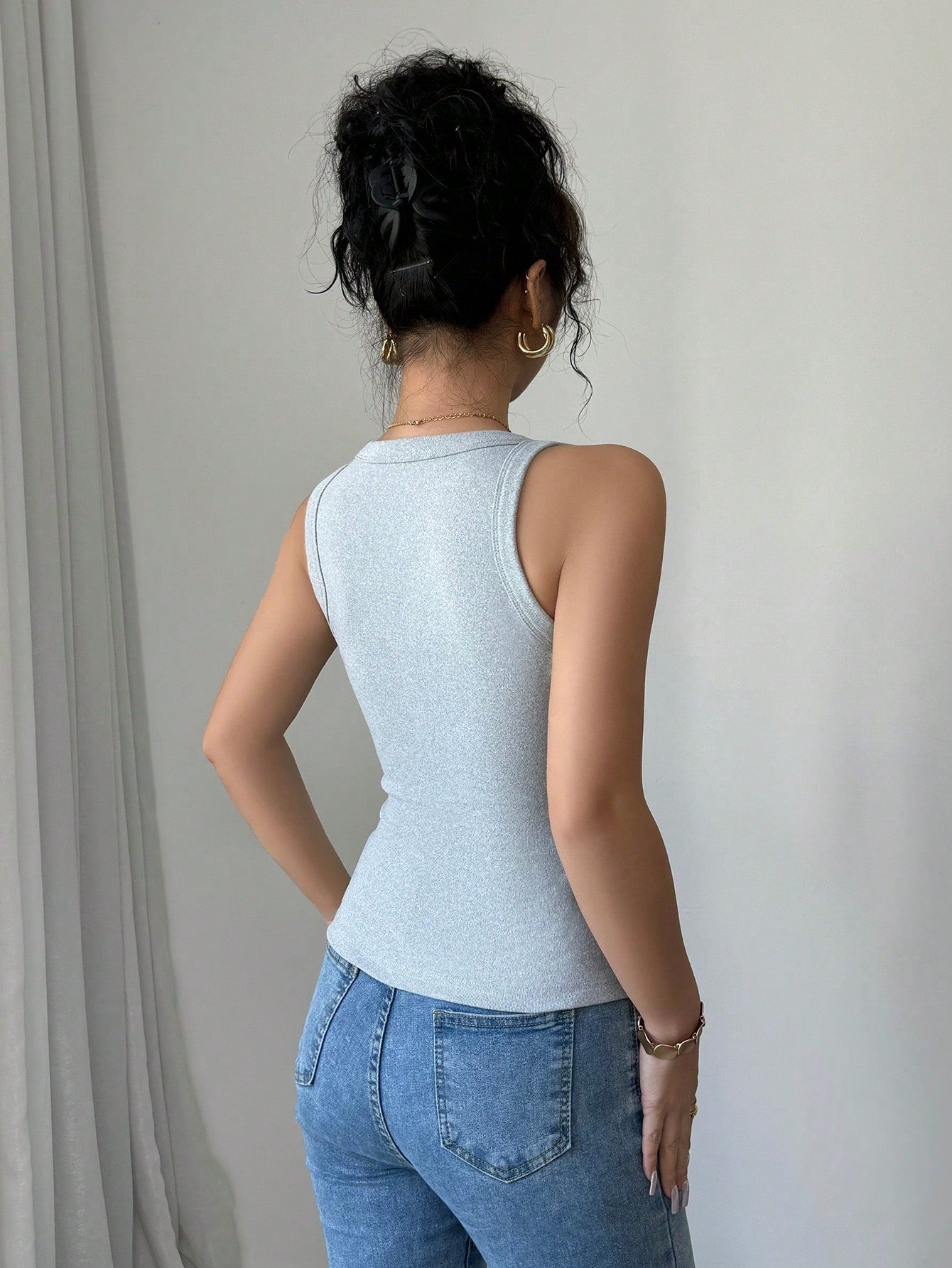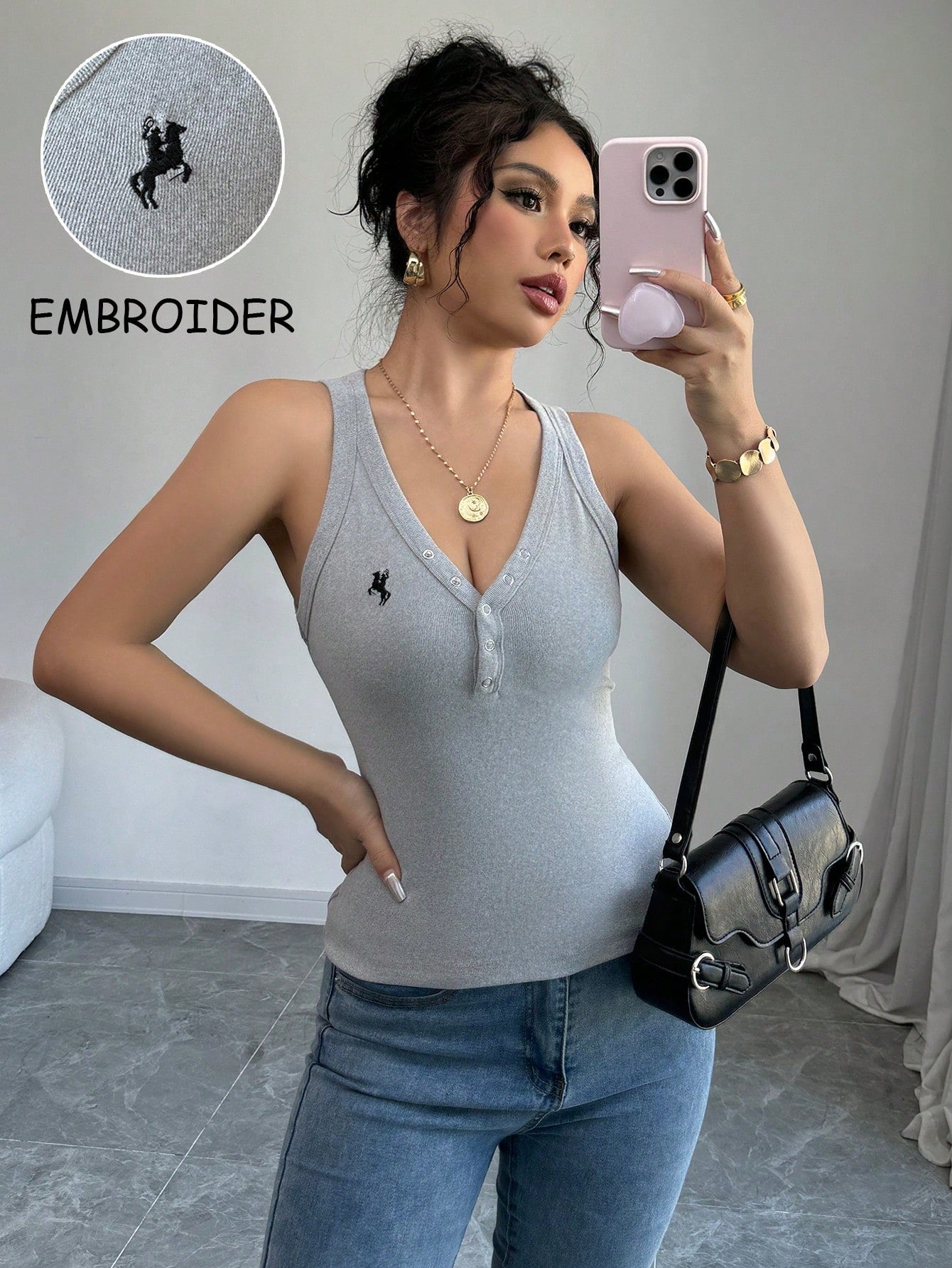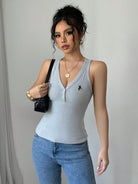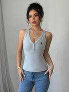Chiquease Women's Slim Fit Sleeveless Top With Oblique Cut And American Casual Embroidered Patches, New