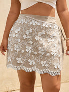 Elaquor Plus Size Women Lace Patchwork Design Casual A-Line Skirt, Versatile For Daily, Vacation, Commute,
