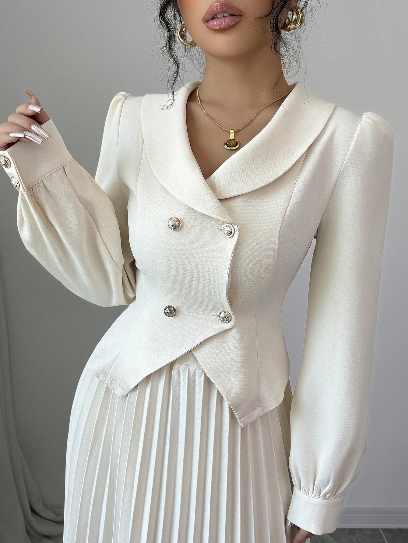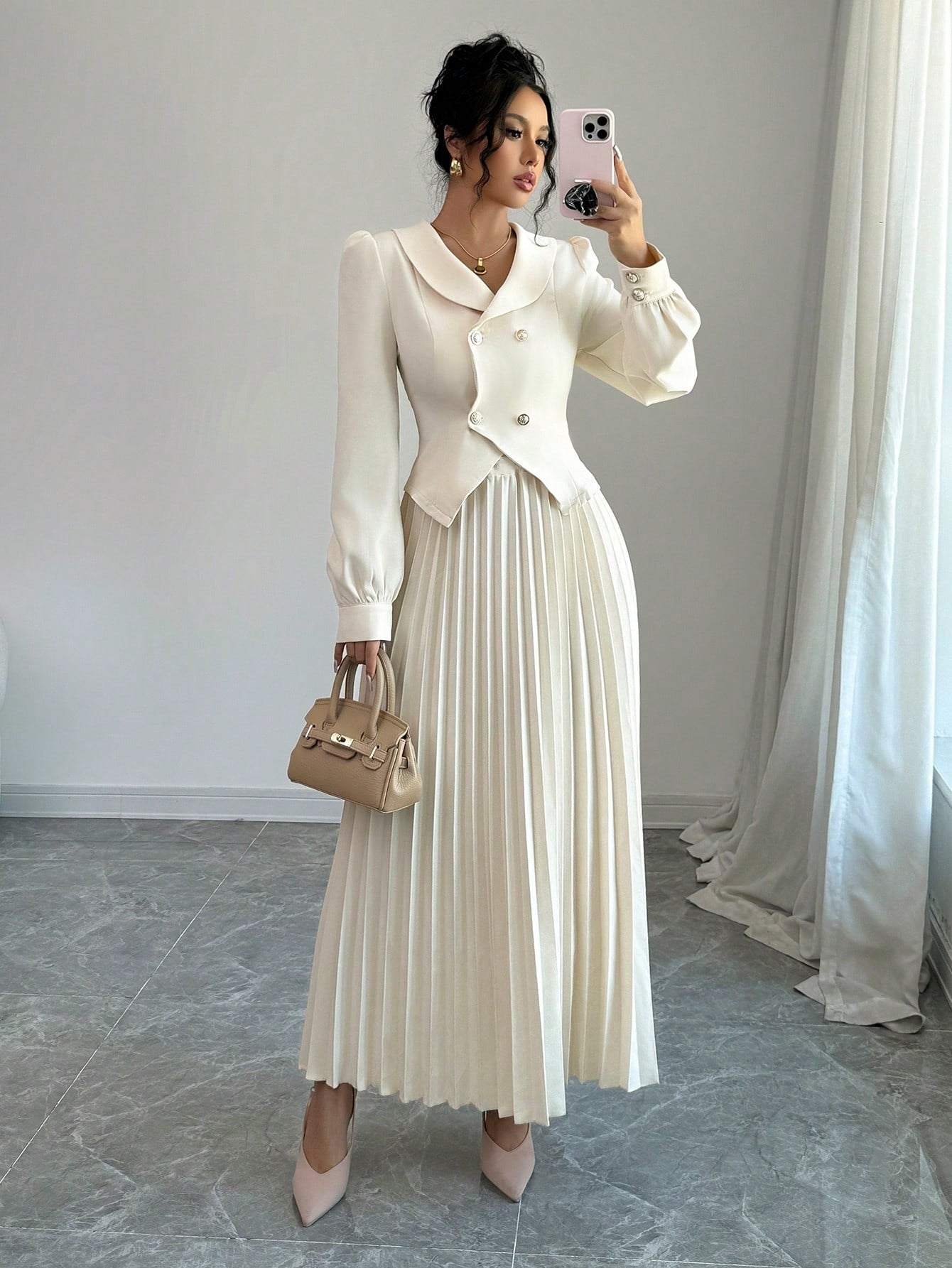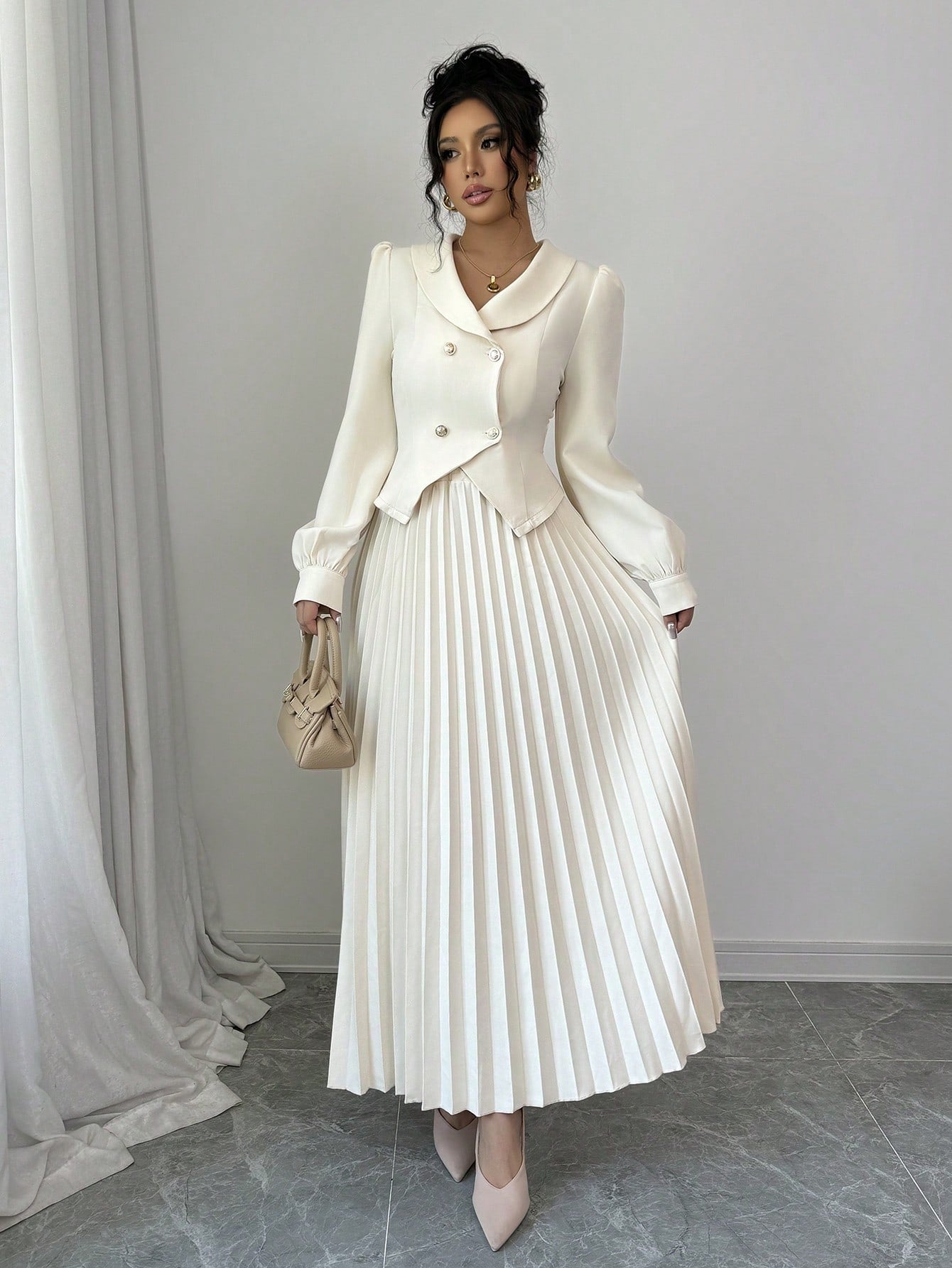 Elenzga Apricot High-End Women 2Pcs Set: Jacket + Pleated Maxi Skirt Fall Cloth For Women