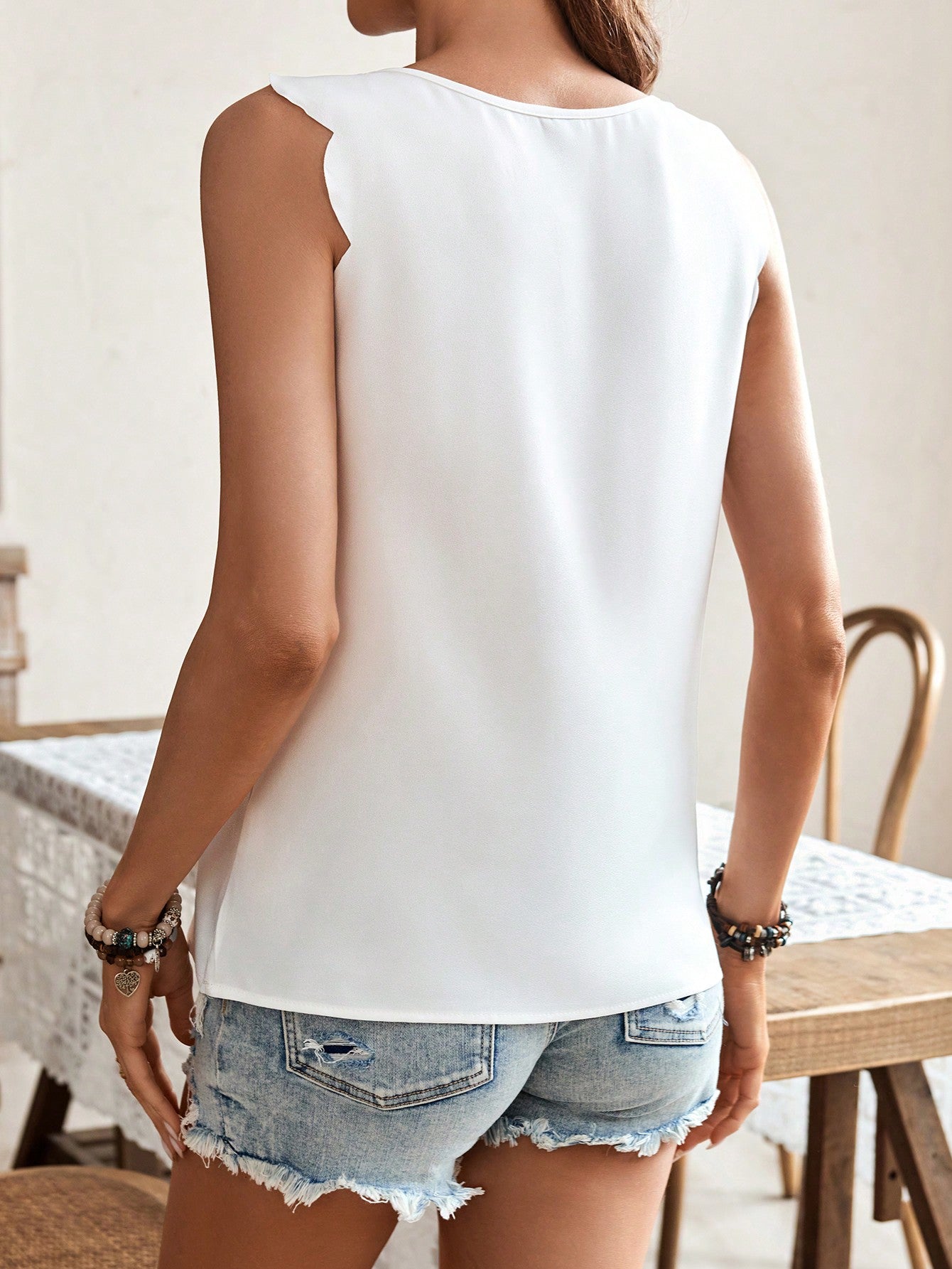 EMERY ROSE Women Lock Hole Collar Summer Loose Tank Top With Shell Edge Decoration
