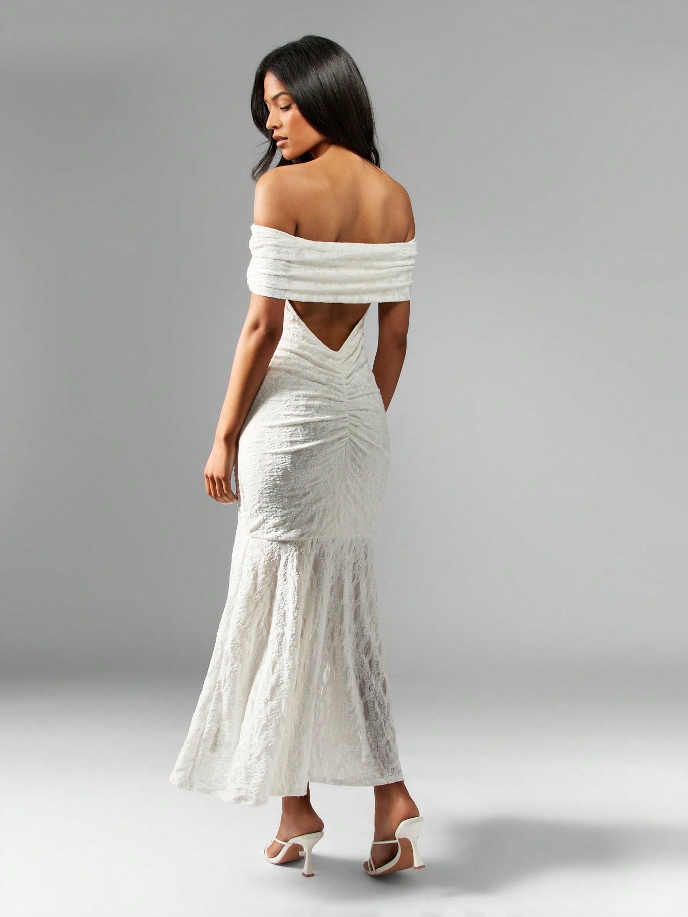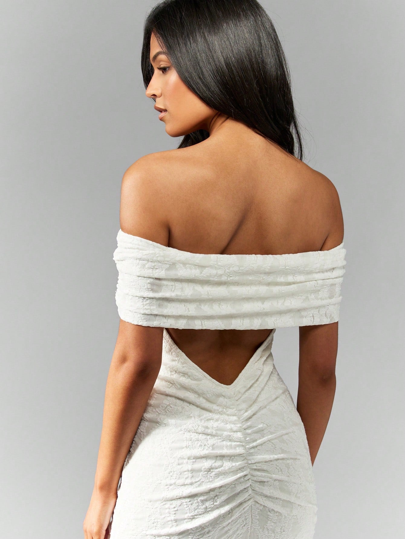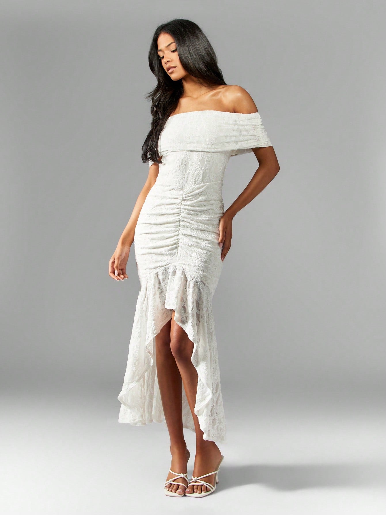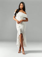 MISSGUIDED Off Shoulder Ruched Evening Gown High Low Hem Midaxi Dress Bridal Shower Reception Special