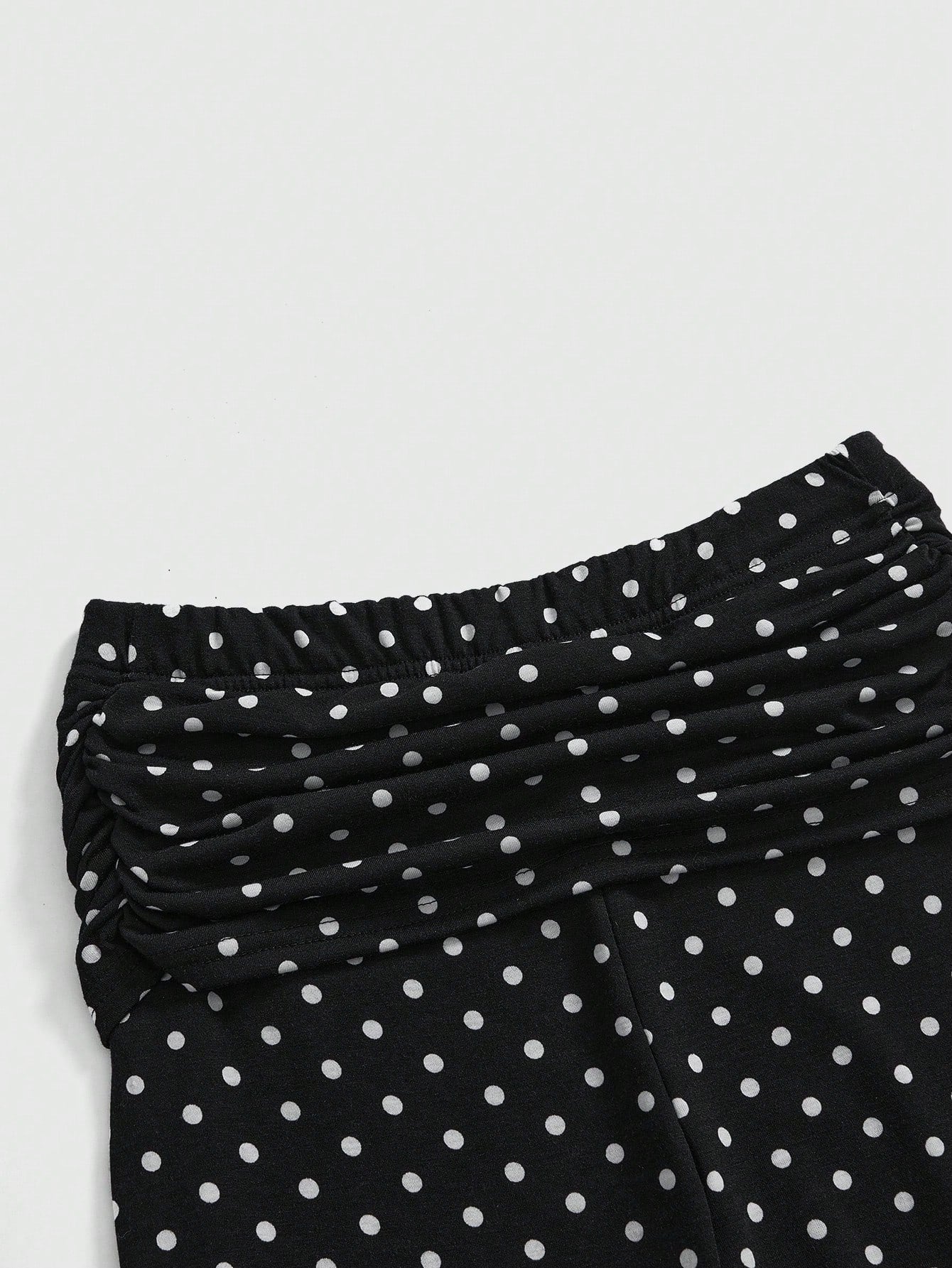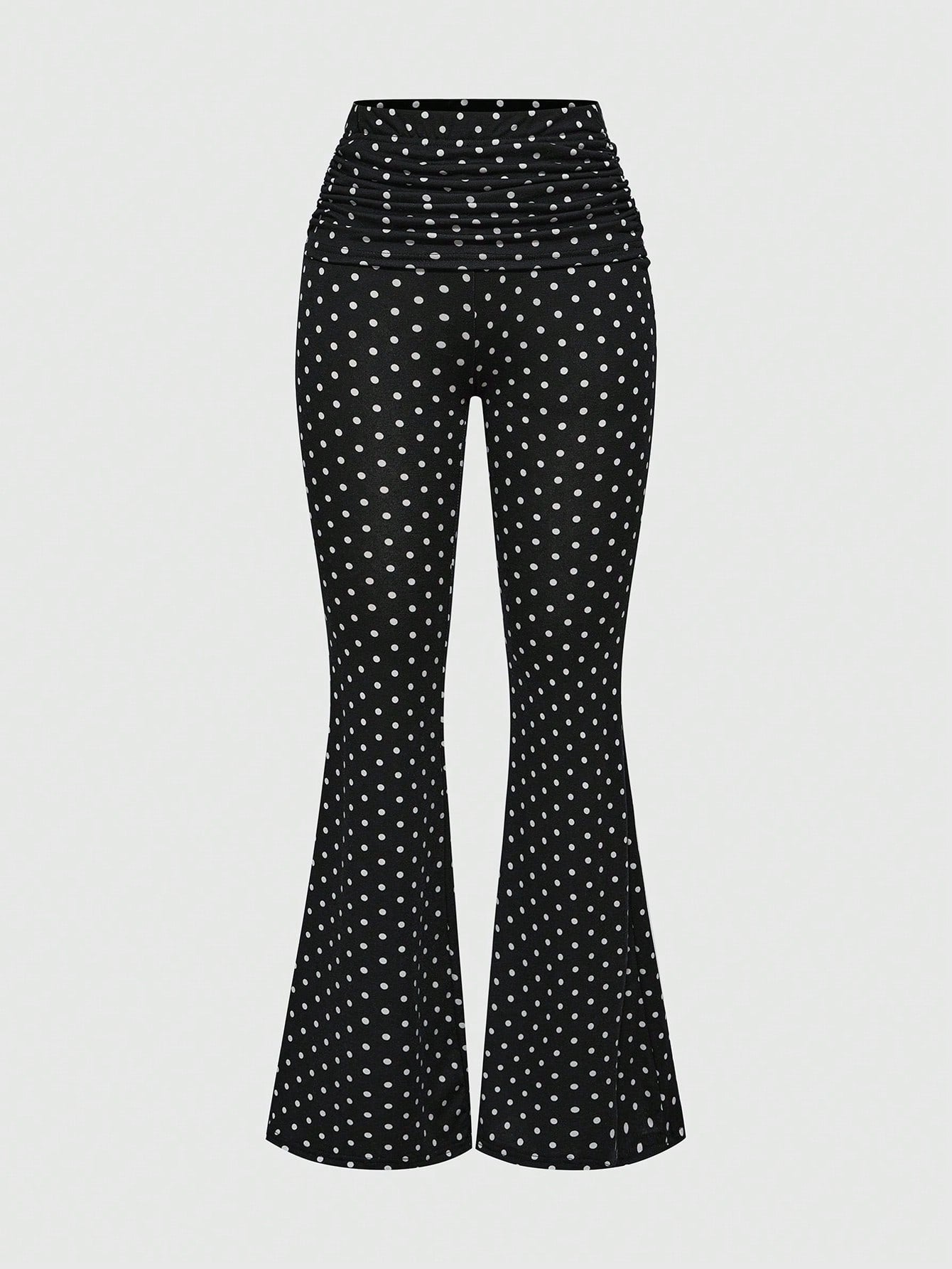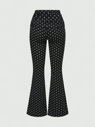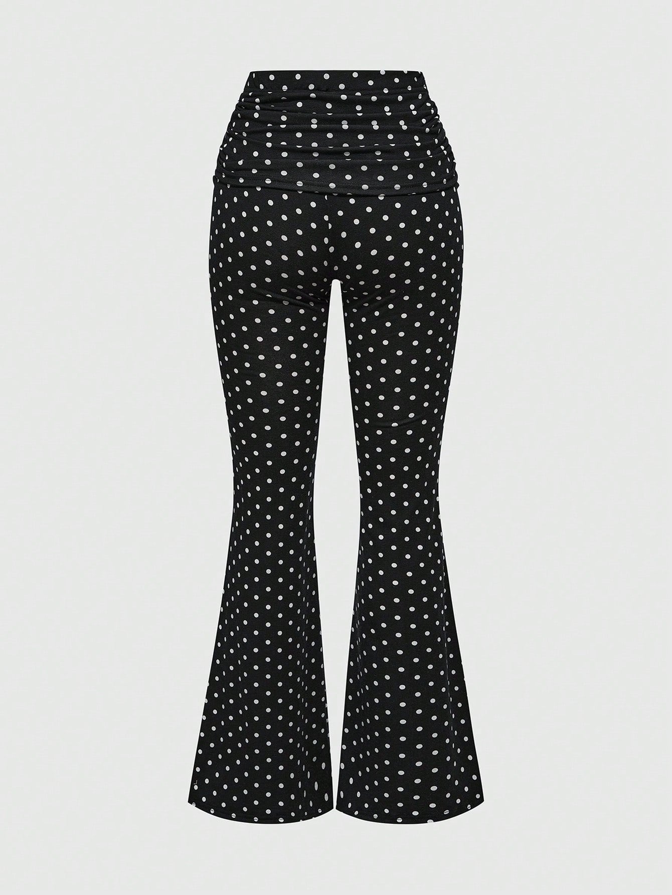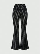 ROMWE Kawaii Women's Polka Dot Print Fitted Flare Pants, Y2K Style Roll-Up Waist Fashion Flare Pants