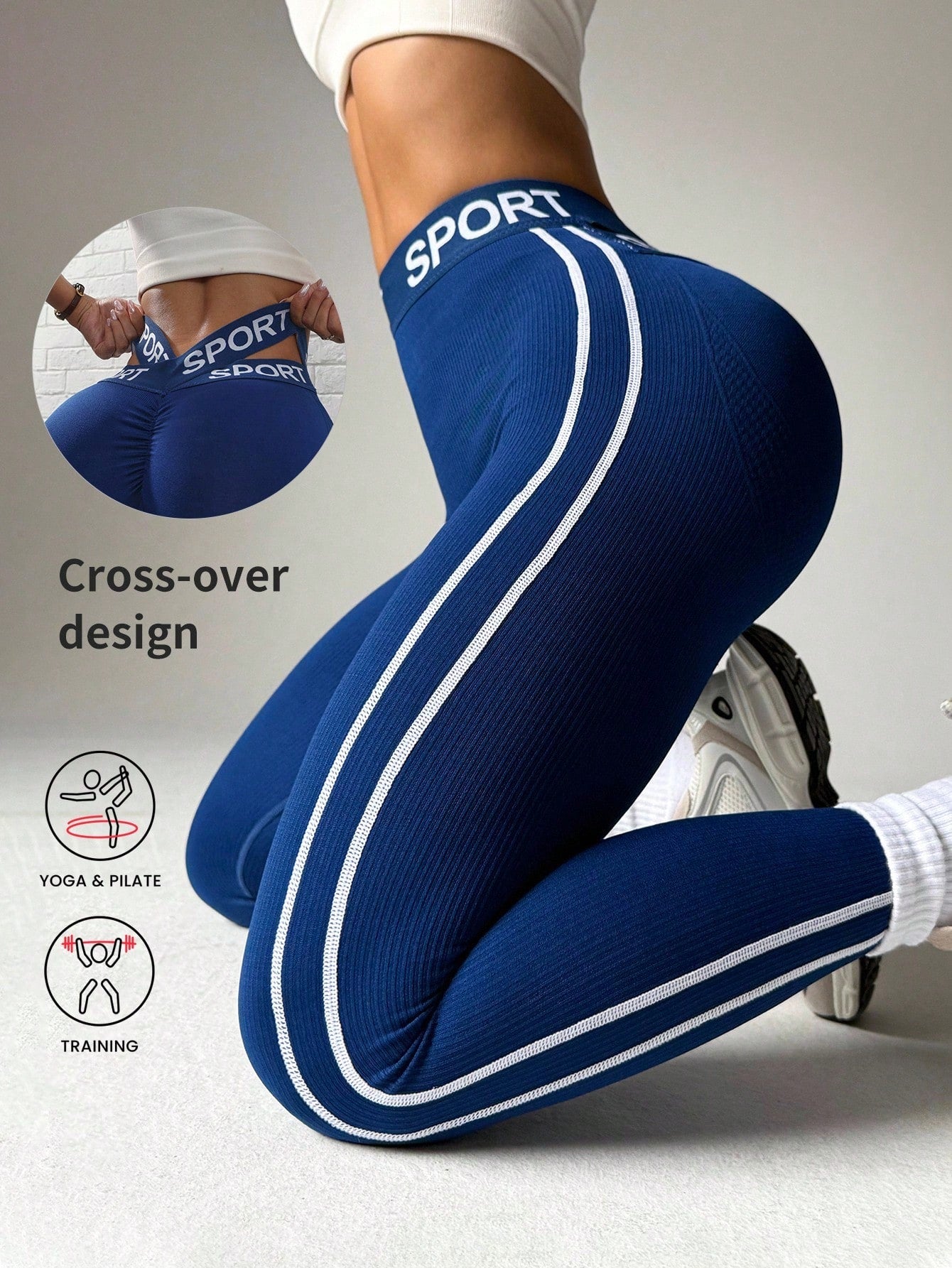 Seamluxe Sport 1pc Women's Elastic Cross Back Waist Seamless Side Stripe Running, Fitness, Yoga Base