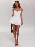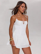SHEIN BAE Women Elegant Sexy Floral Lace Panel Detachable Straps Casual Dress, Suitable For Summer Outfits,