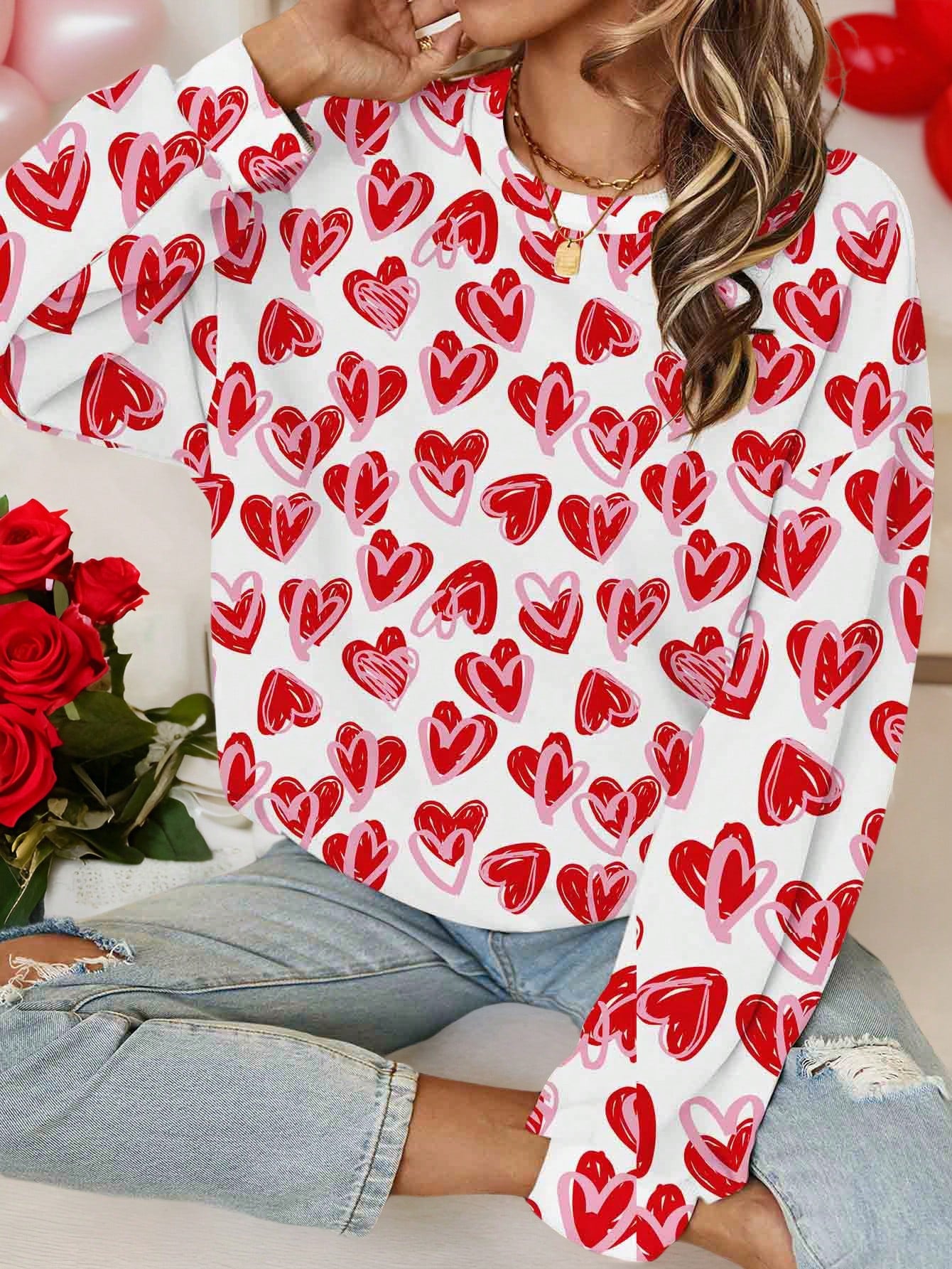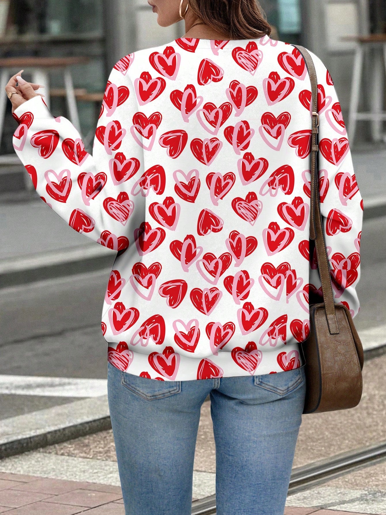 SHEIN LUNE Women's Heart Design Fleece Round Neck Casual Sports Sweatshirt, Suitable For Autumn/Winter,Valentines