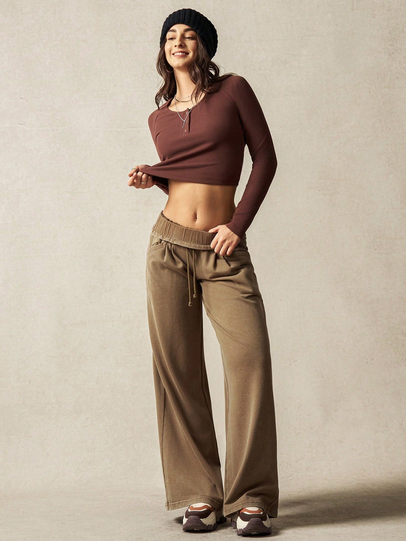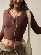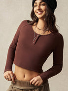 VARSITIE Round Neck, Long Sleeves, Hollow Buttons At Back, Slim Fit Women Sports Tees & Tanks