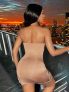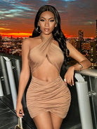 VaVaBold Summer Sexy Solid Color Pleated Hollow Out Cross Wrap Slim Fit Mini Halter Dress