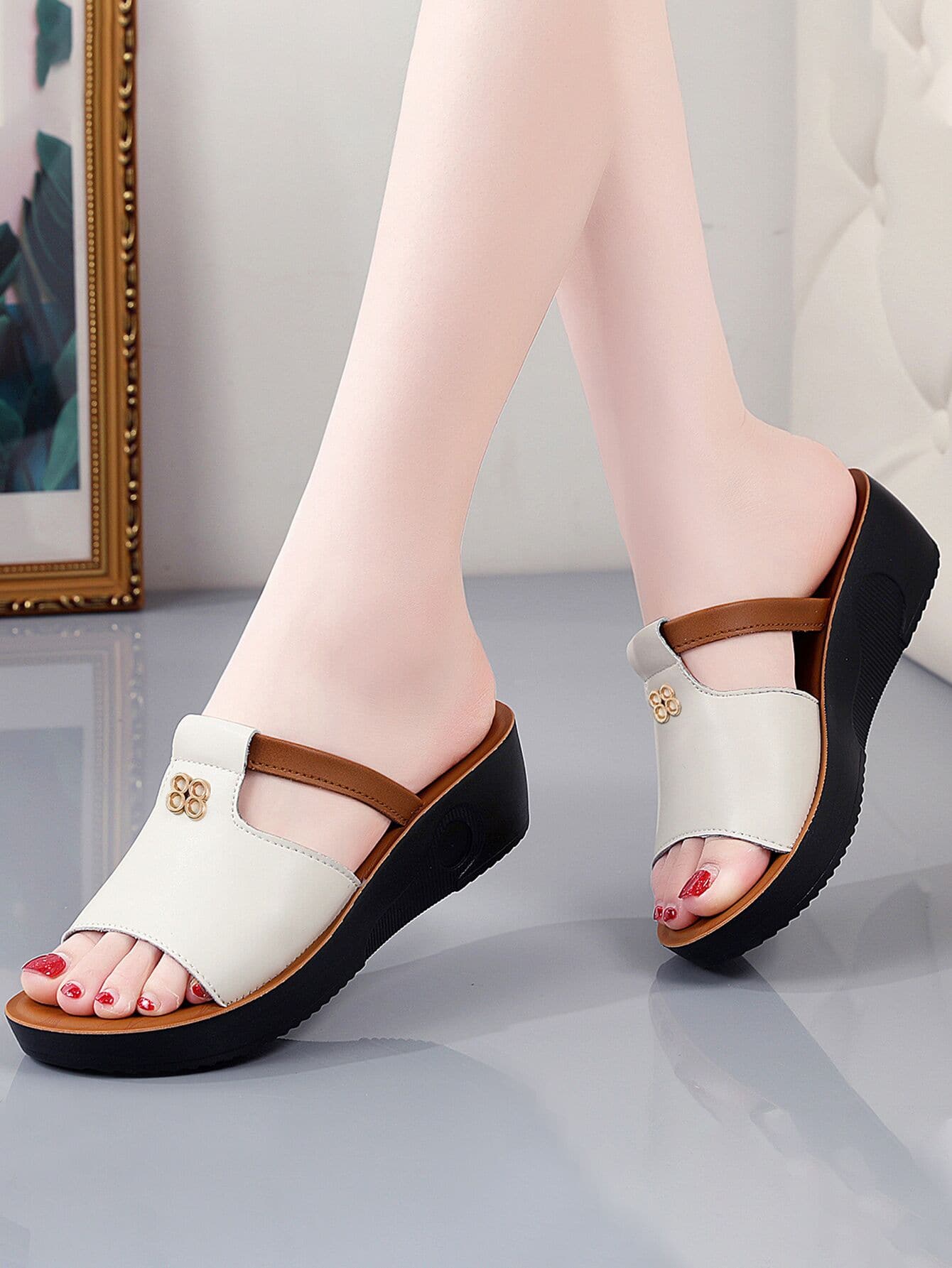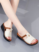 women Women's Beige Fashion Solid Color Wedge Sandals