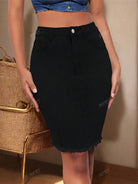 Women's Casual Plain Color Fringe Slim Denim Mini Skirt, Summer