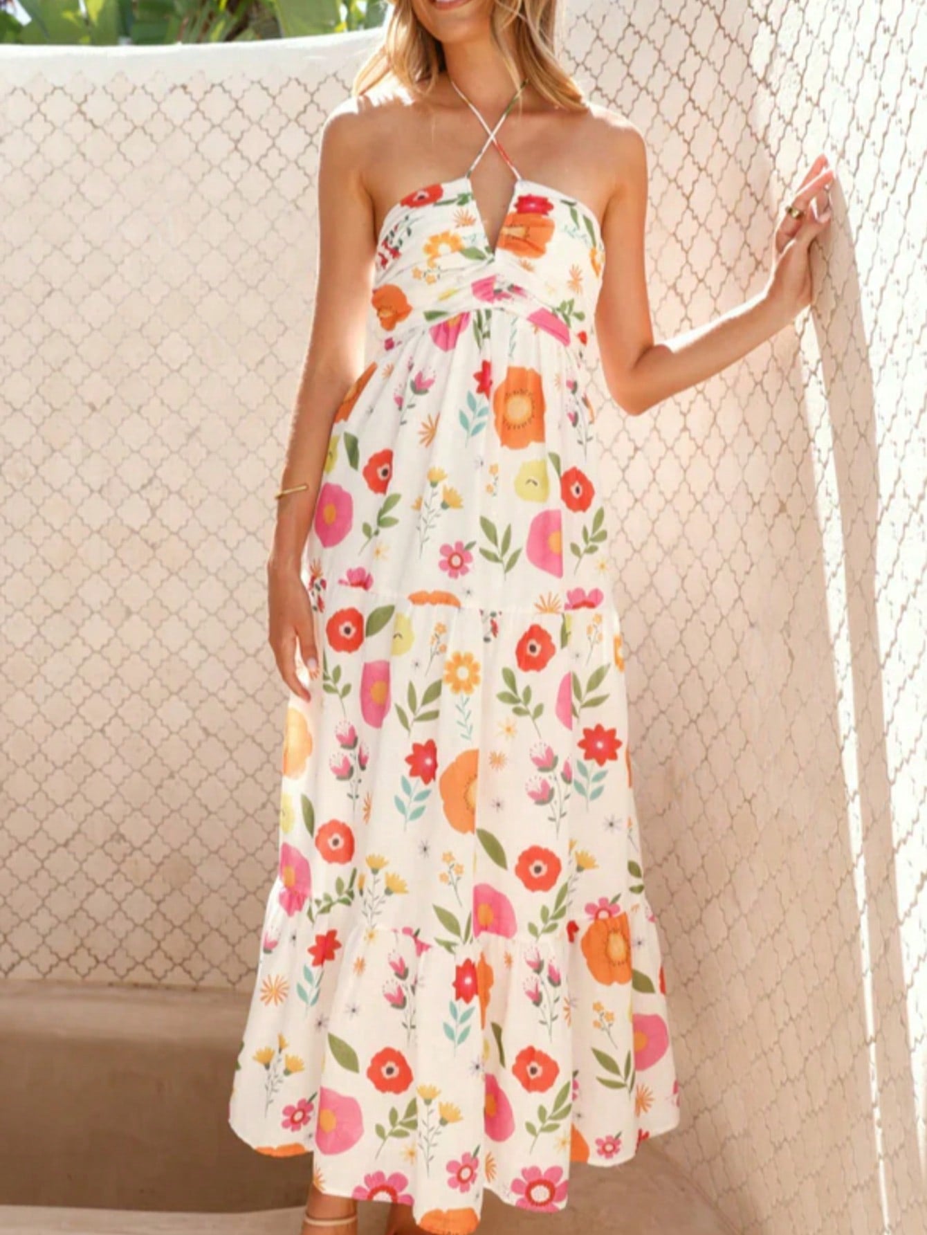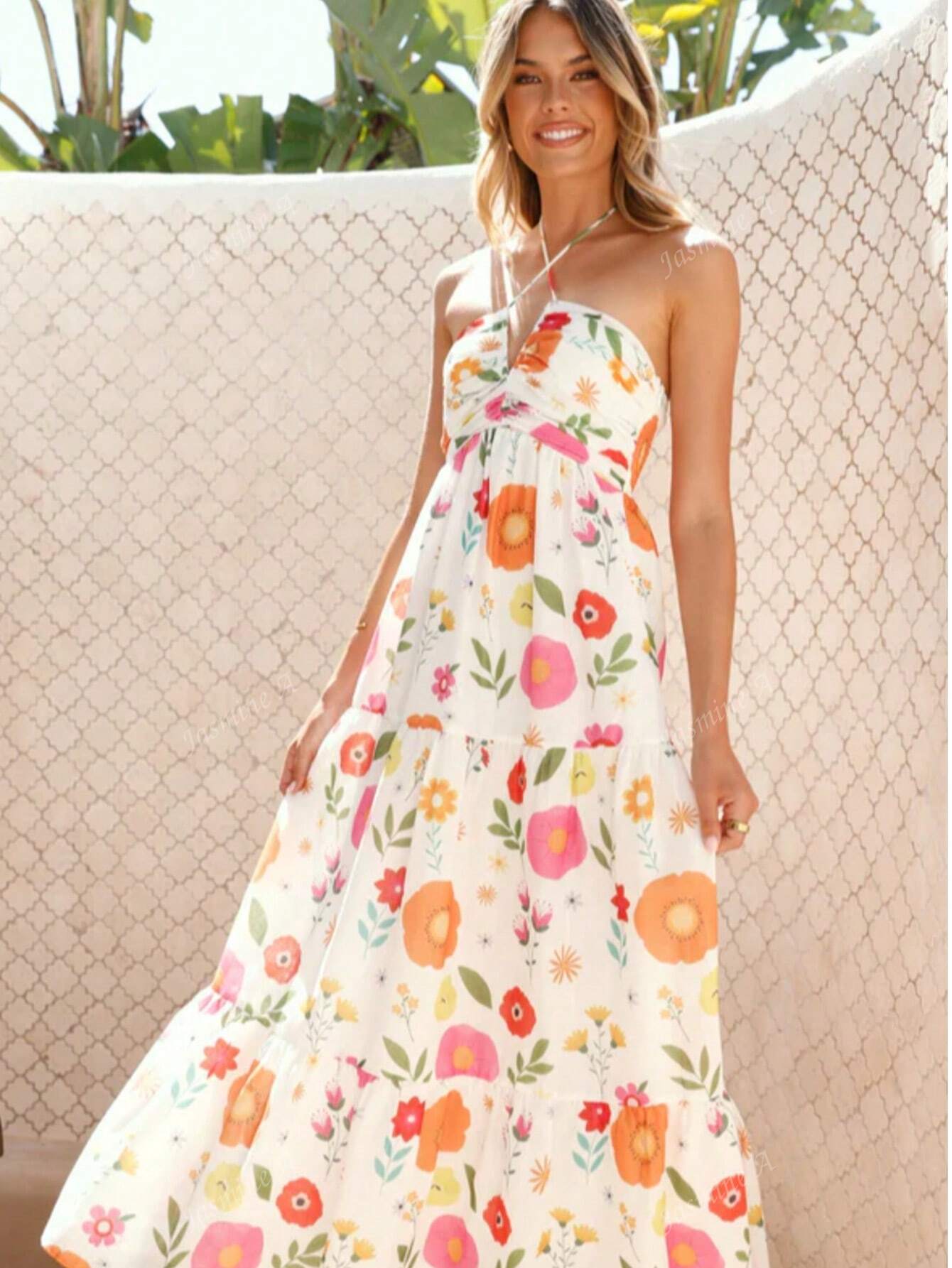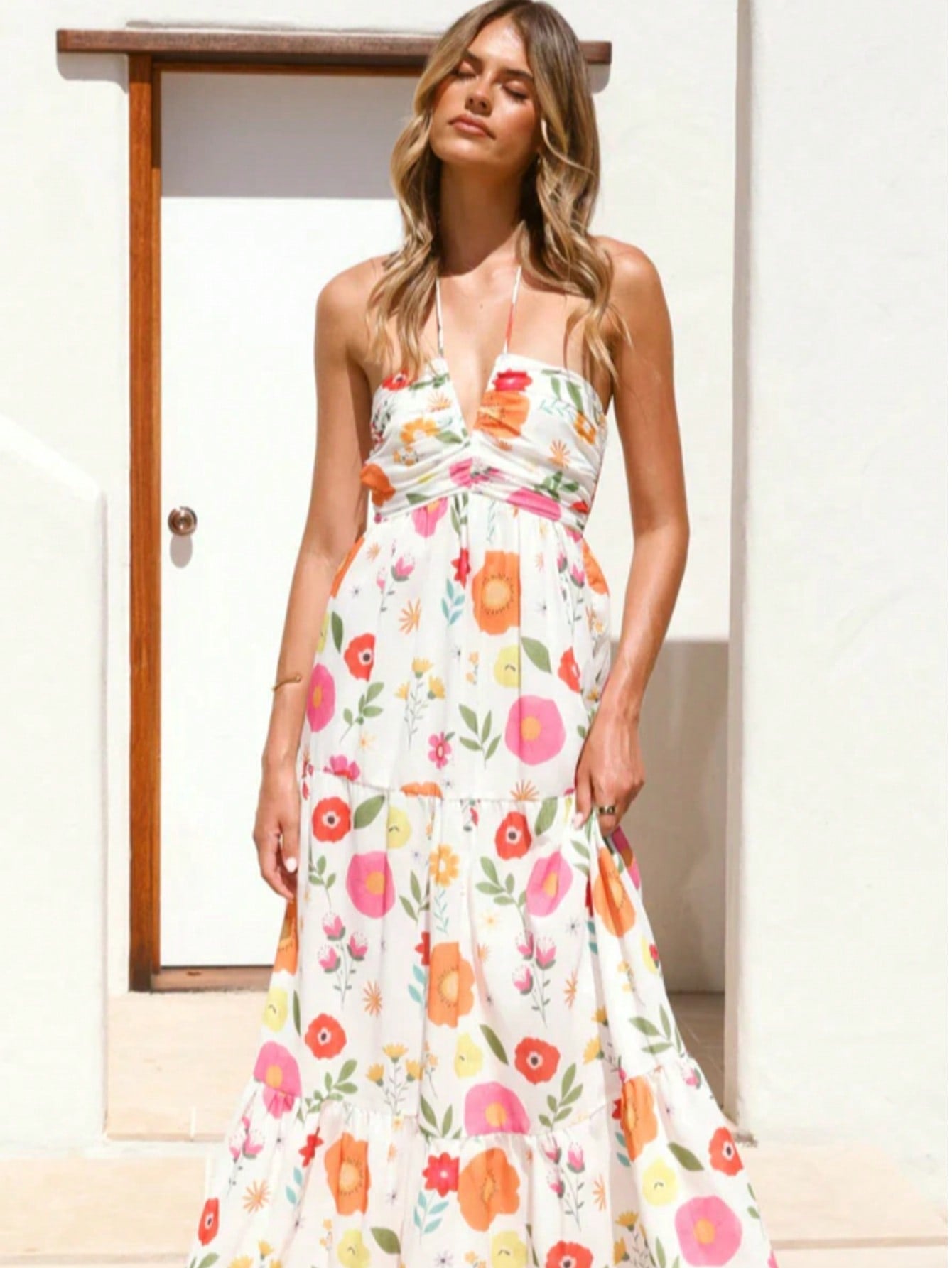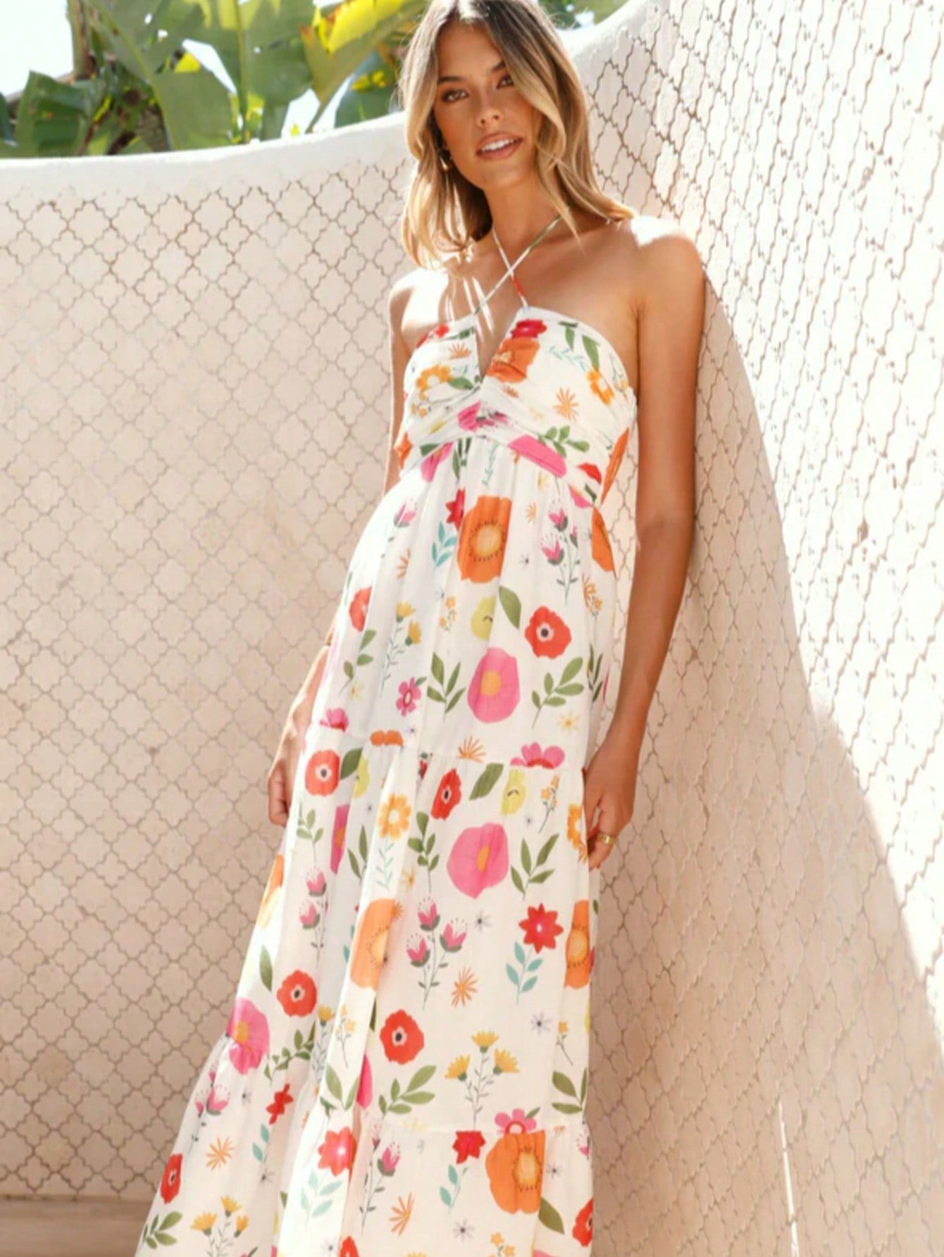 Women's Casual Vacation Waist-Cinched Slimming Ditsy Floral Strap Mini Dress, Flattering Fit