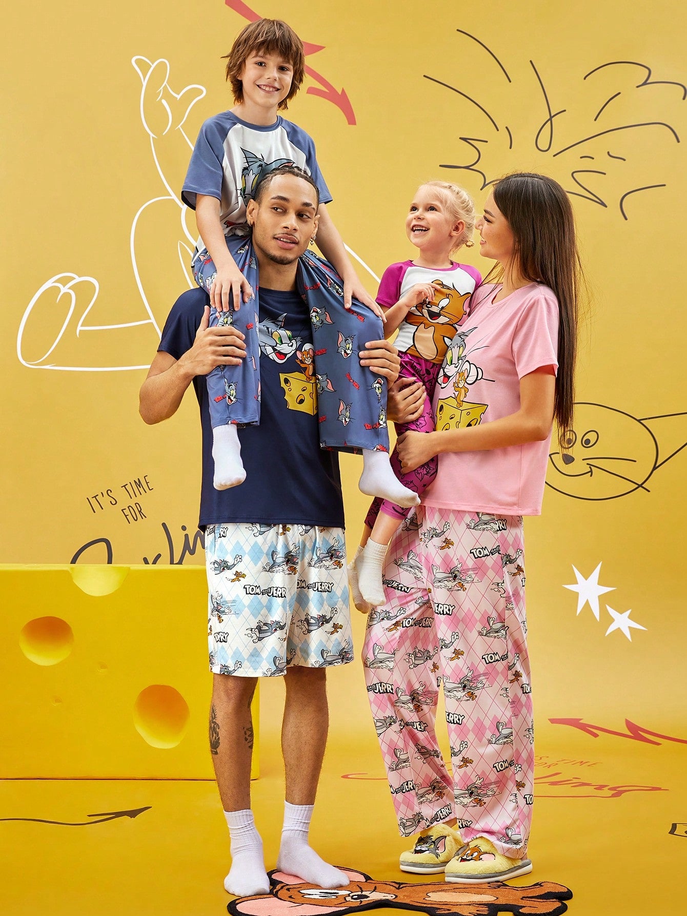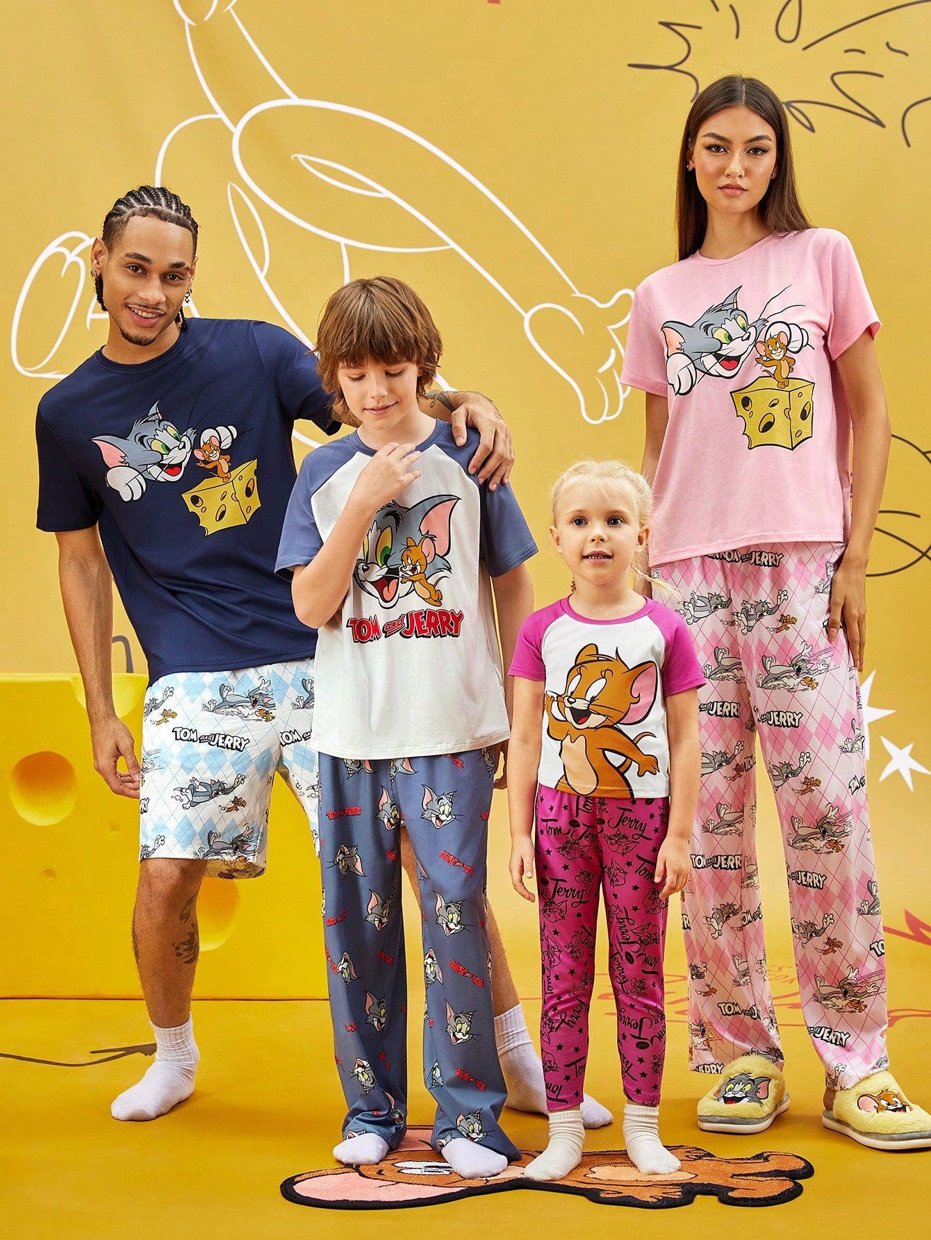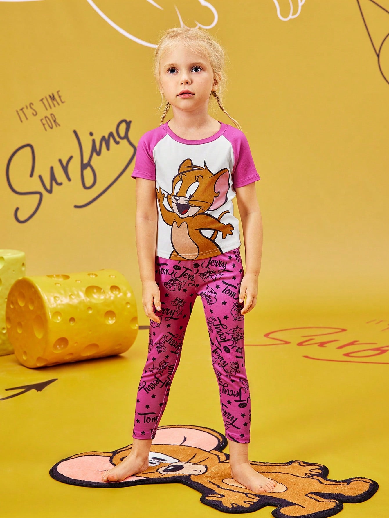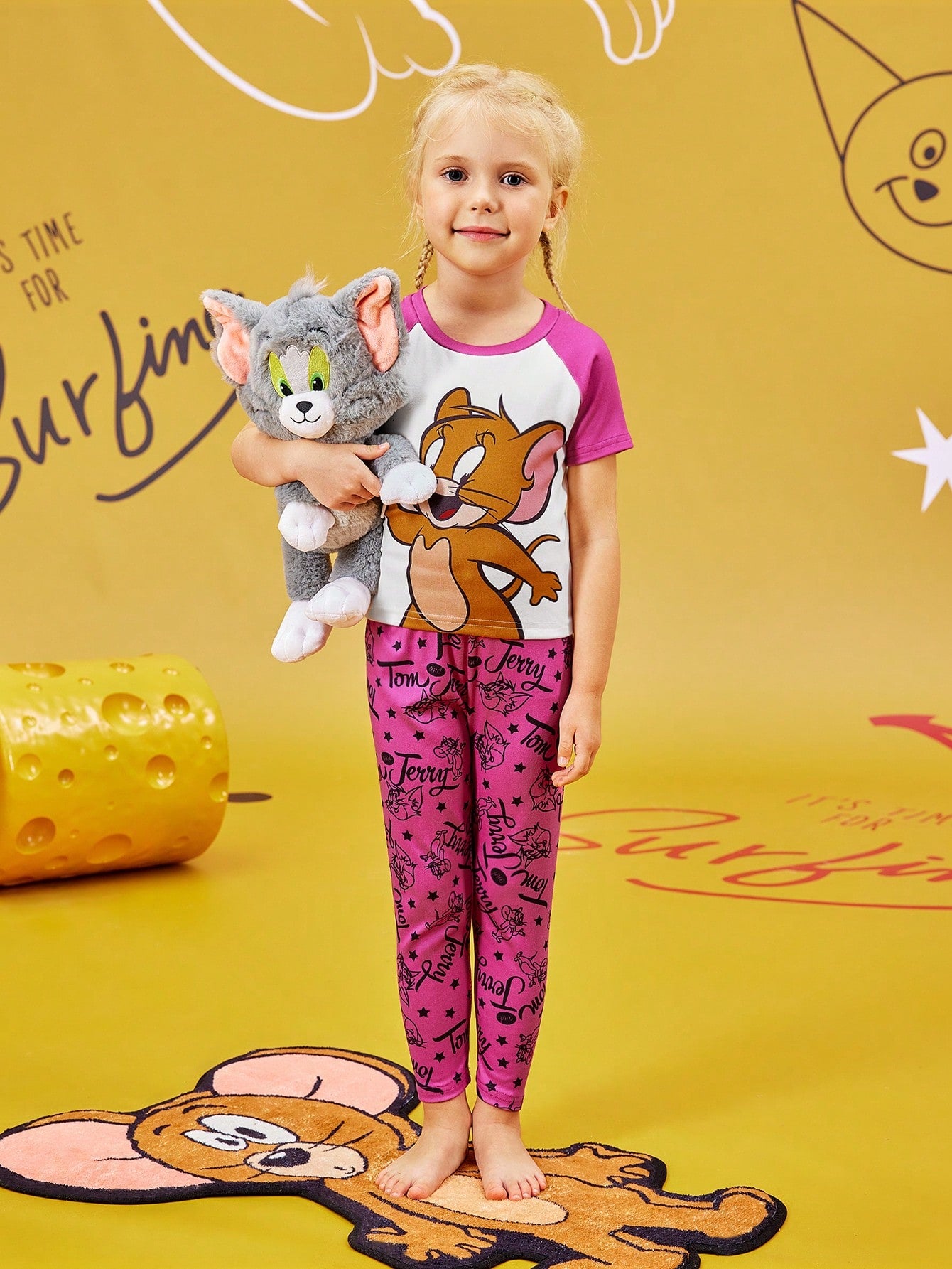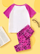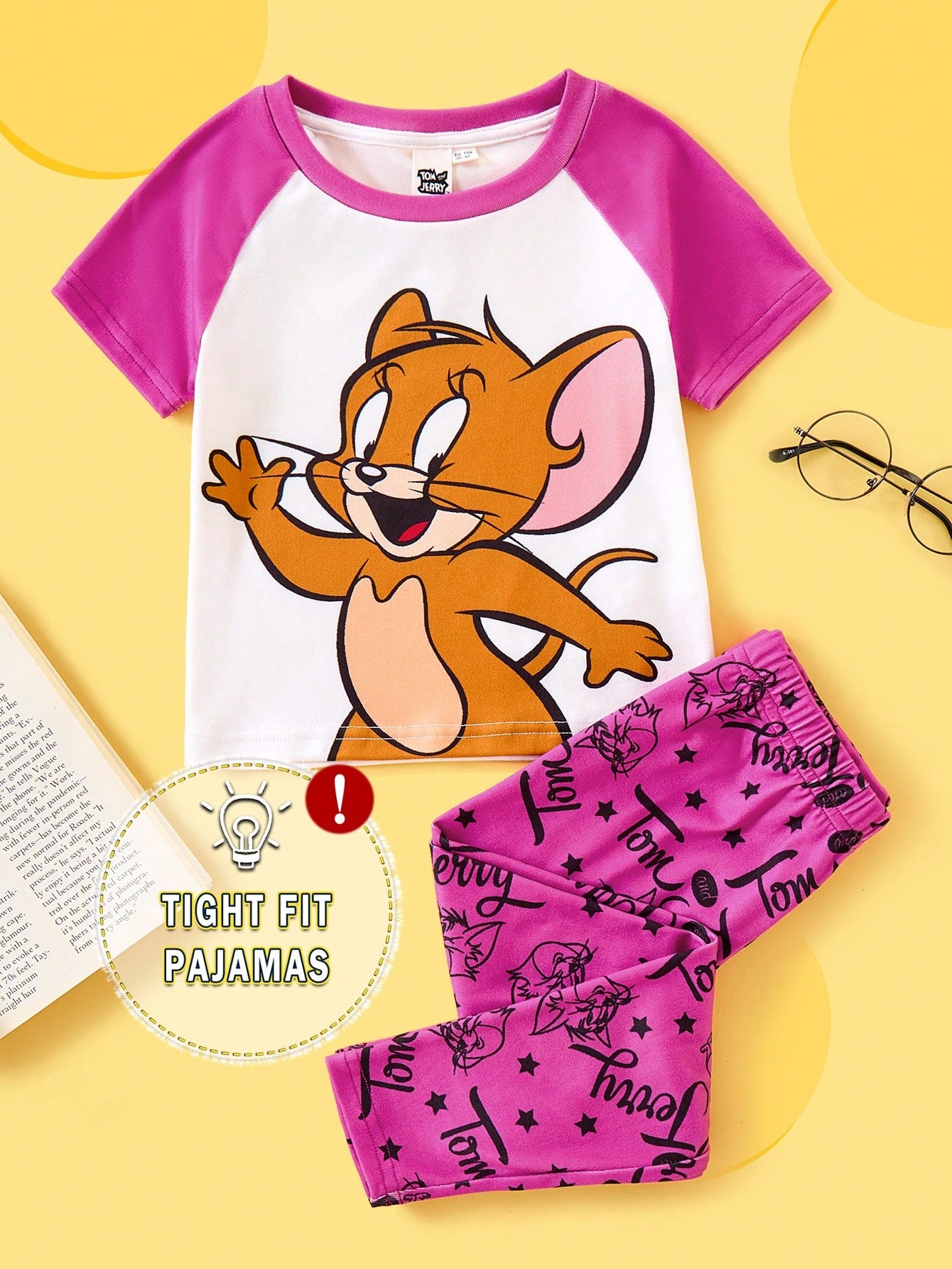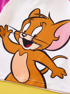 TOM & JERRY X Young Girl Cartoon Print Contrast Color Raglan Sleeve T-Shirt And Comfortable Stretch Pants