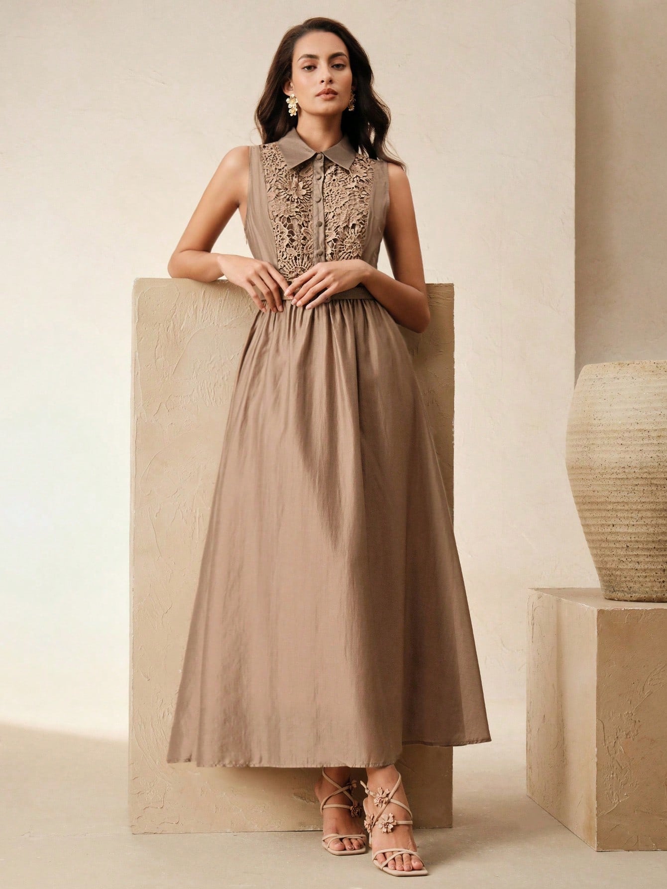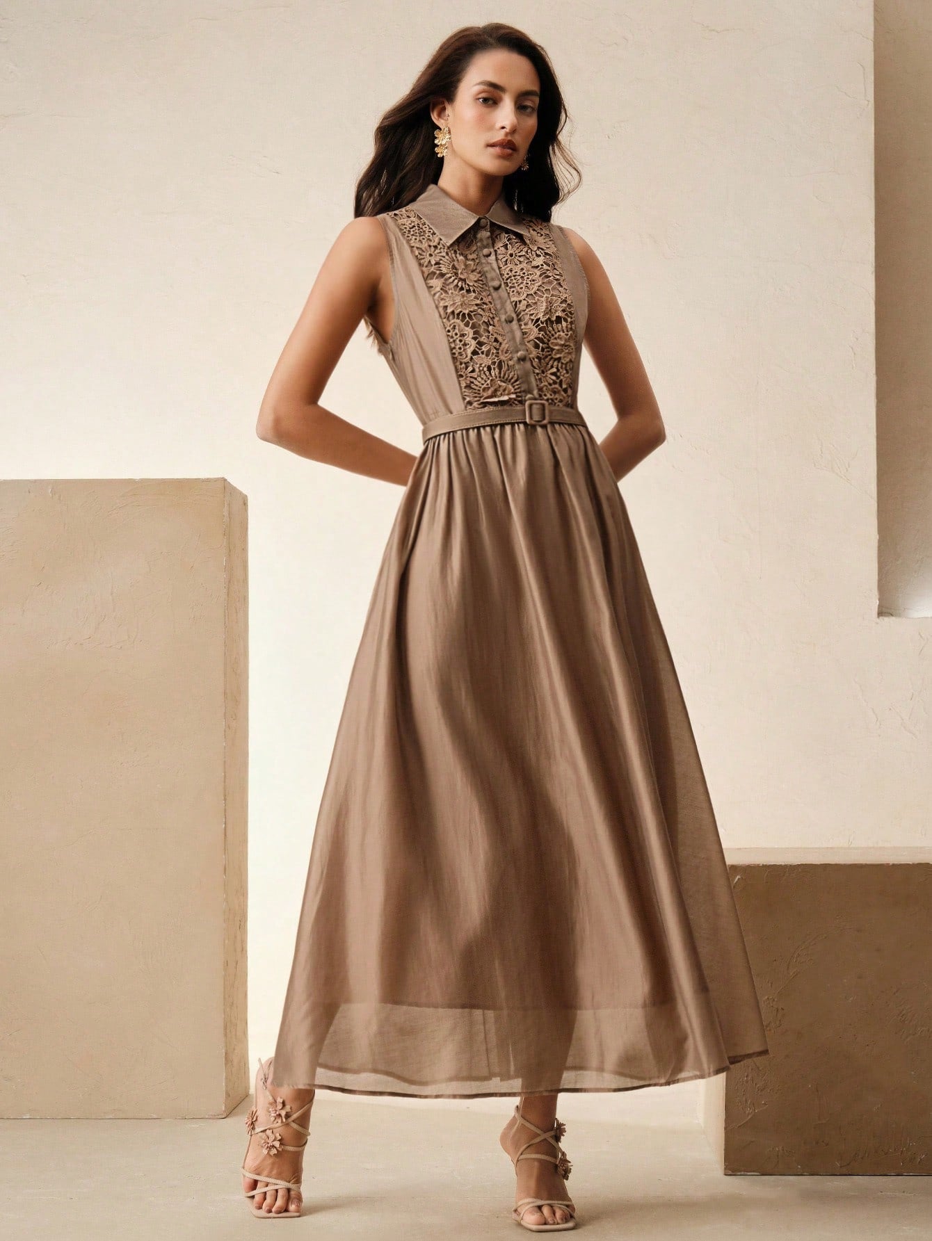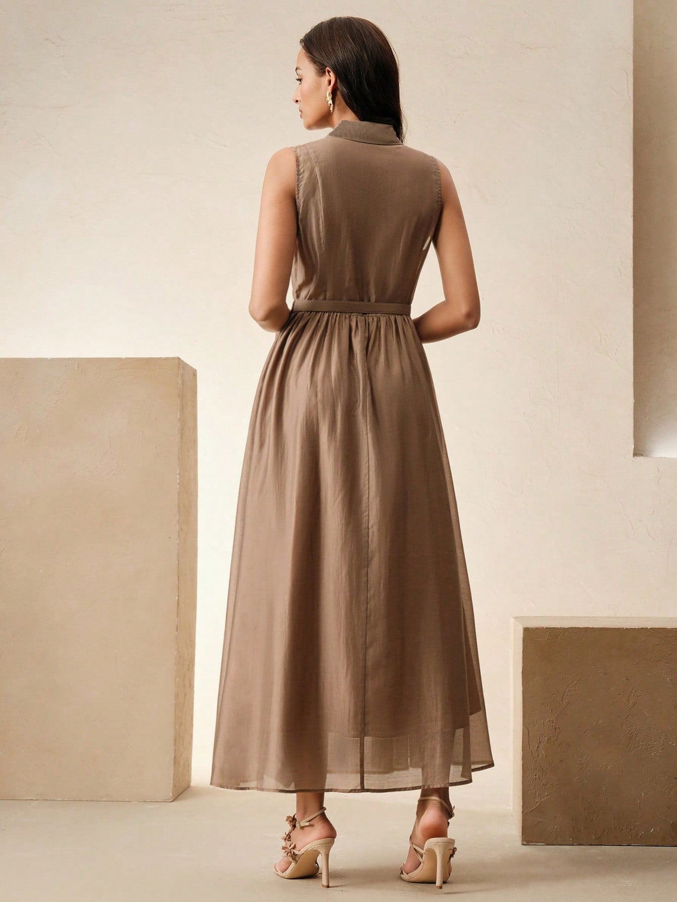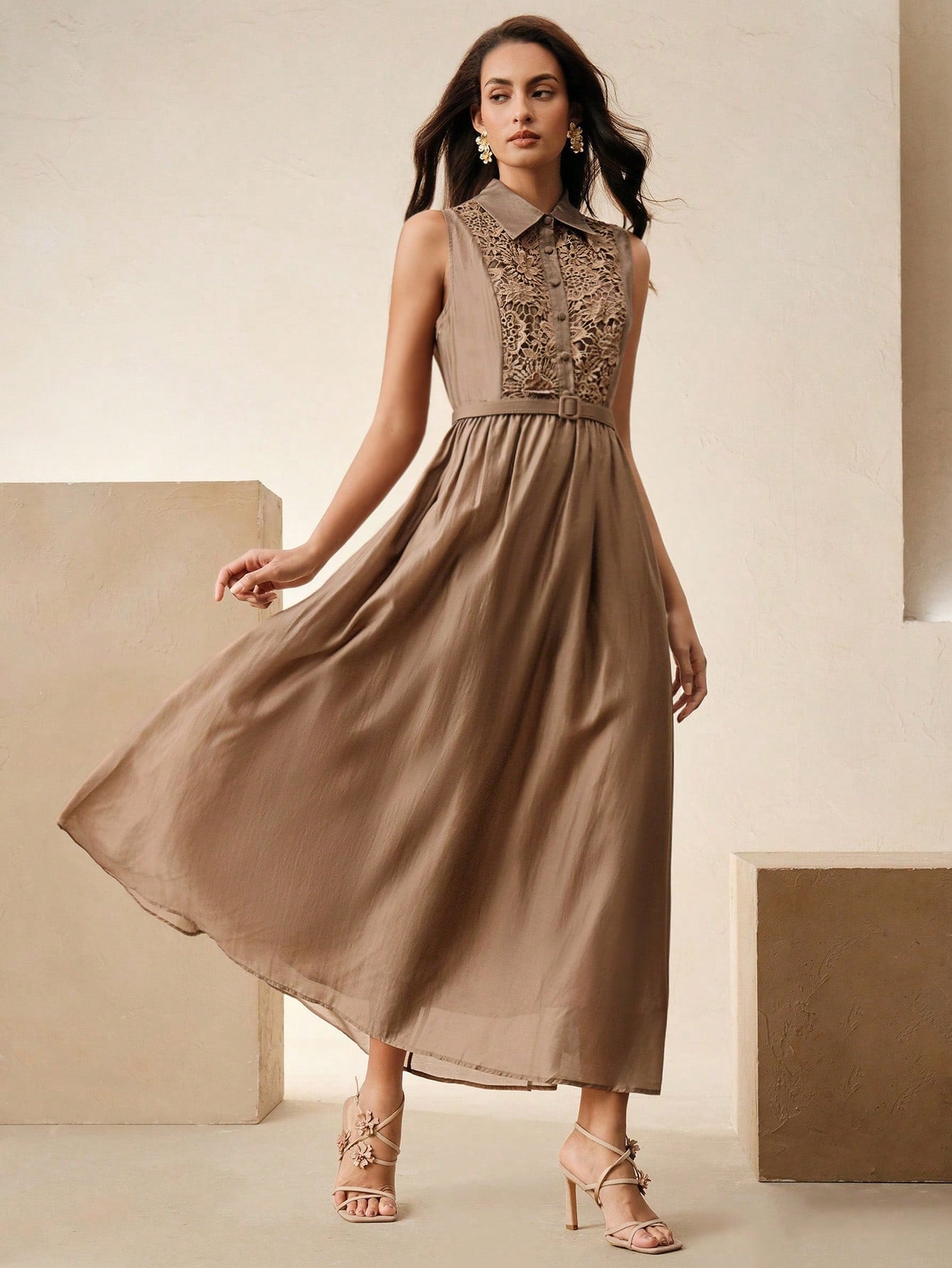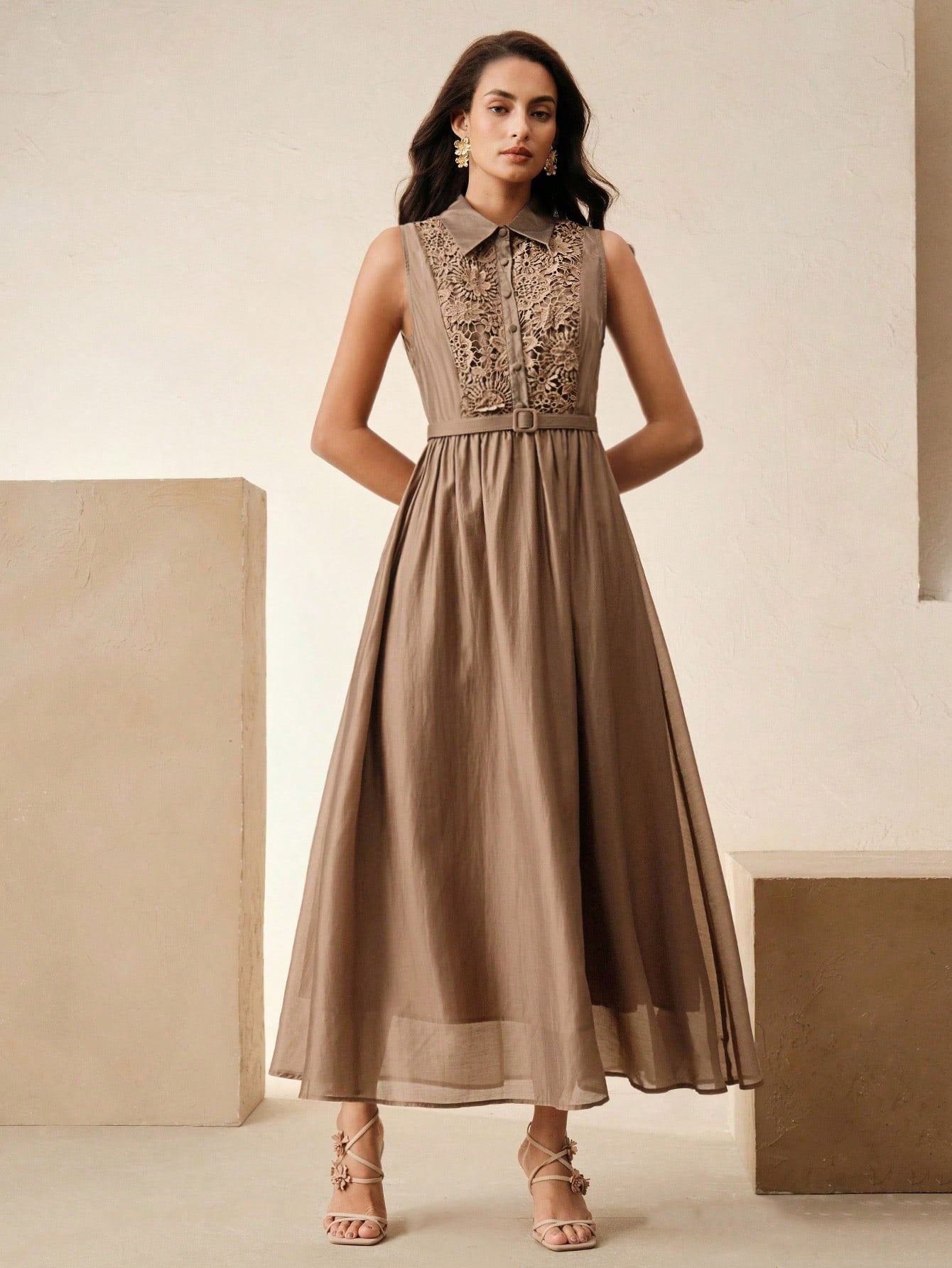Anewsta Spring & Summer Elegant Vintage Inspired Cinched Waist Lapel Dress