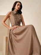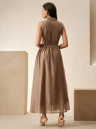 women Anewsta Spring & Summer Elegant Vintage Inspired Cinched Waist Lapel Dress