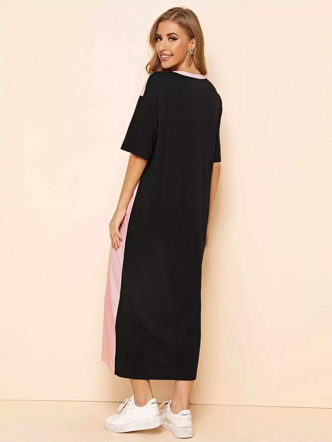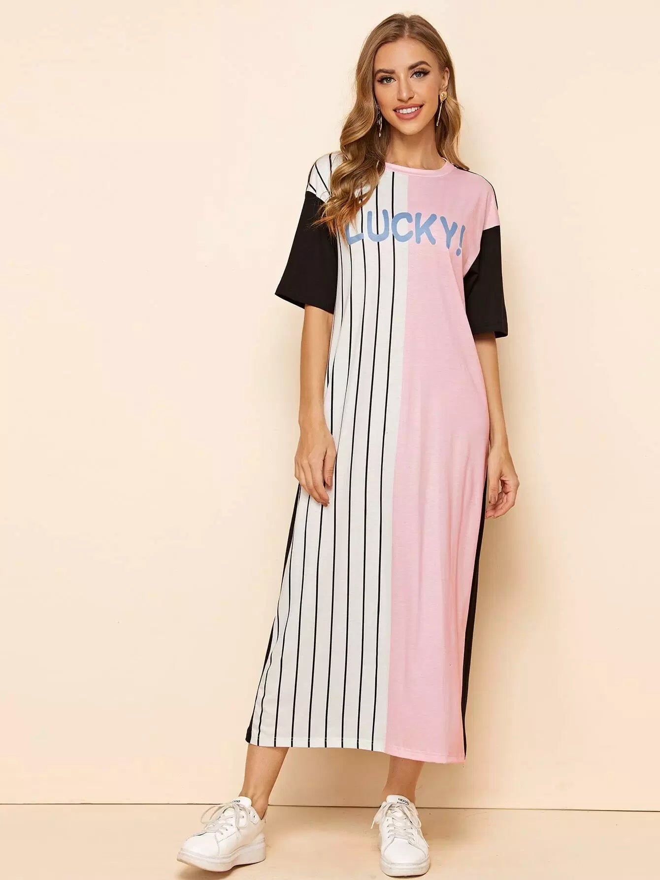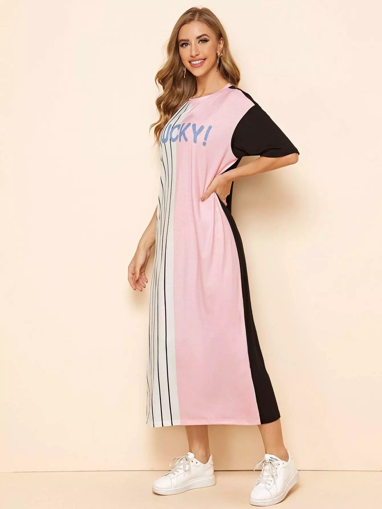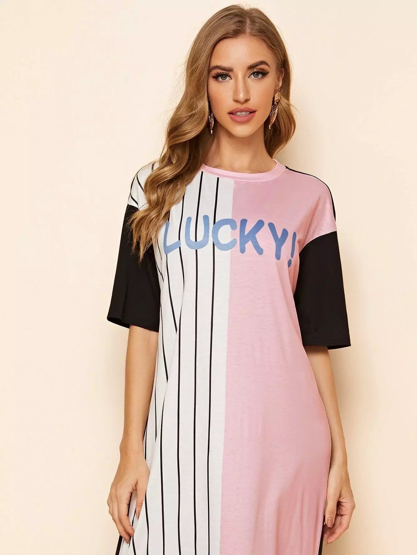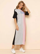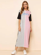 Letter Graphic Striped Color Block Tee Dress