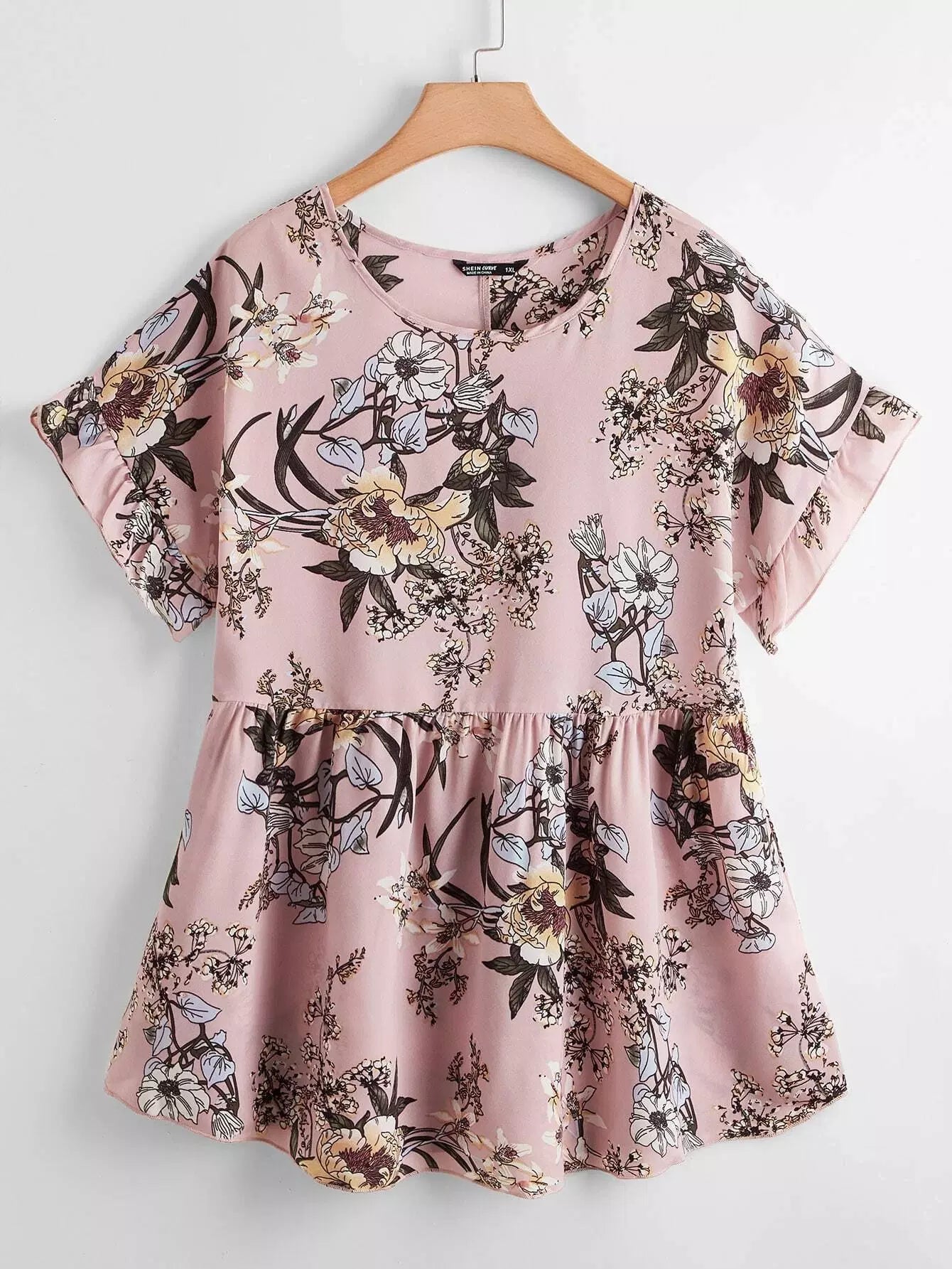 Plus Floral Print Peplum Blouse