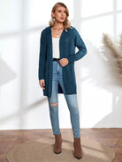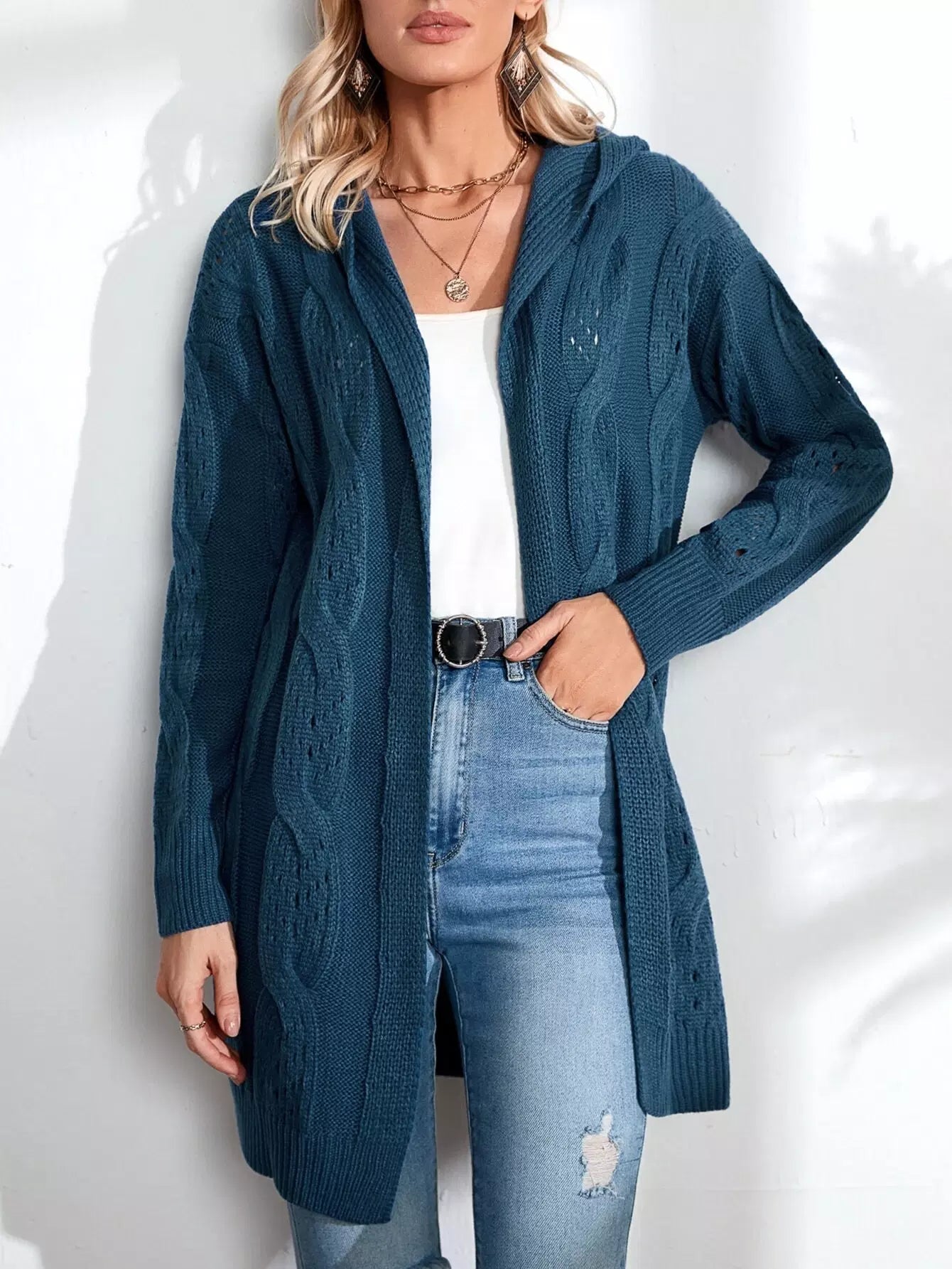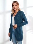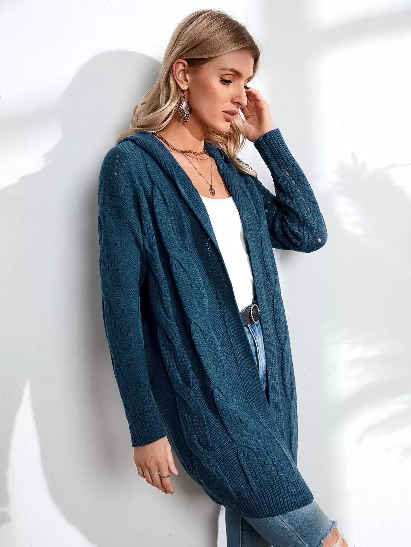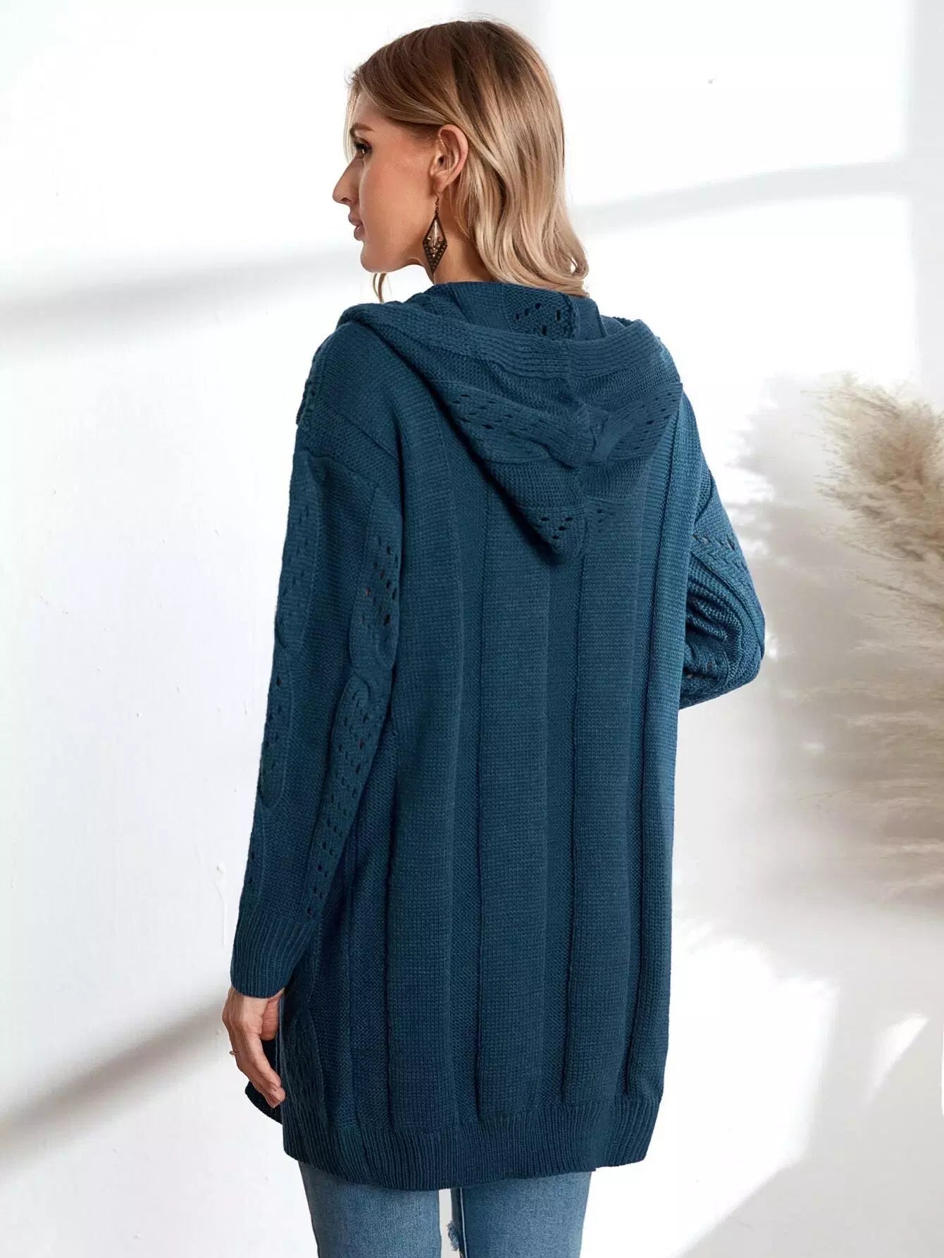 Cable Knit Drop Shoulder Hooded Open Front Cardigan