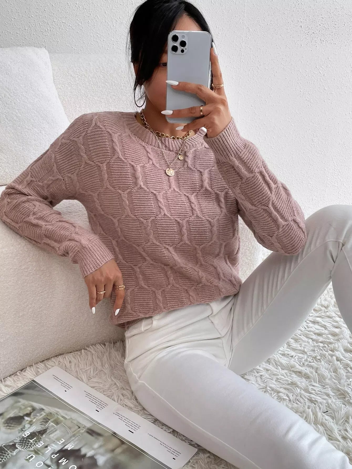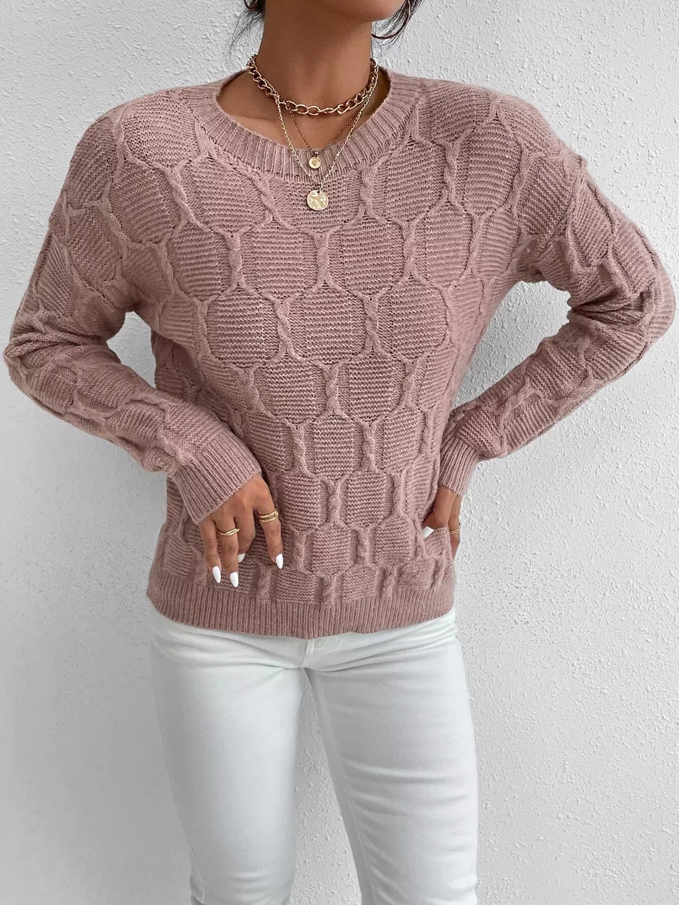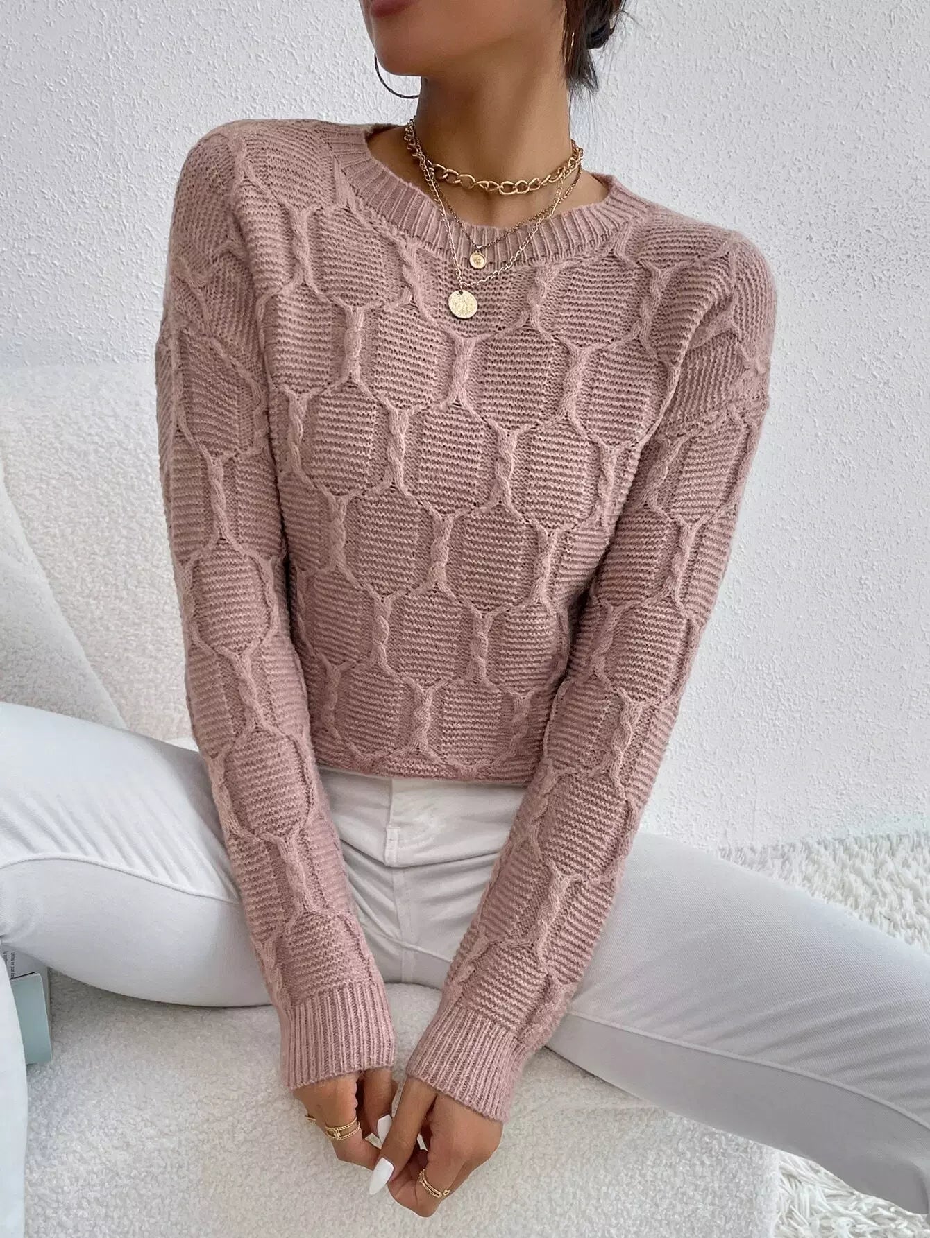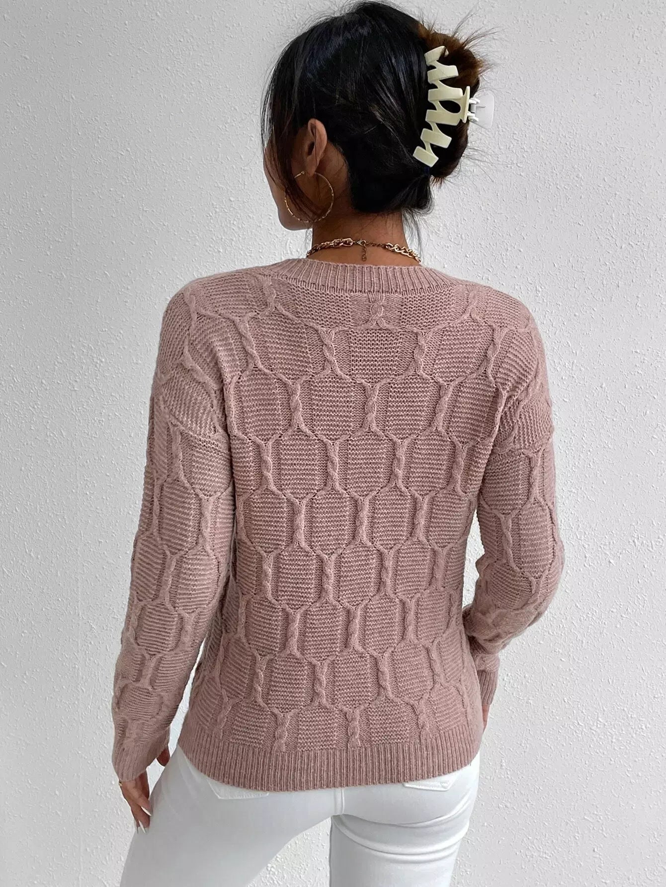 Cable Knit Drop Shoulder Sweater