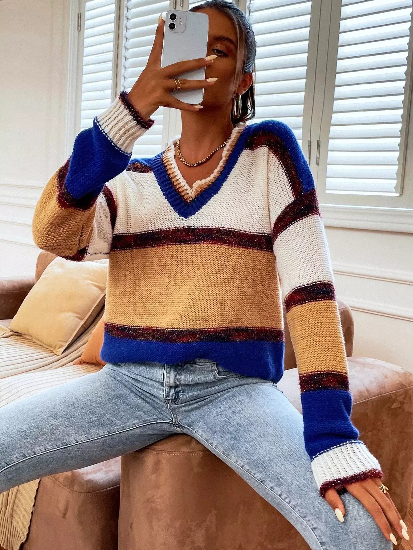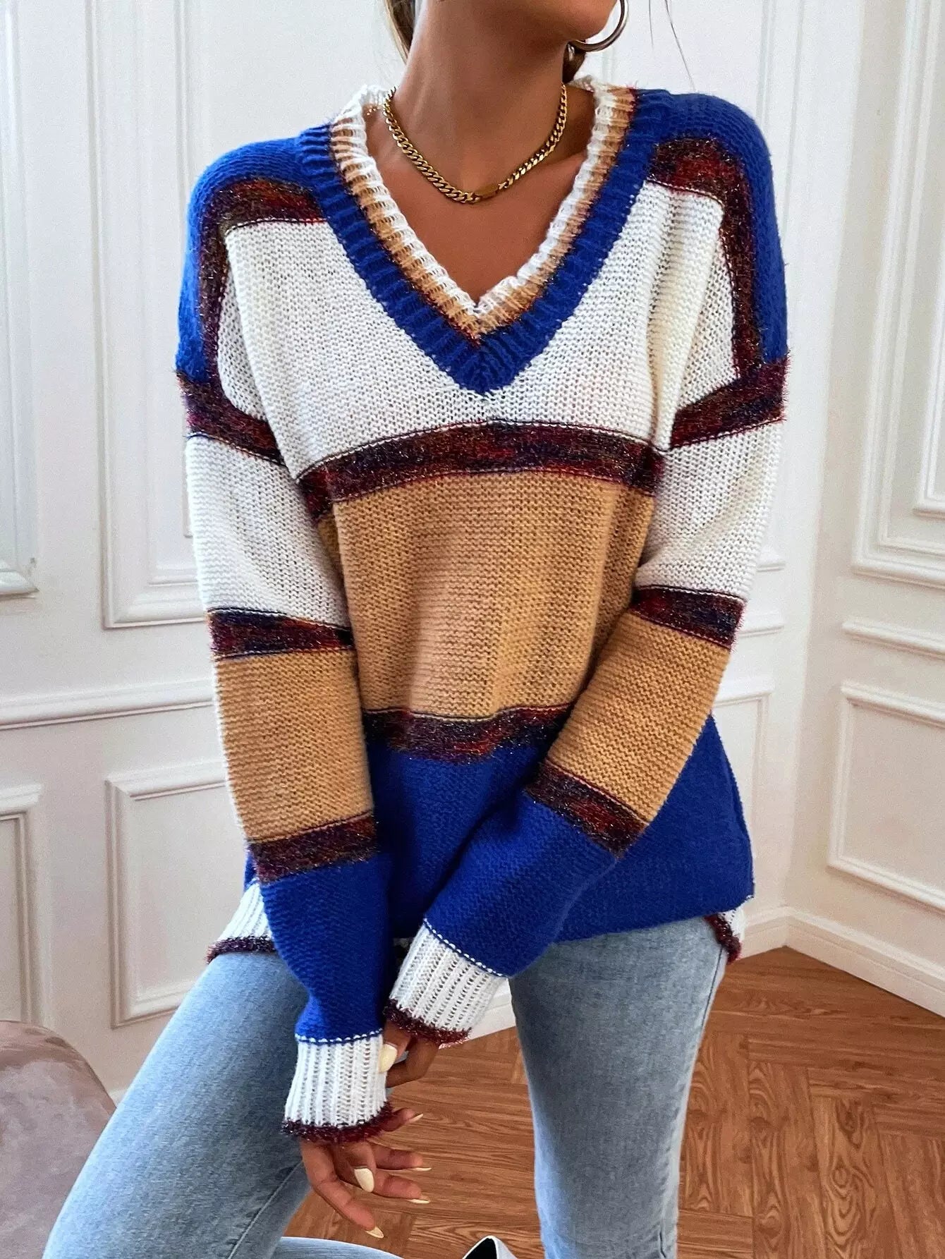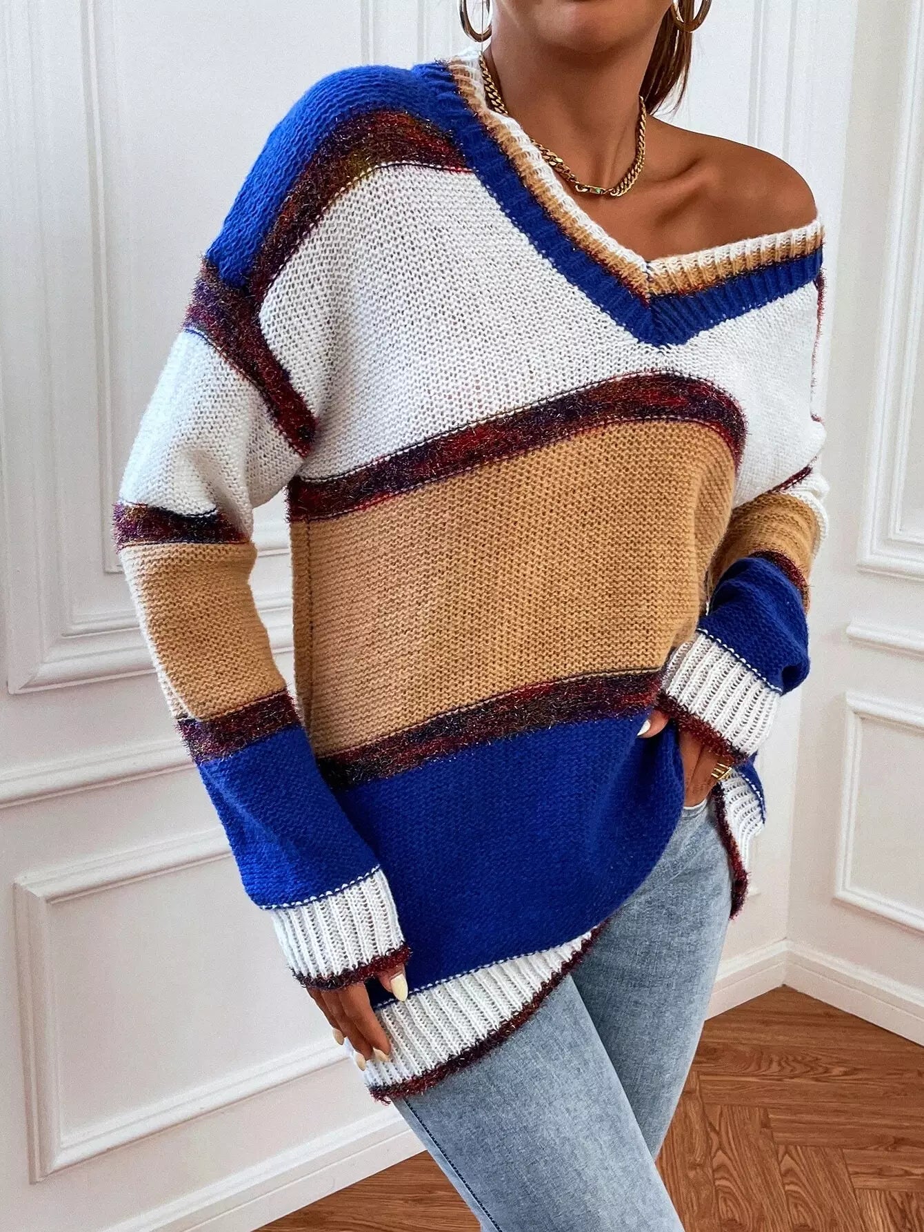 Color-block Drop Shoulder Sweater