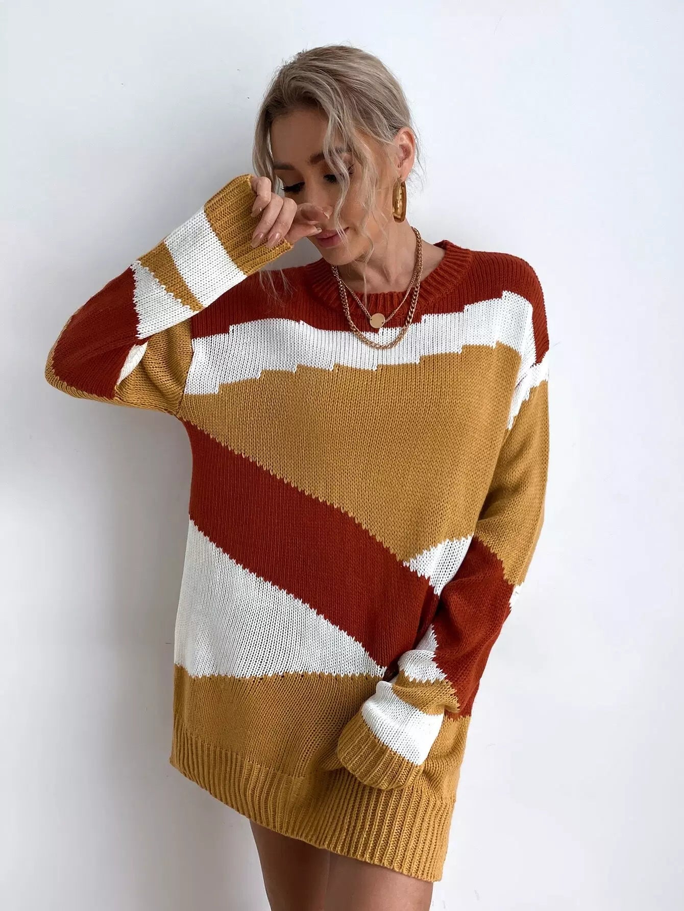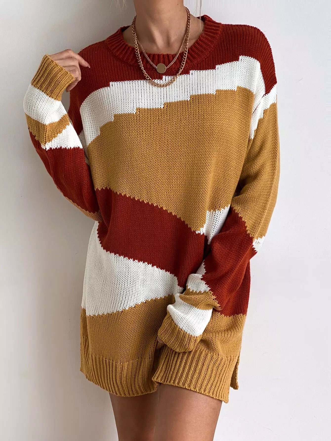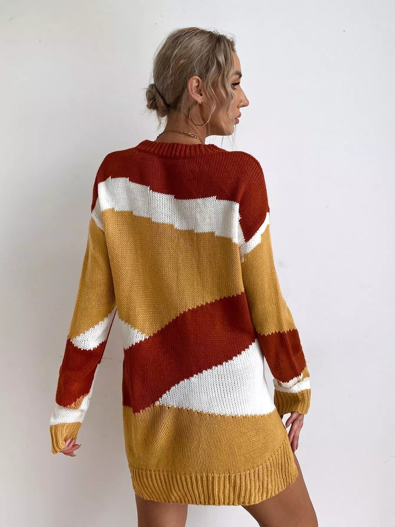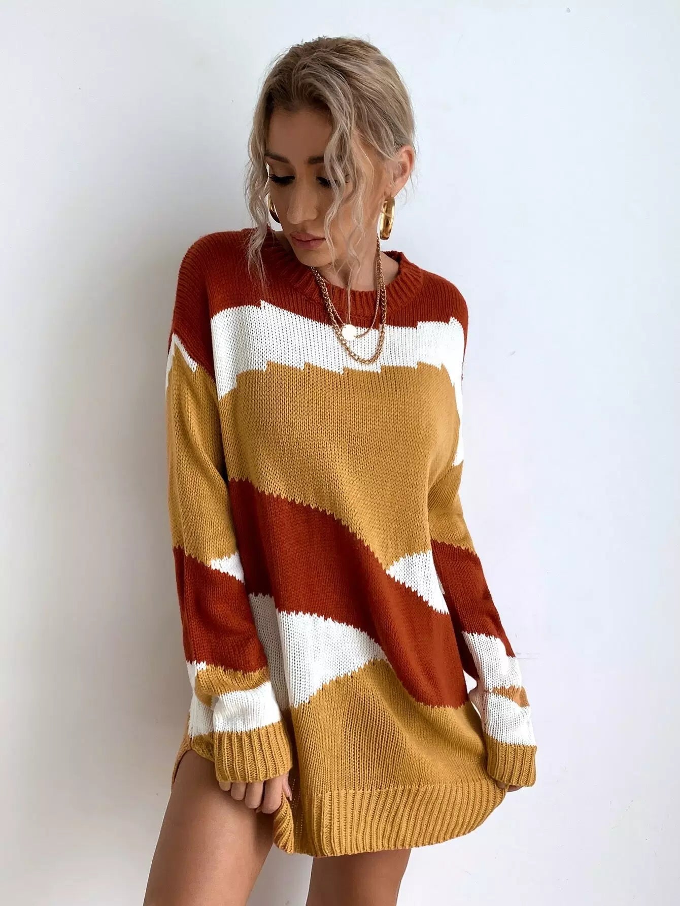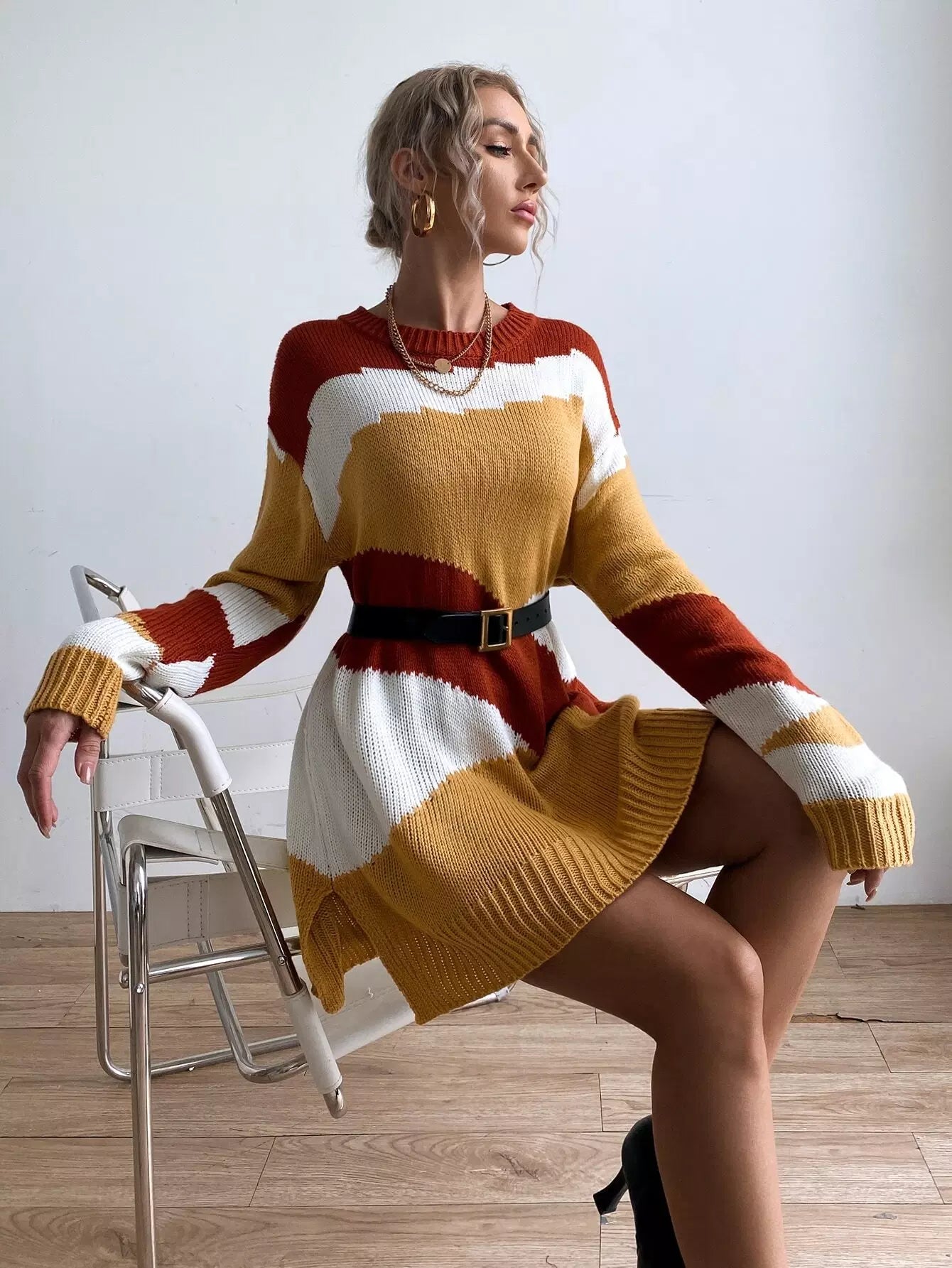 Color Block Drop Shoulder Sweater Dress Without Belt
