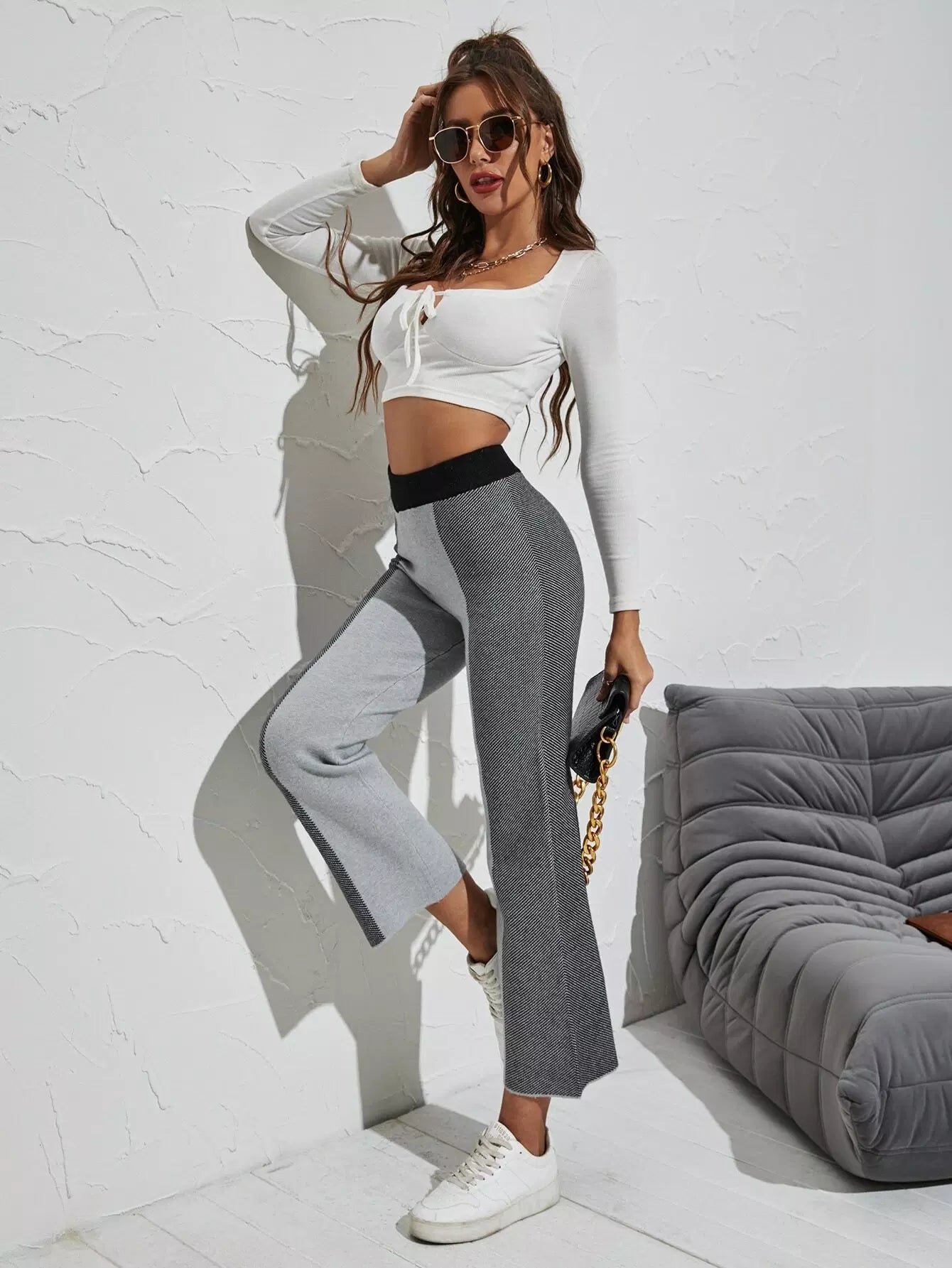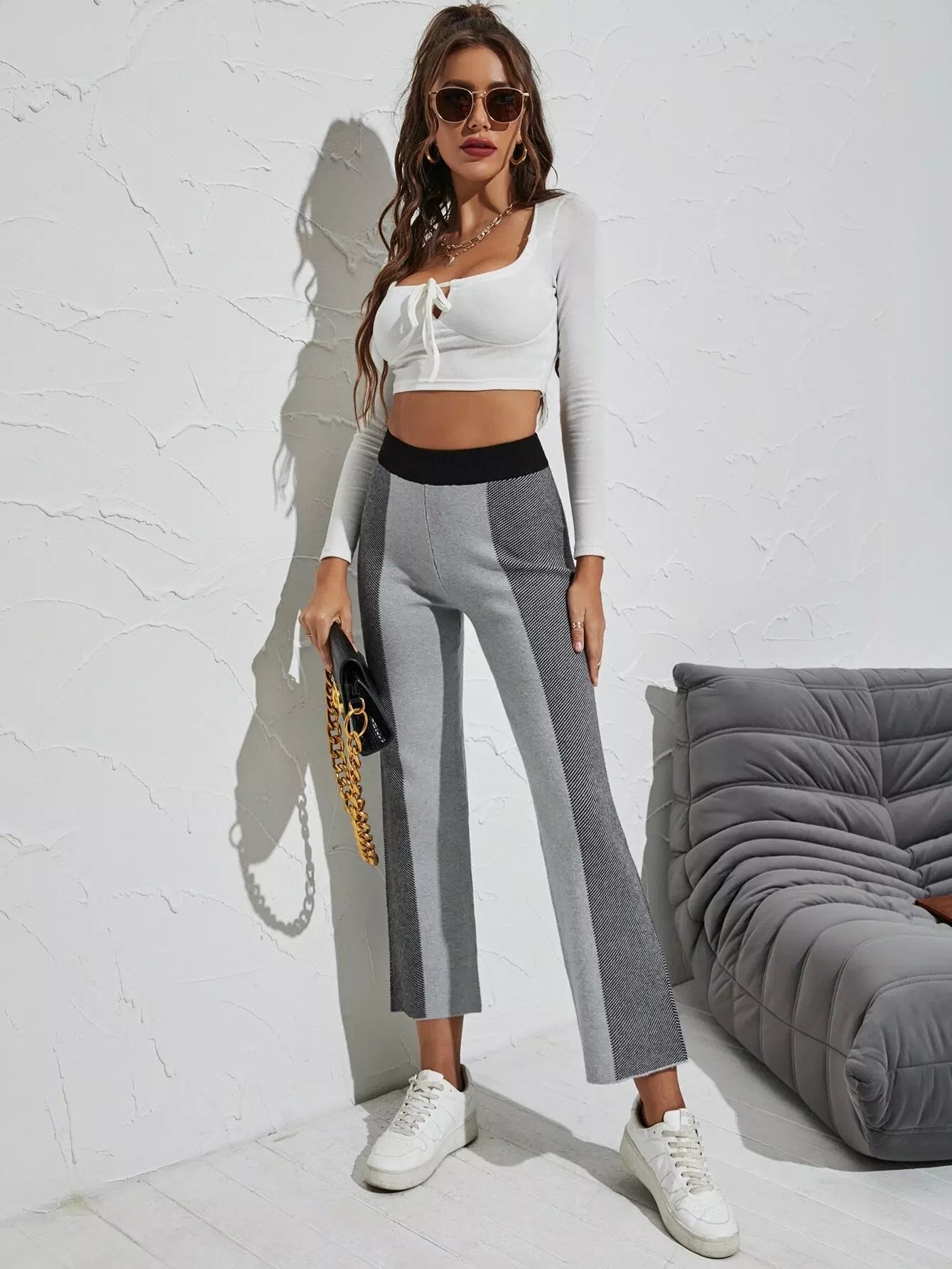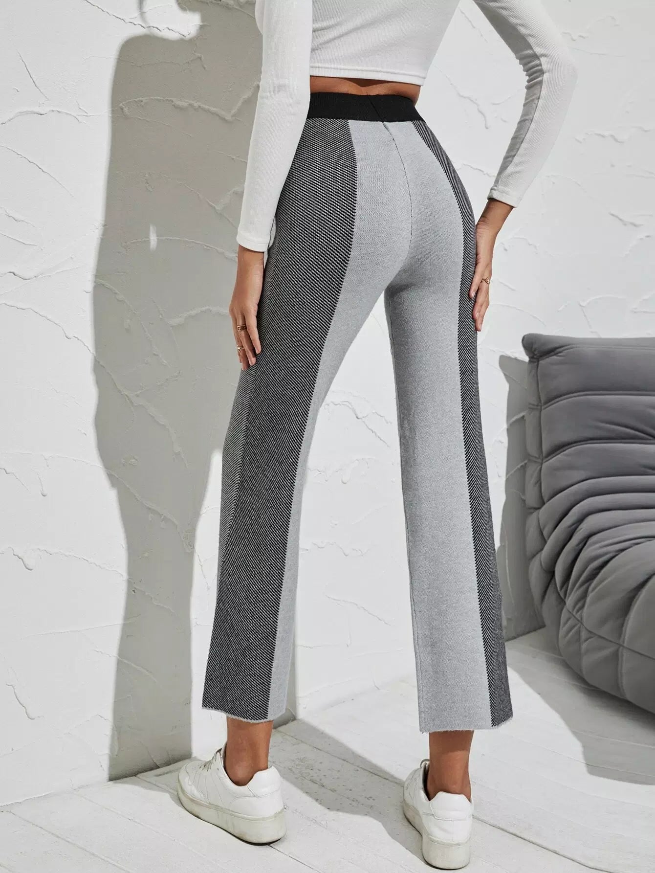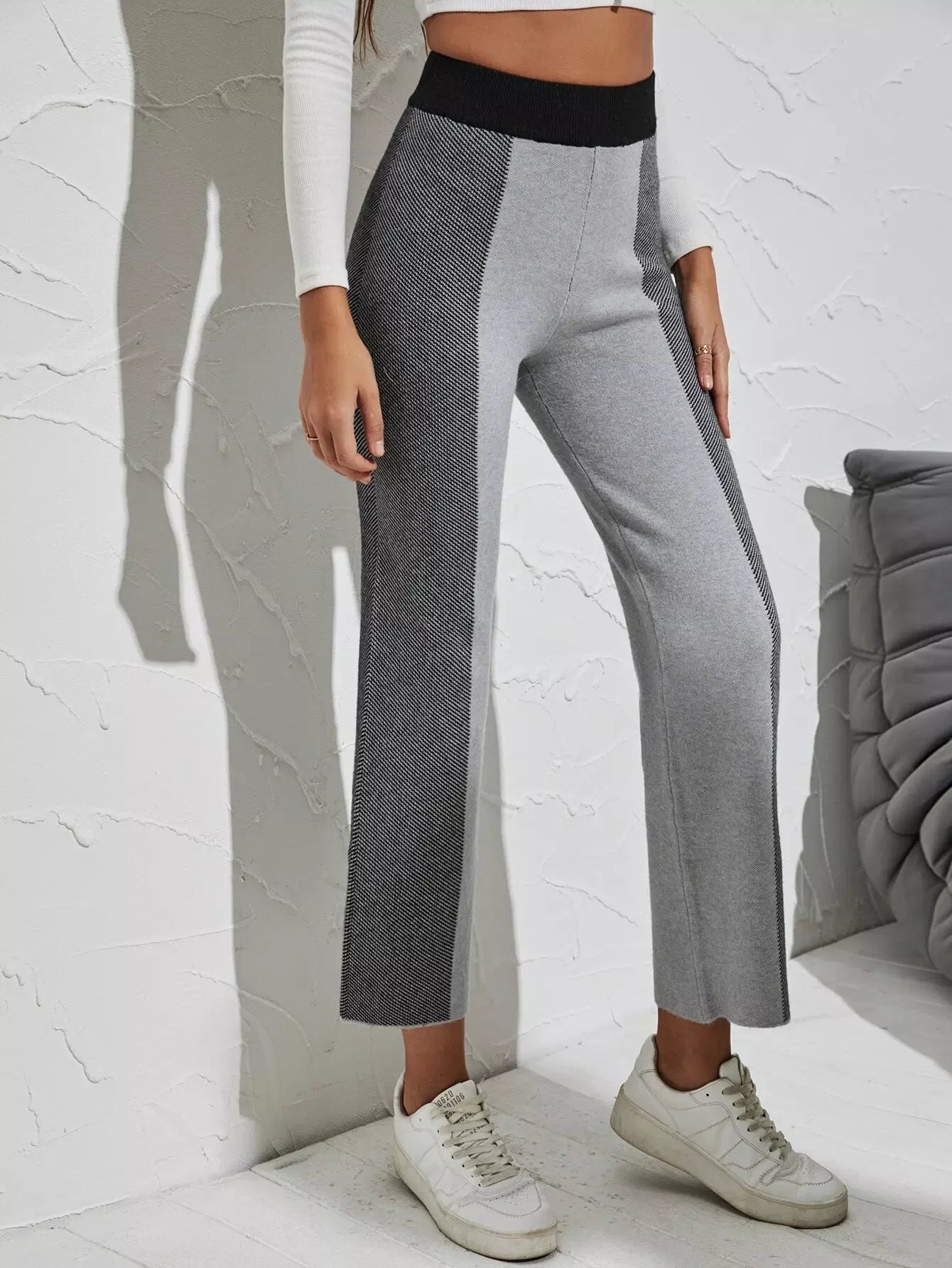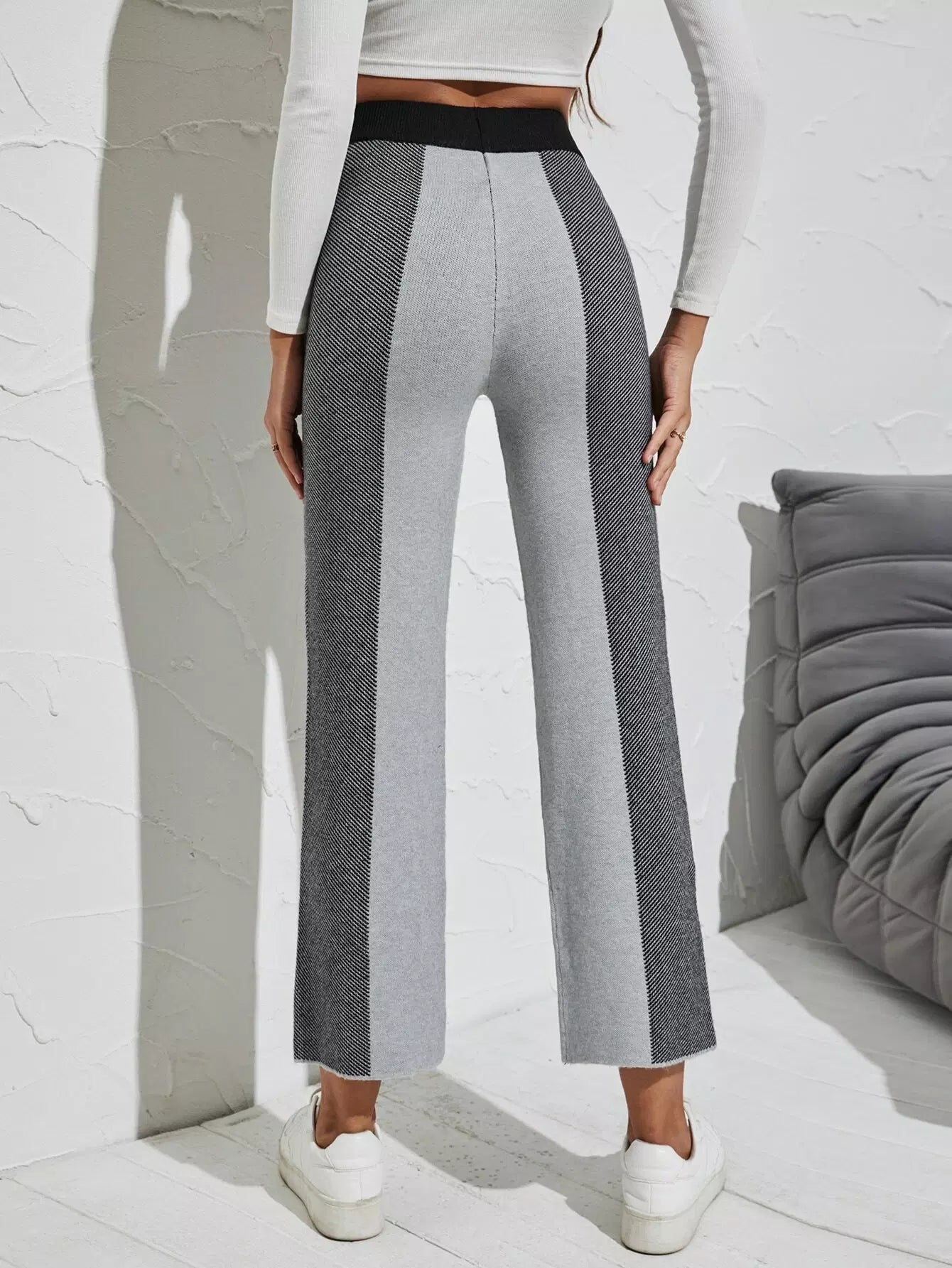 Color Block Elastic Waist Knit Pants
