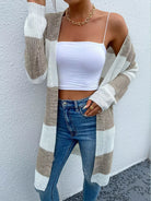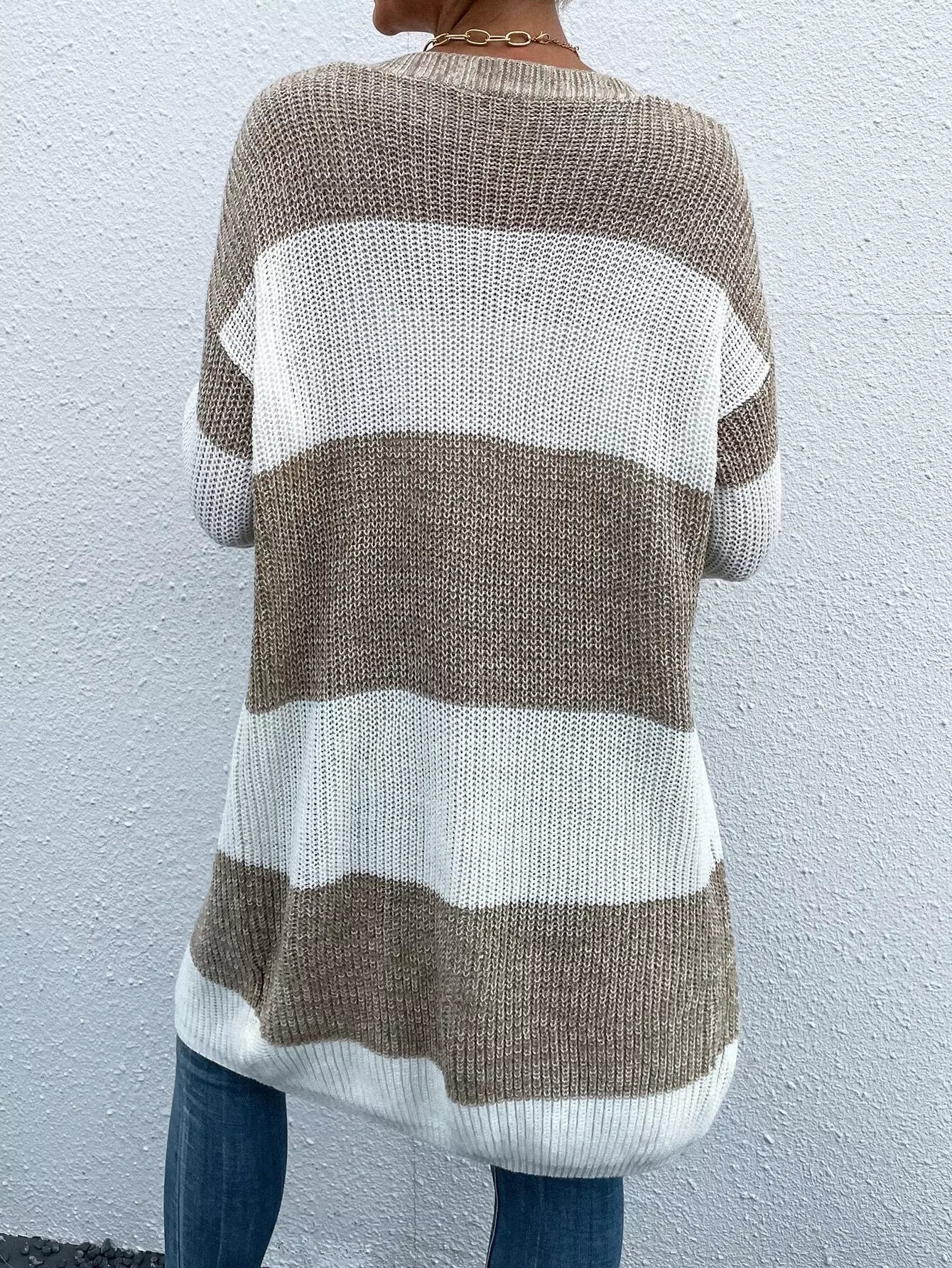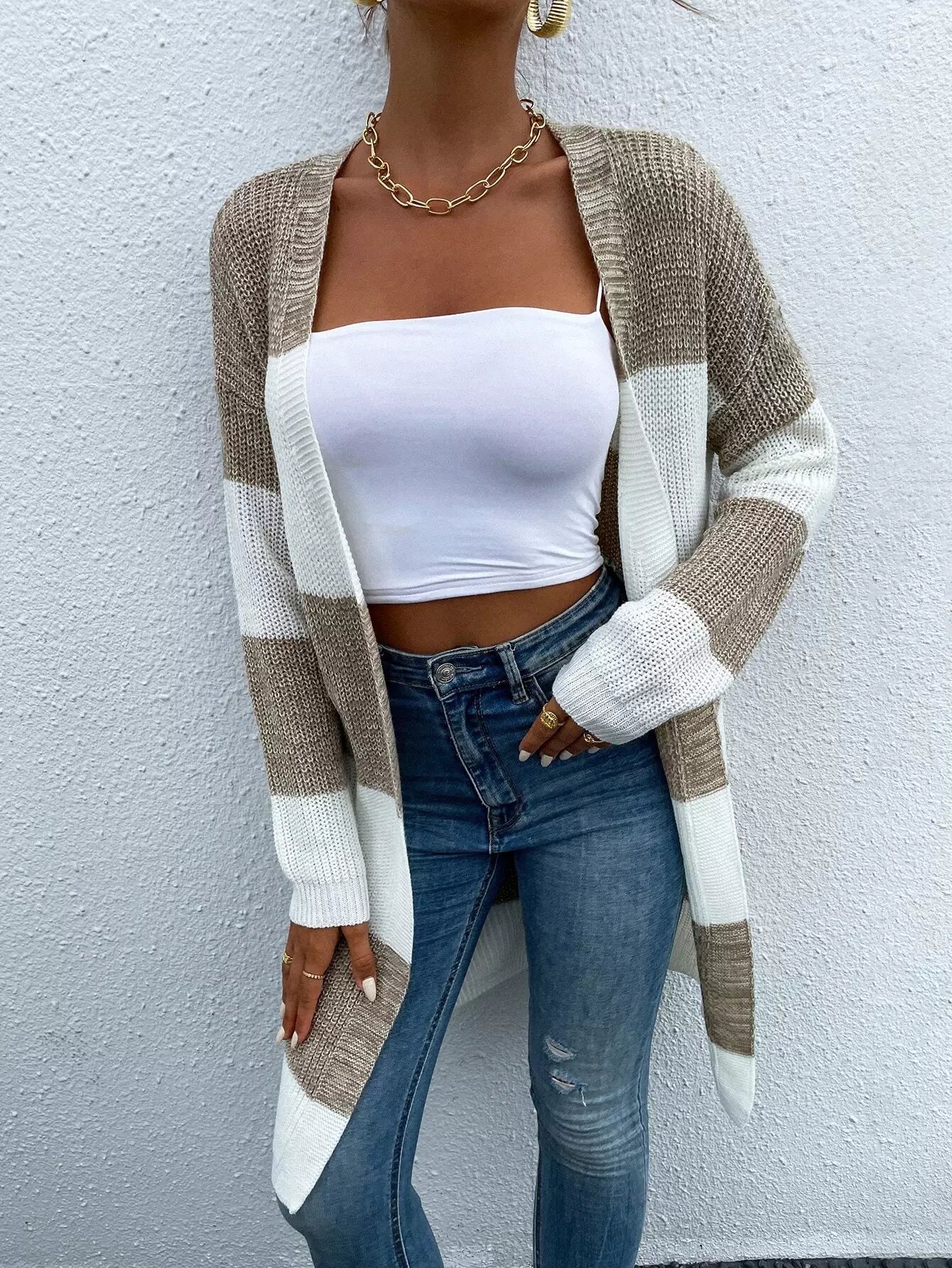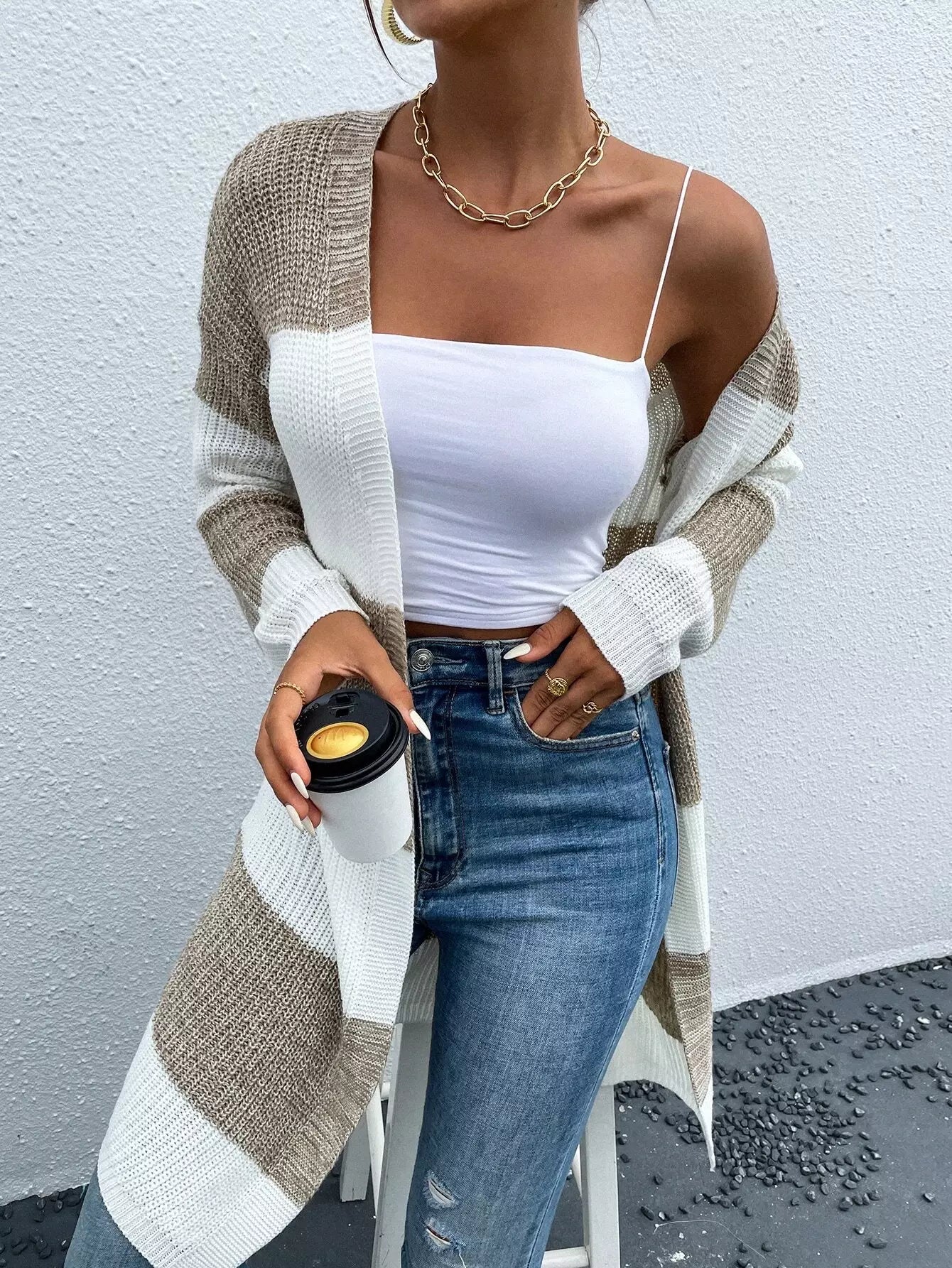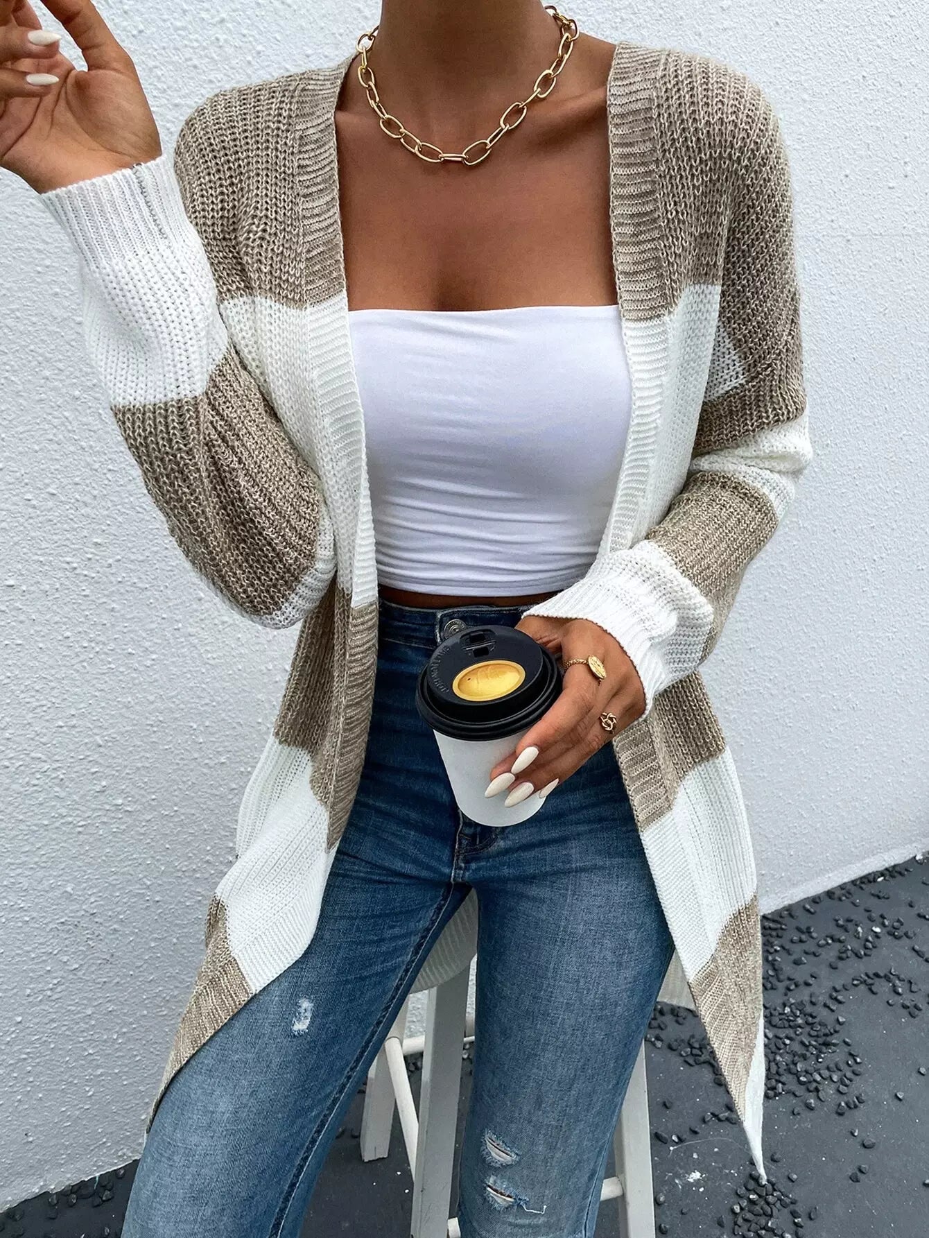 Colorblock Drop Shoulder Open Front Longline Cardigan