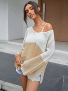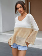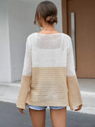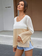 Colorblock Flounce Sleeve Split Hem Sweater