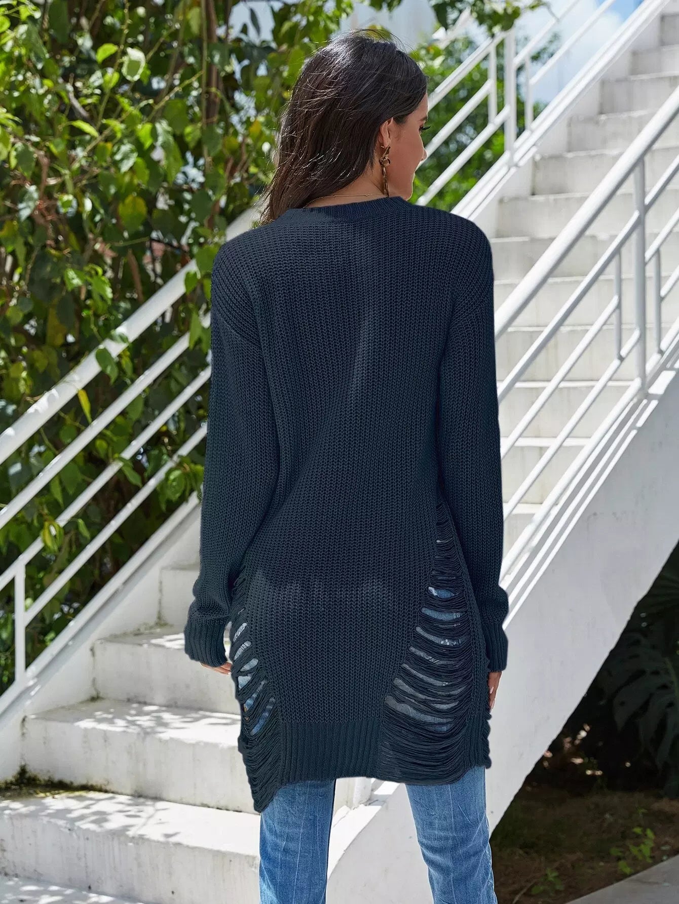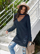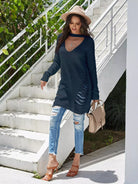 Distressed Choker Neck Longline Sweater