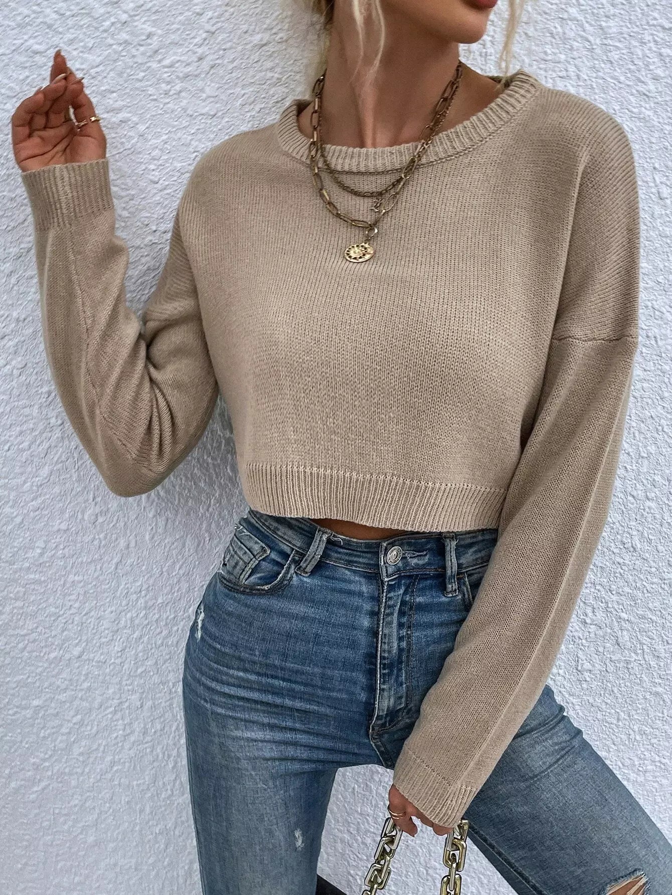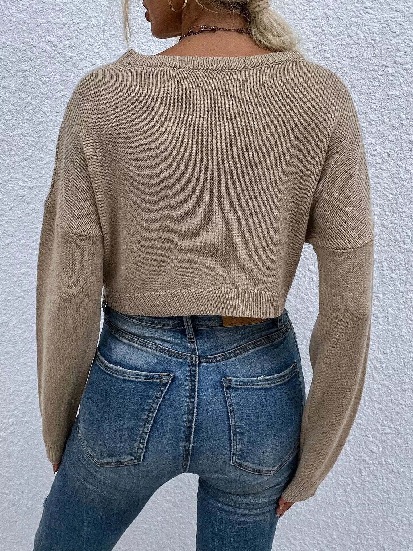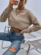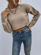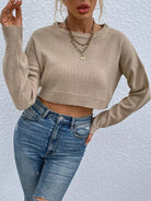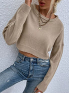 Drop Shoulder Crop Ribbed Knit Sweater