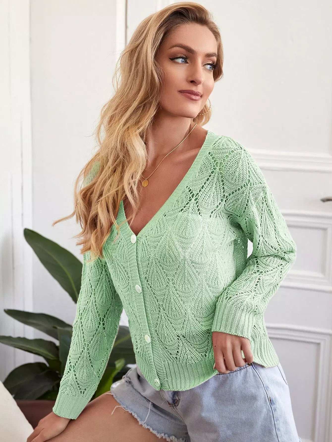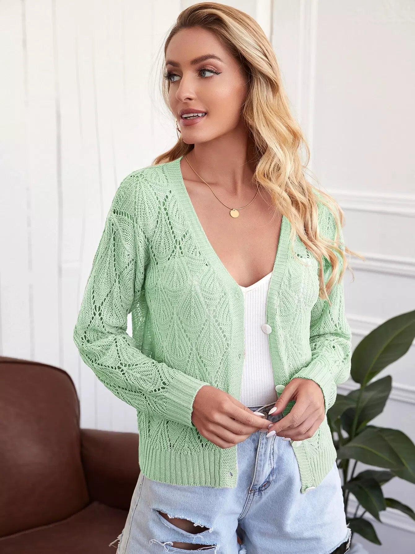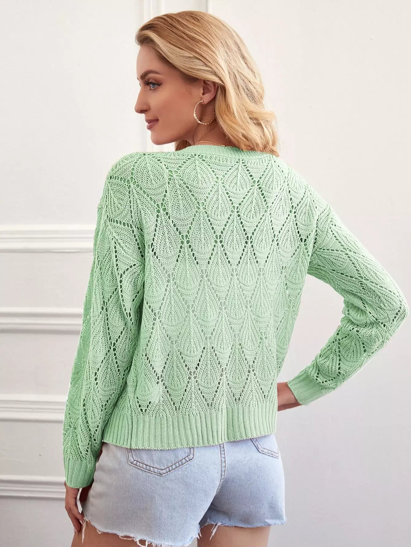 Drop Shoulder Open Knit Cardigan