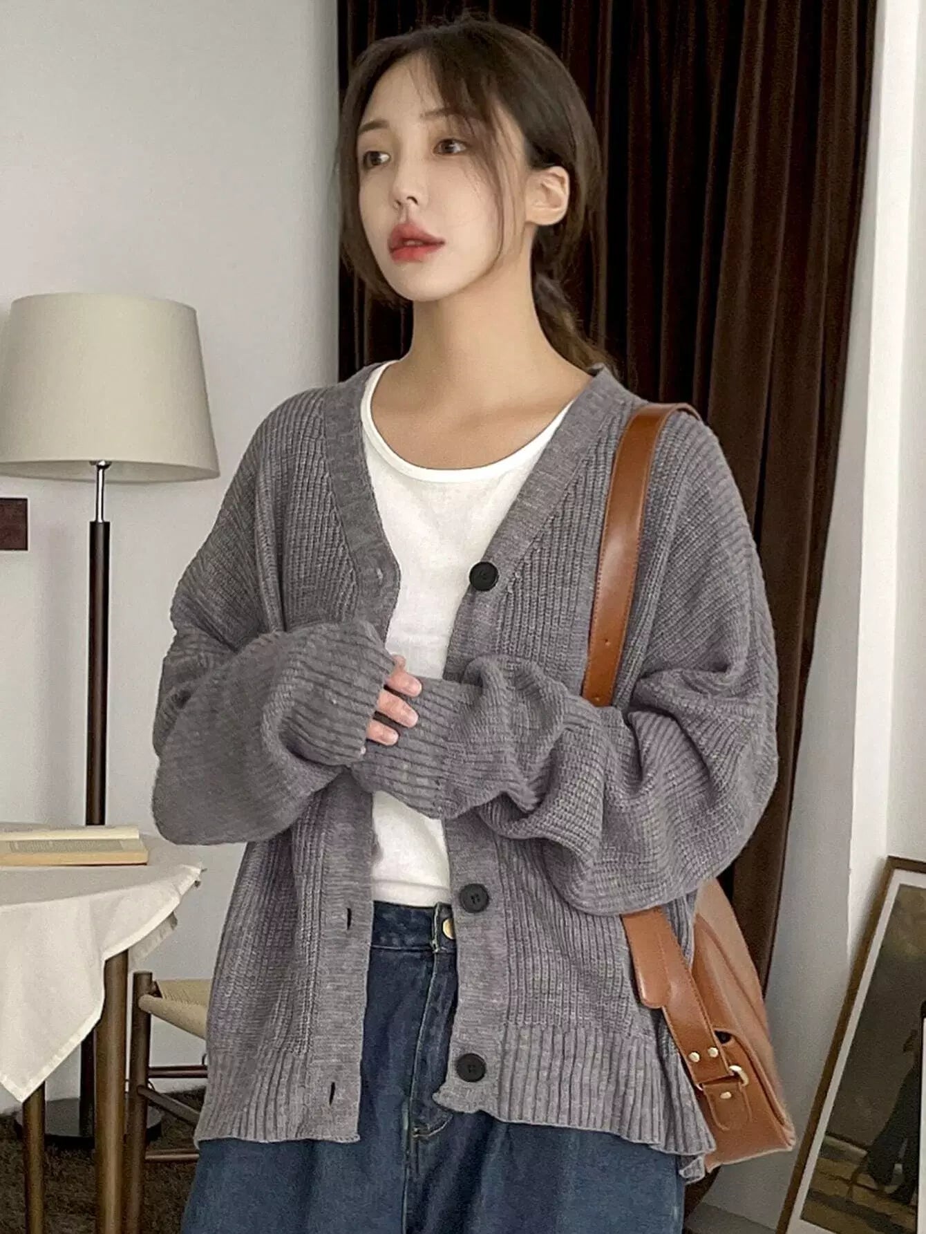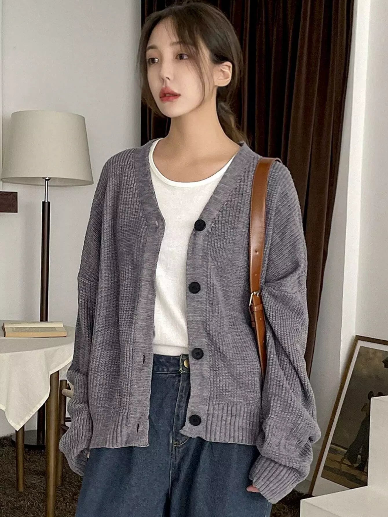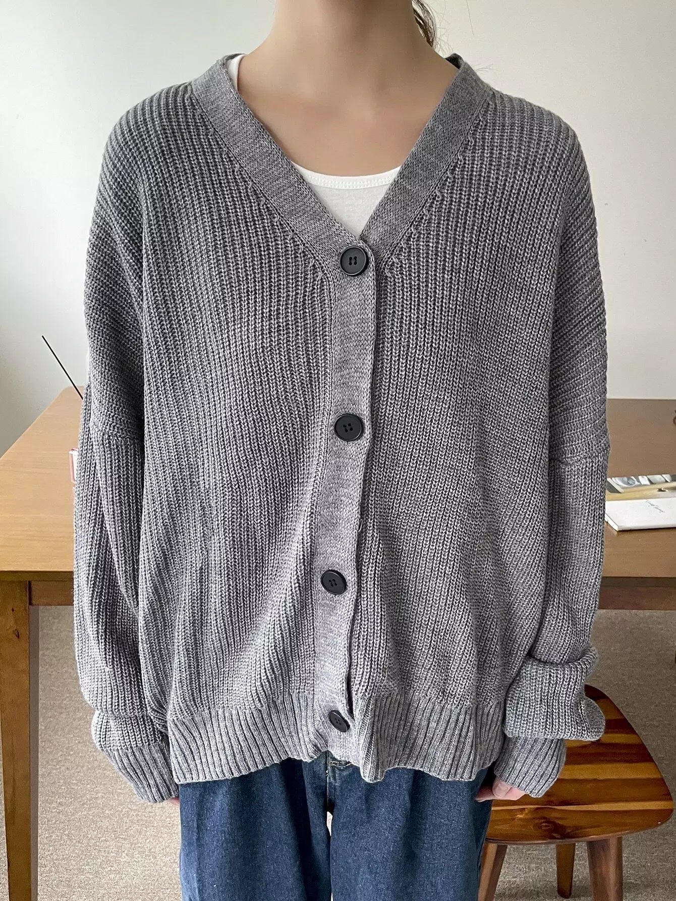 Drop Shoulder Ribbed Knit Cardigan