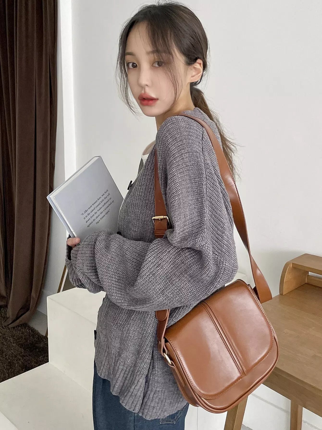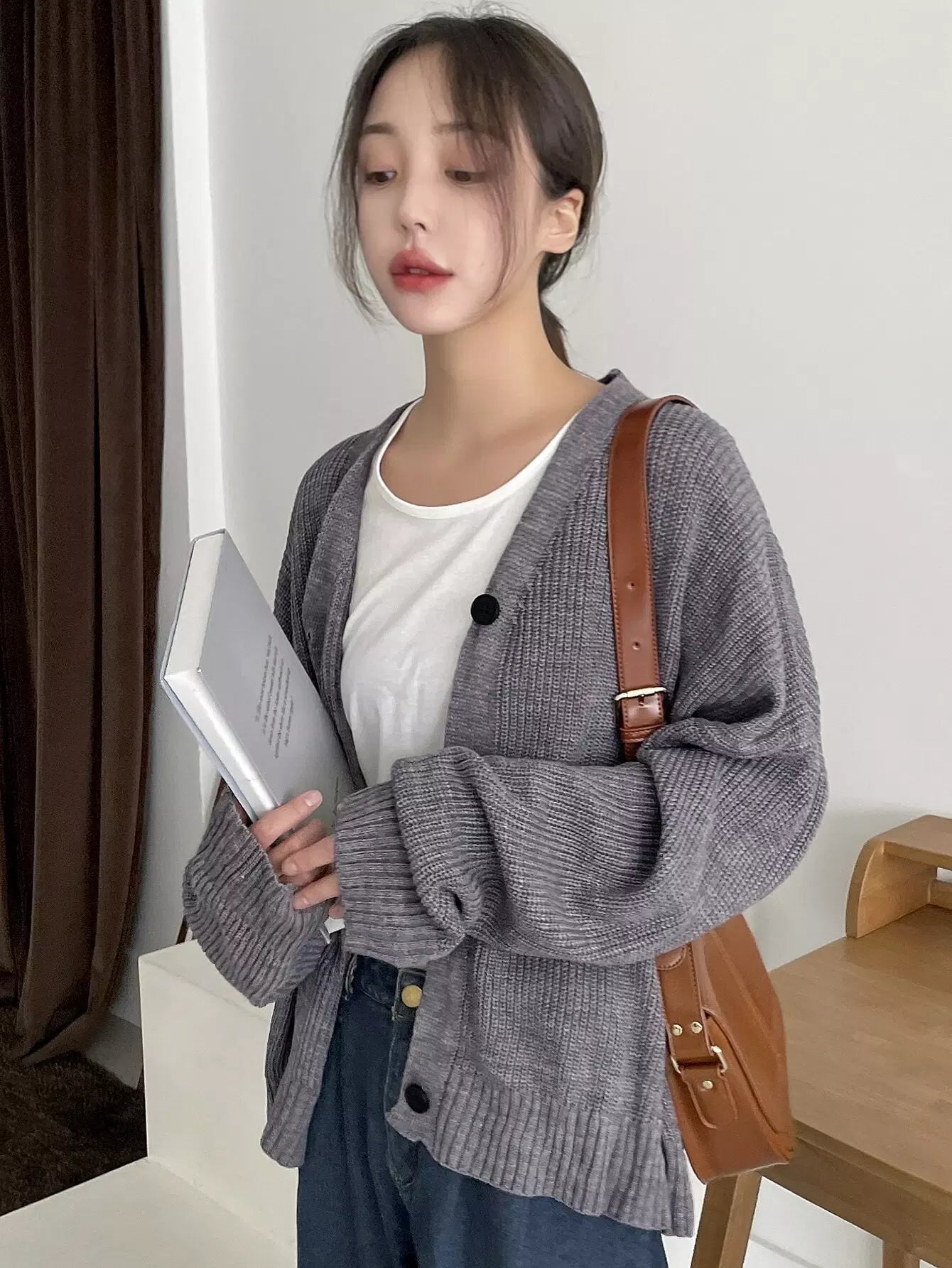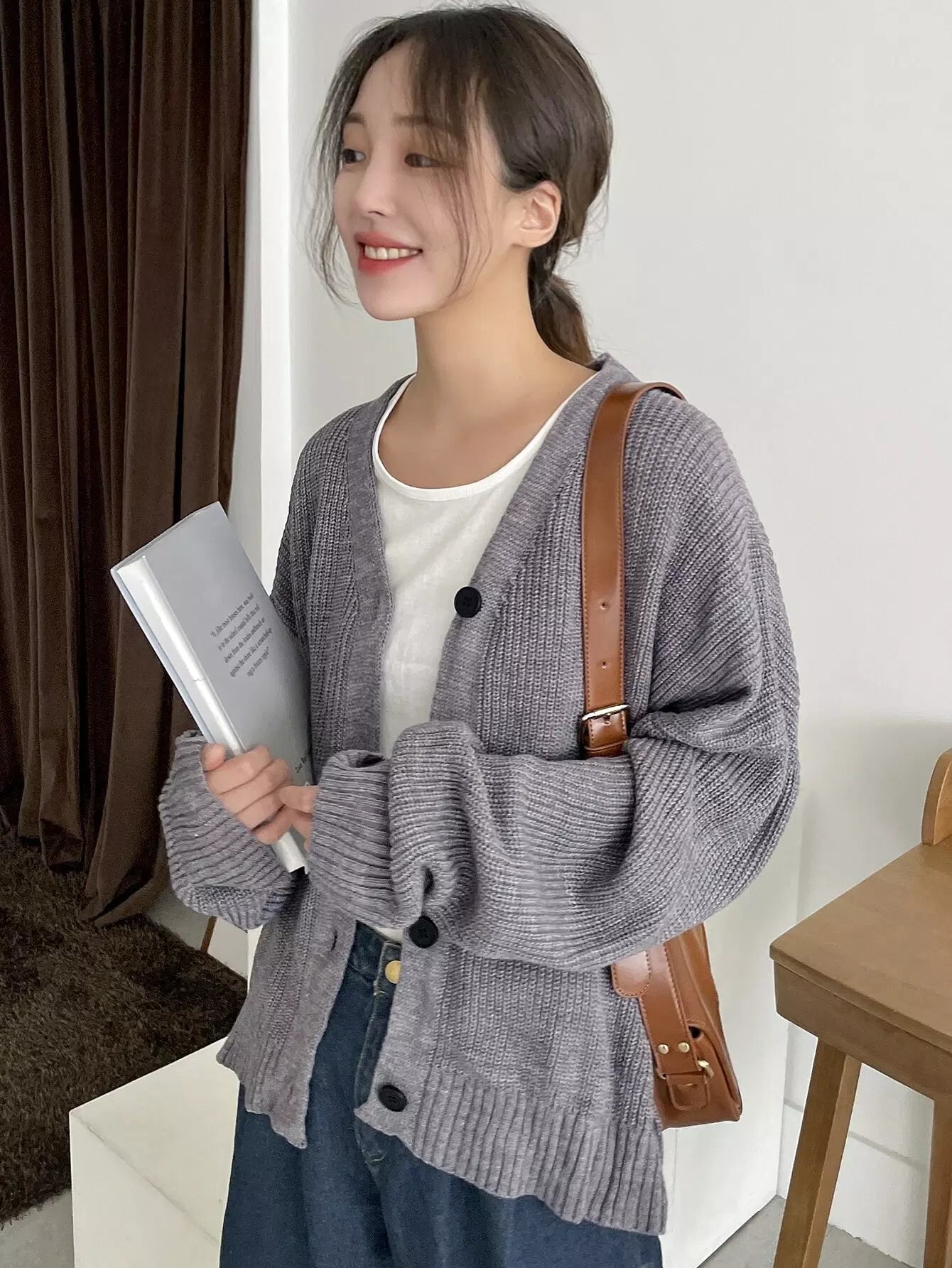 Drop Shoulder Ribbed Knit Cardigan
