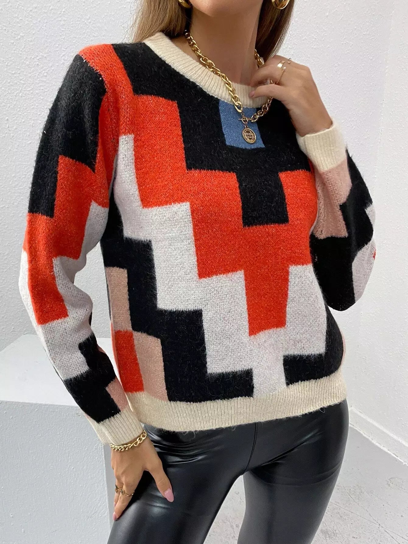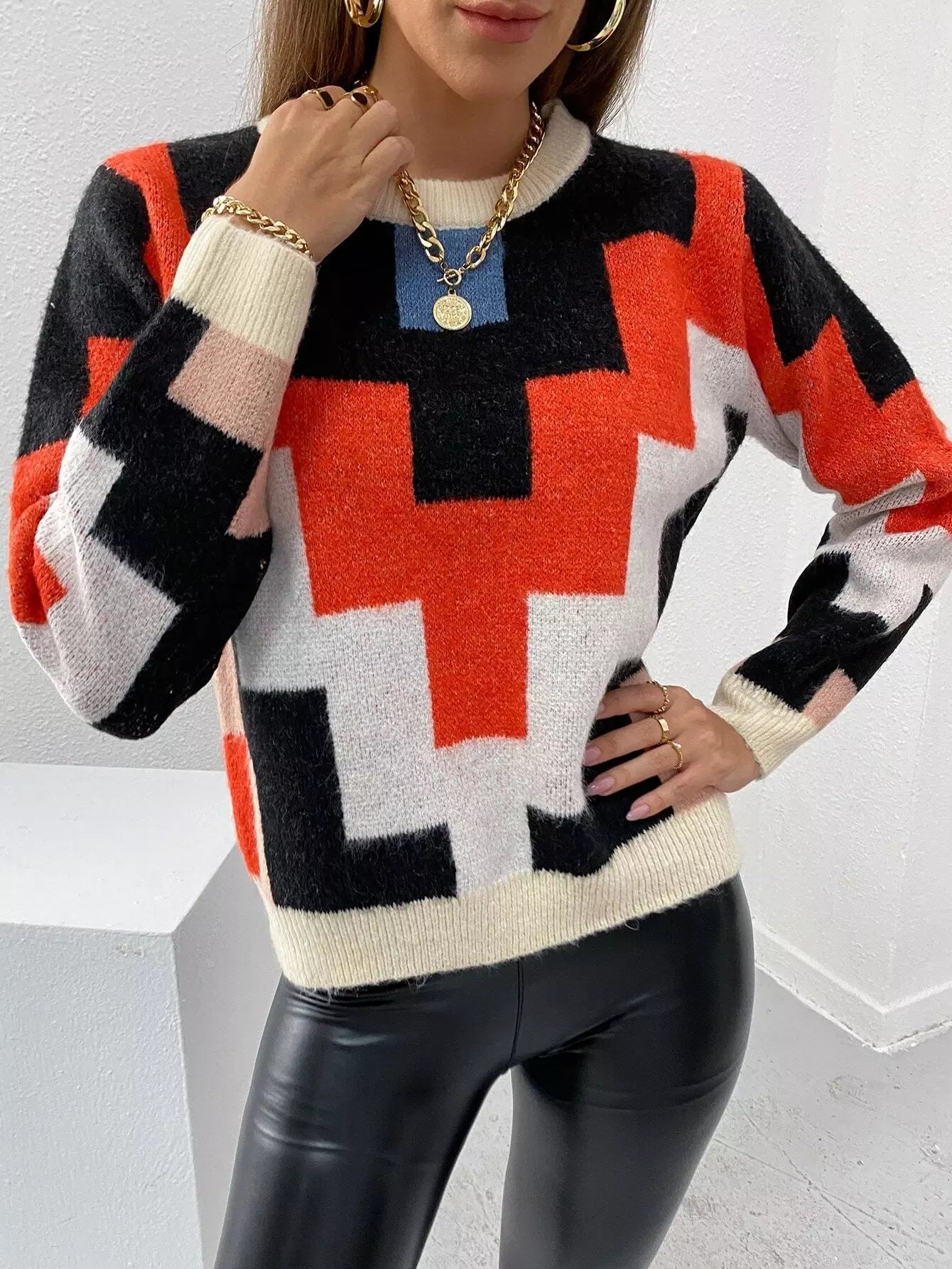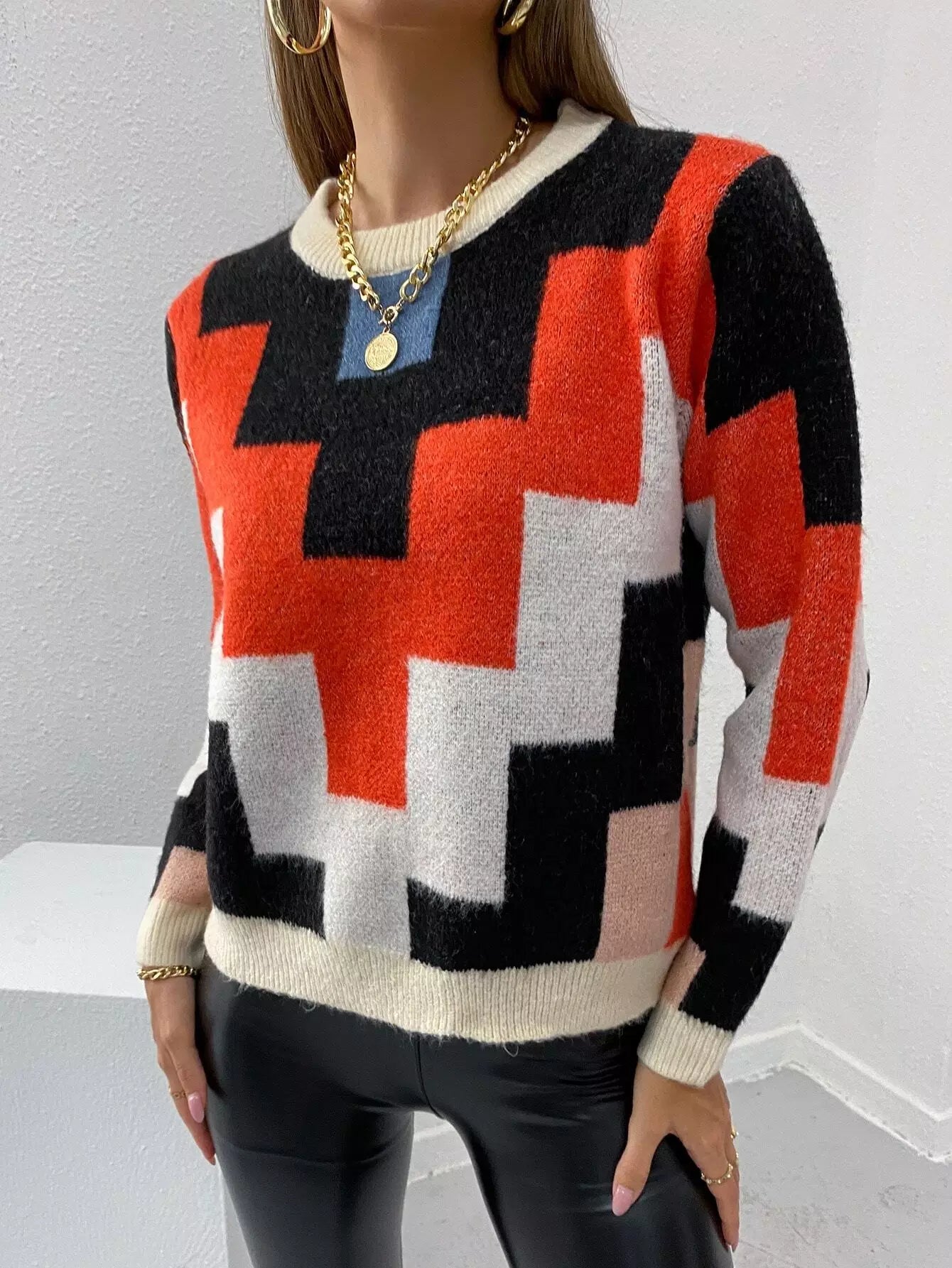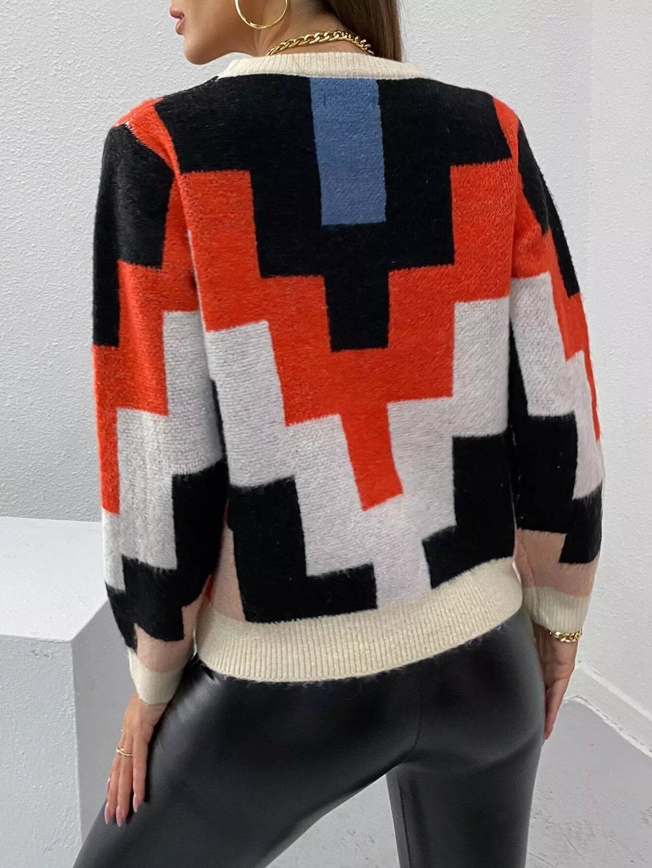 Geo Pattern Colorblock Sweater