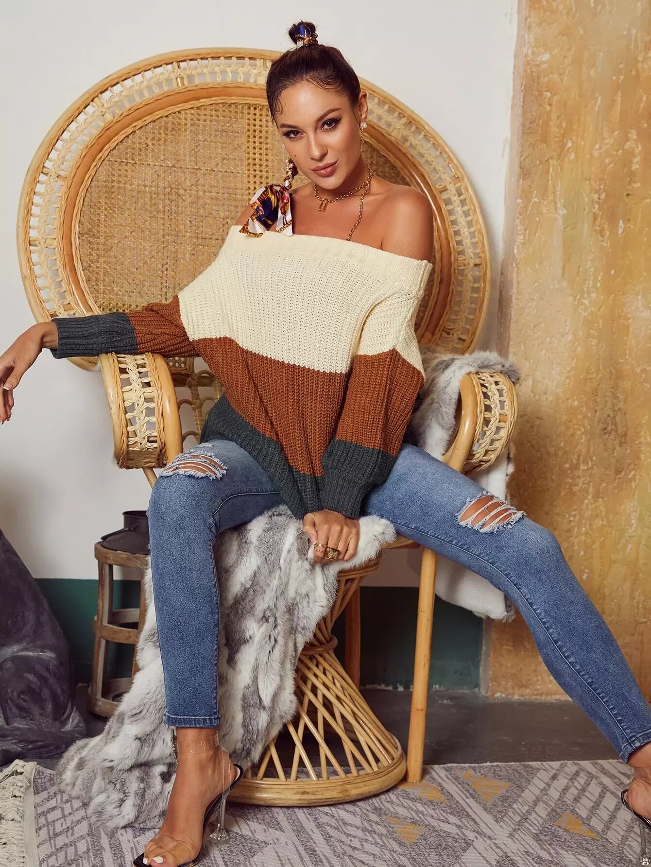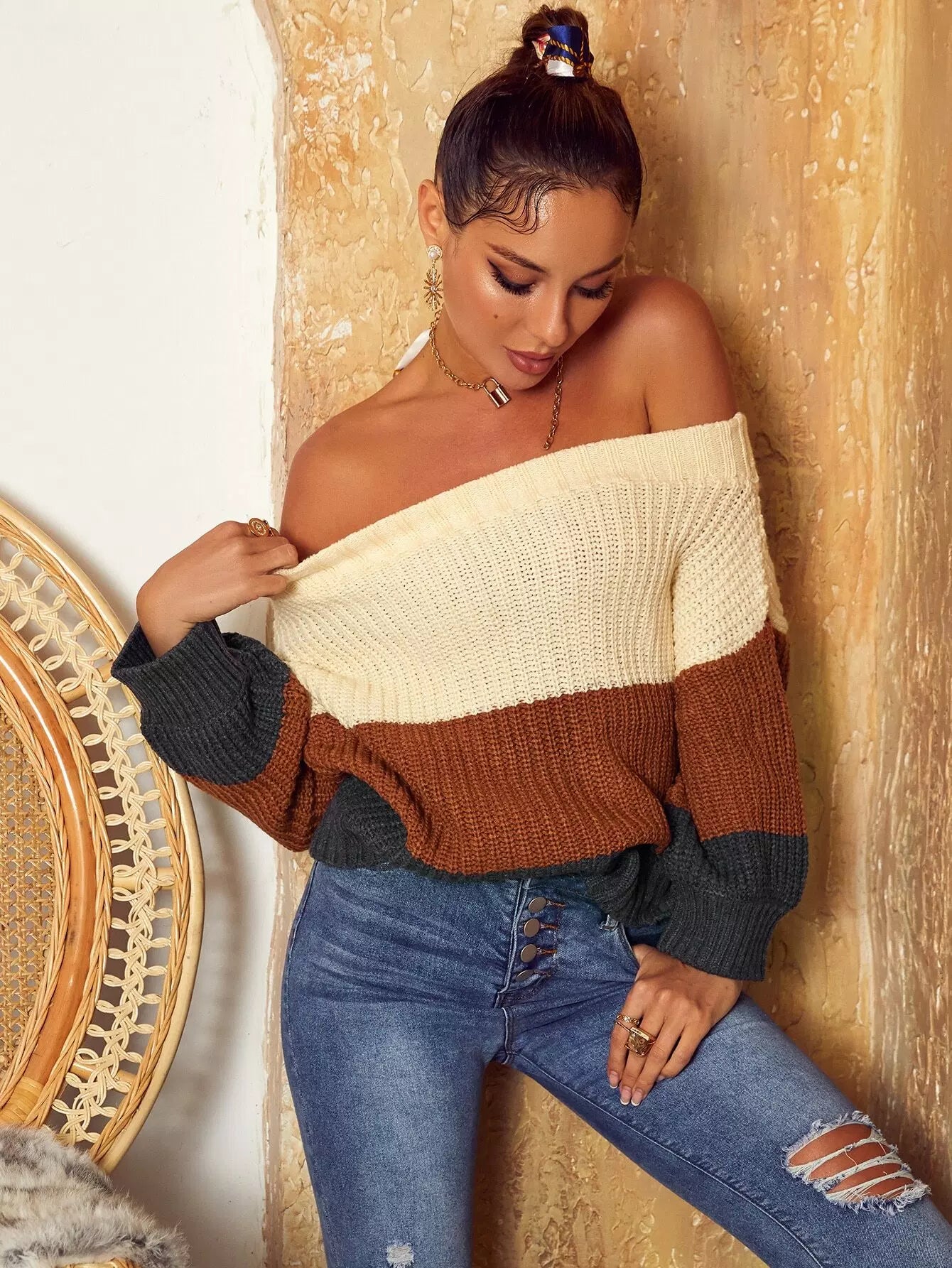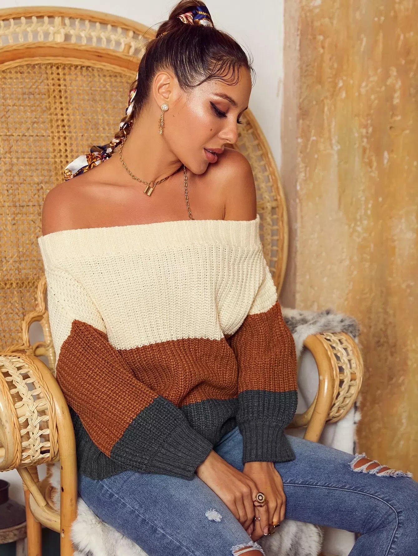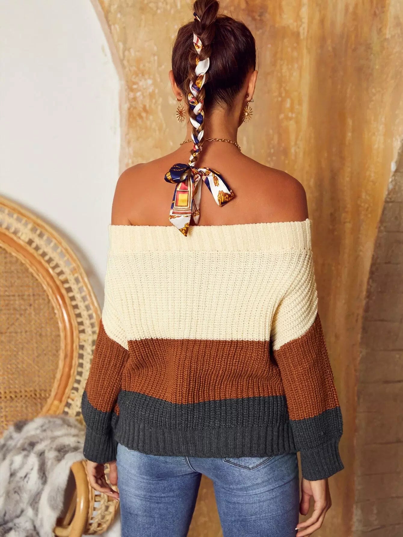 Off Shoulder Colorblock Sweater