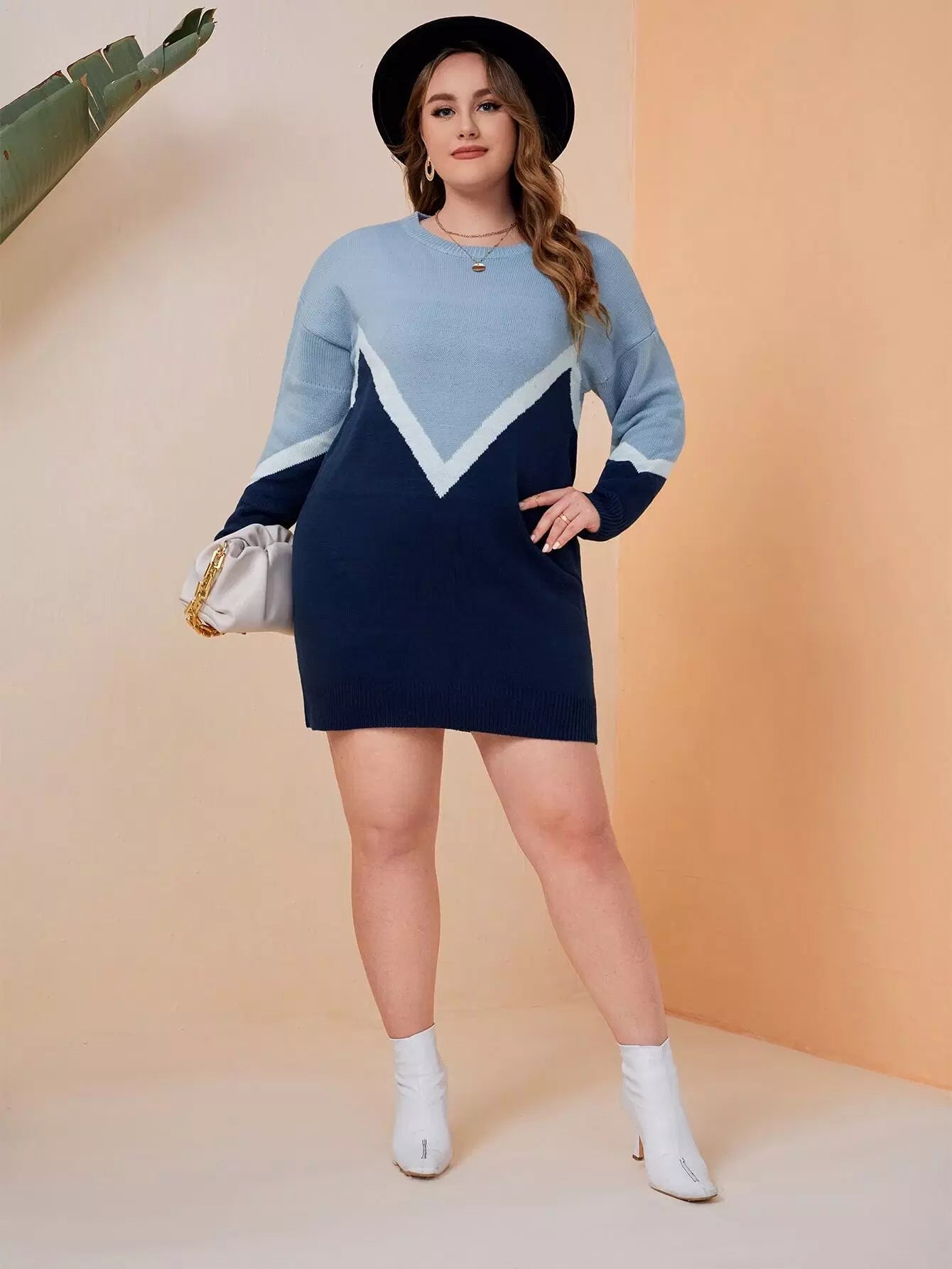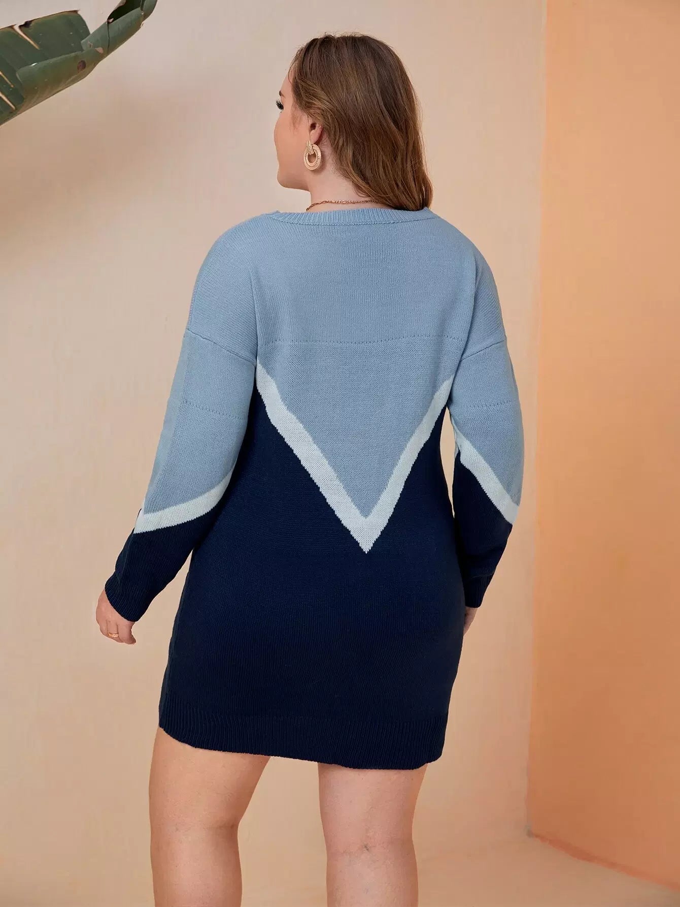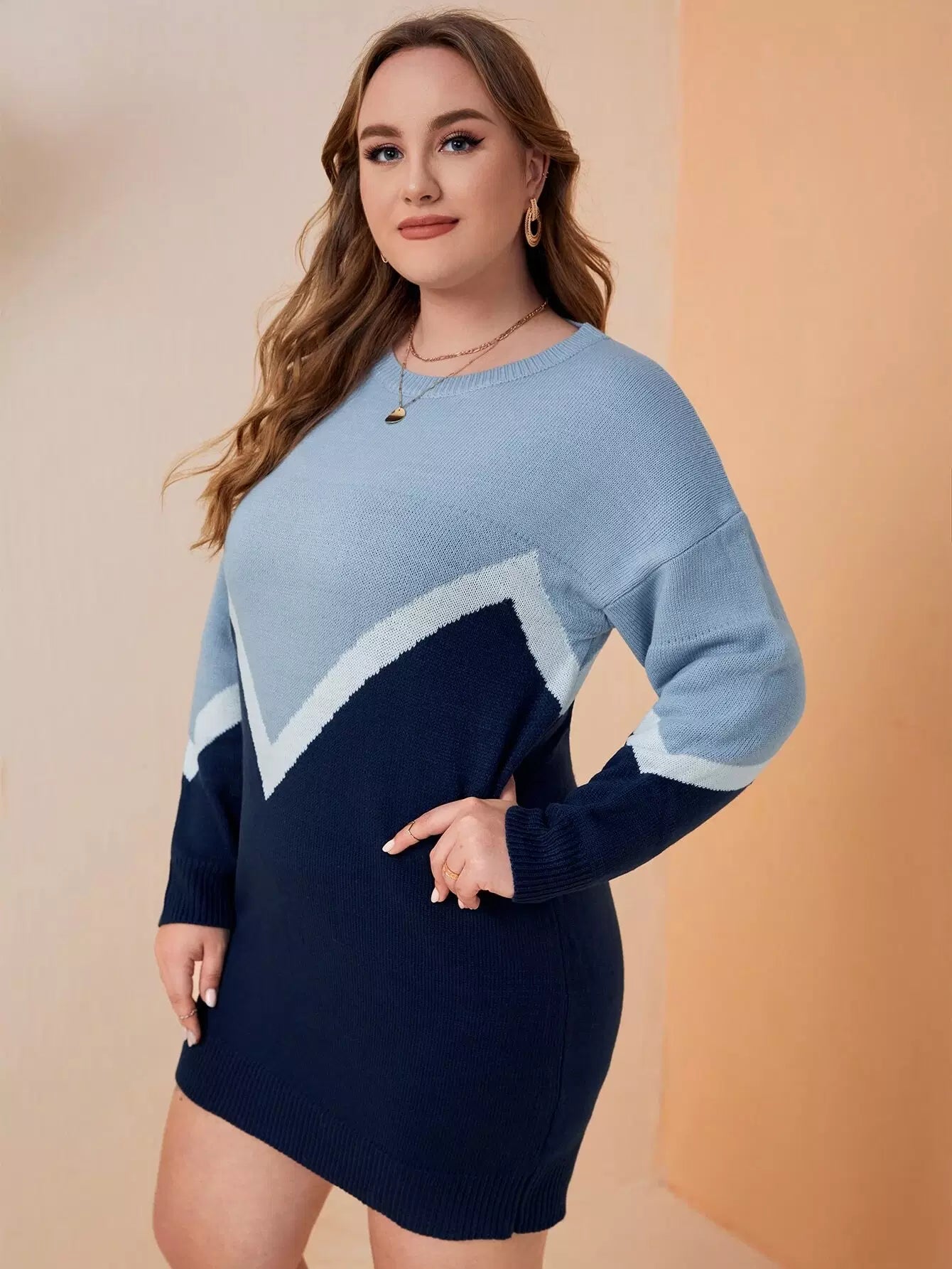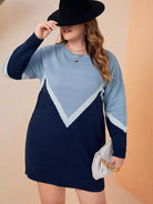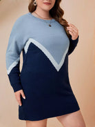 Plus Chevron Pattern Colorblock Drop Shoulder Sweater Dress