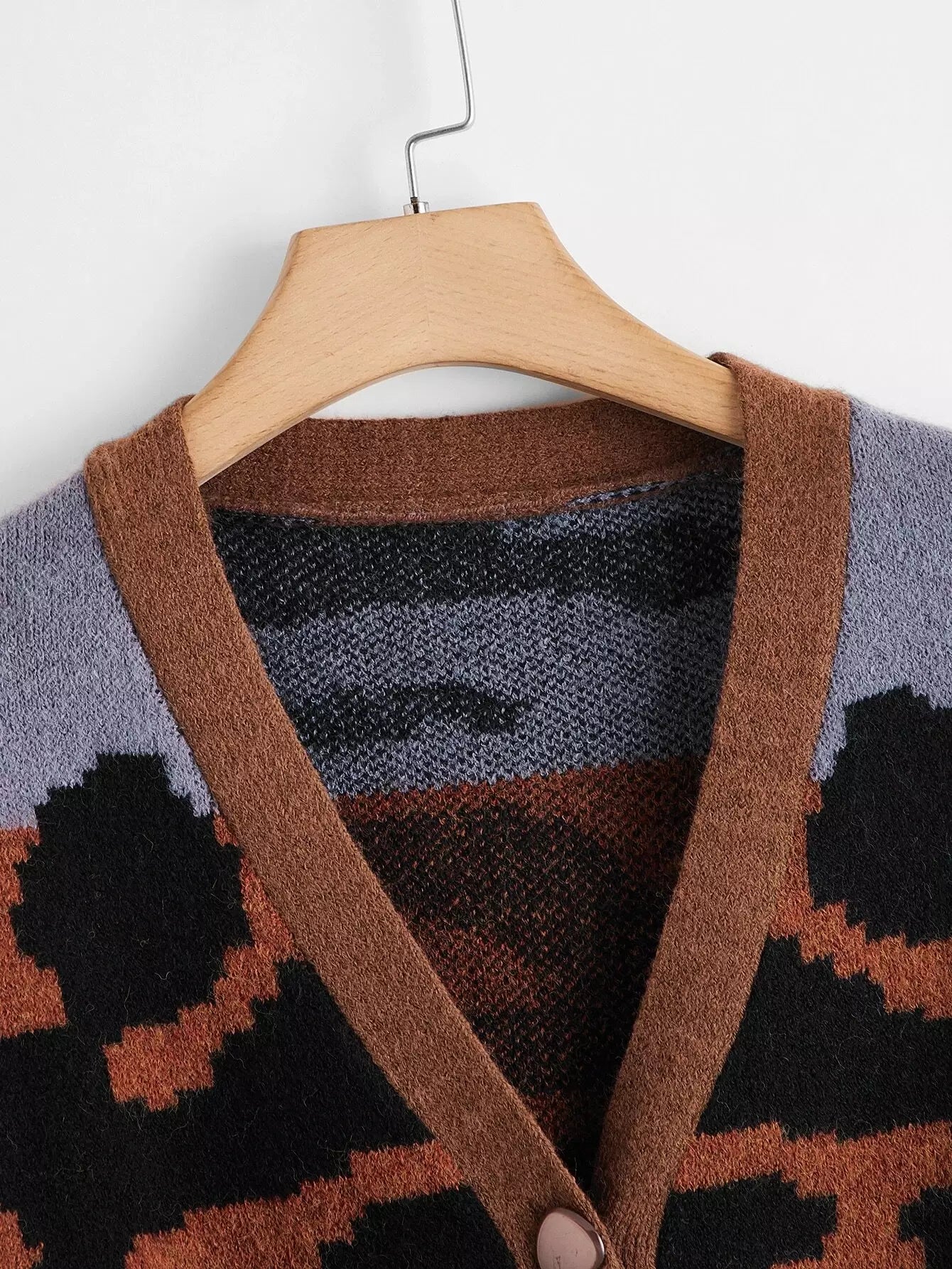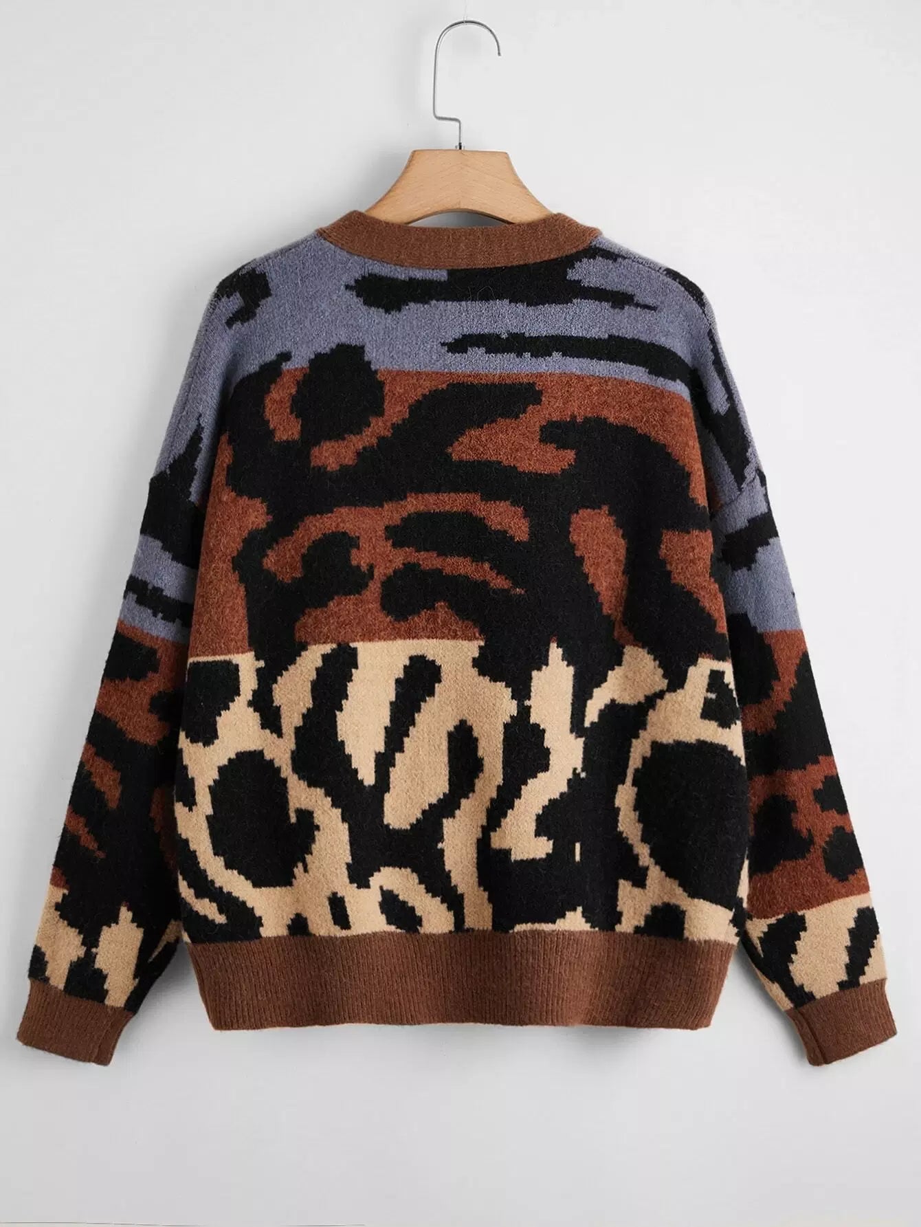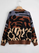 Plus Graphic Pattern Colorblock Drop Shoulder Cardigan