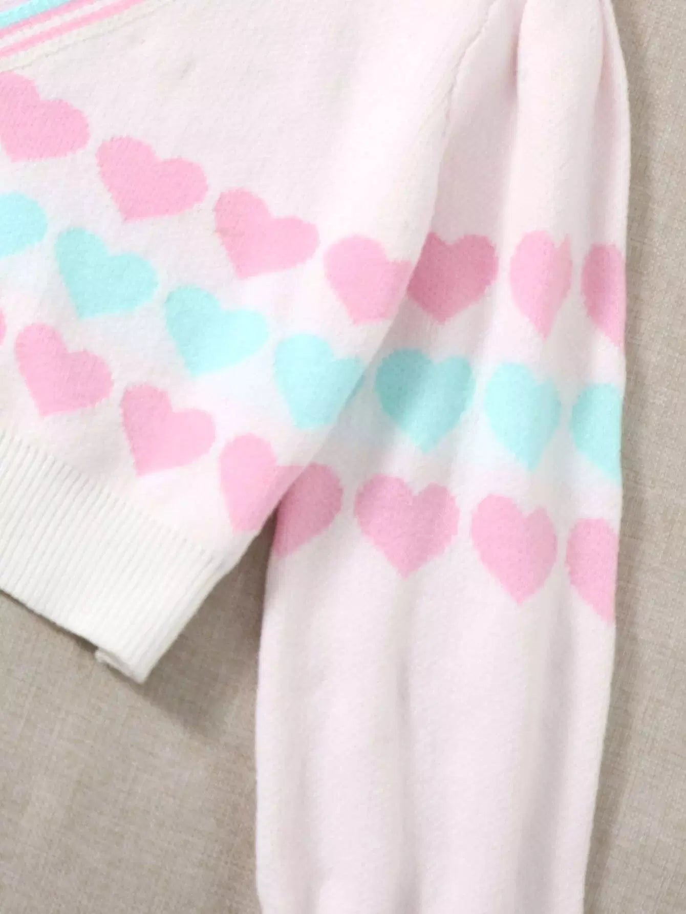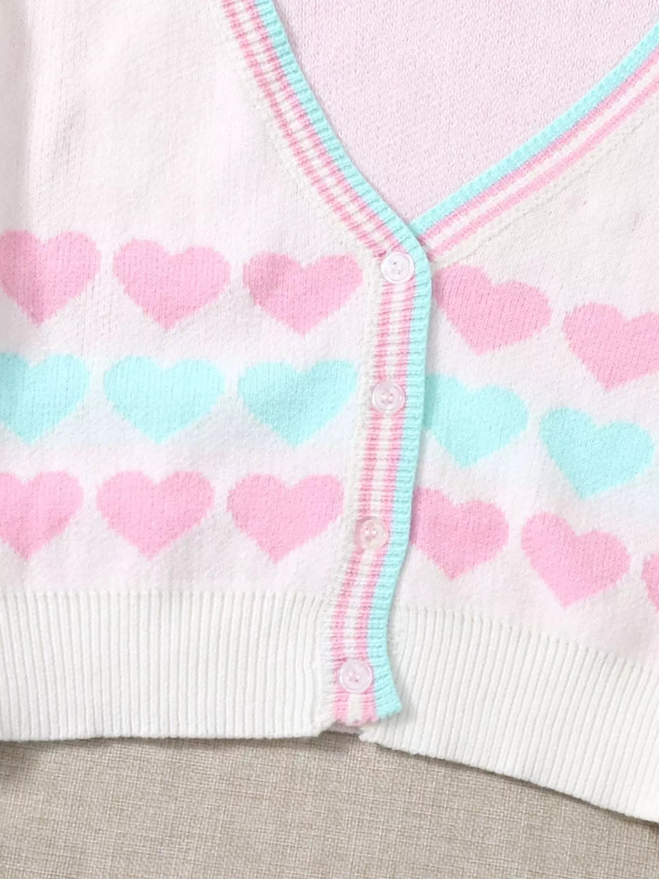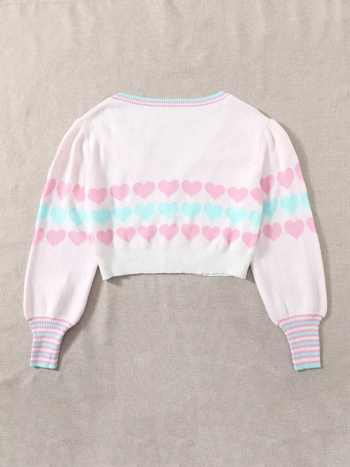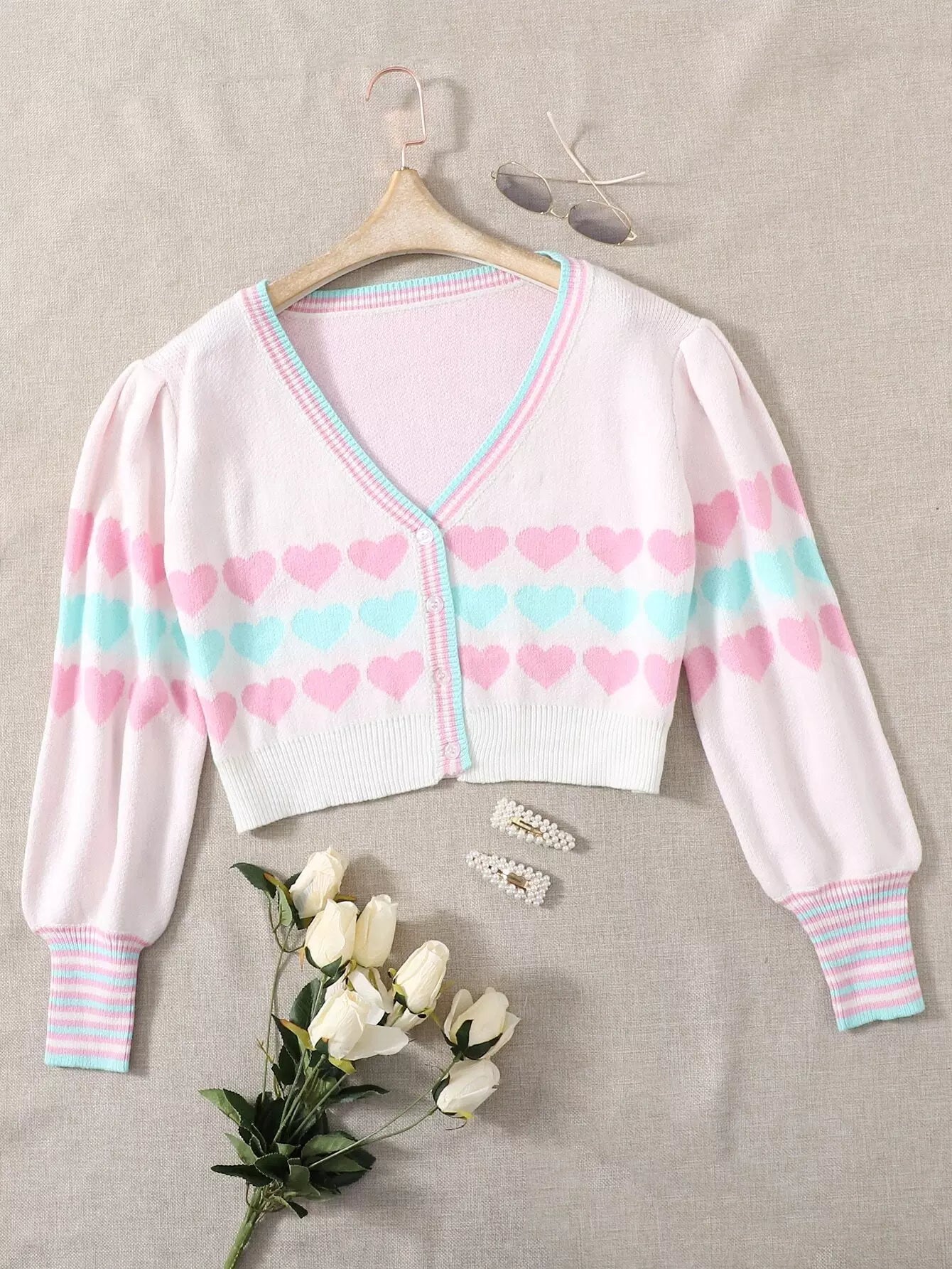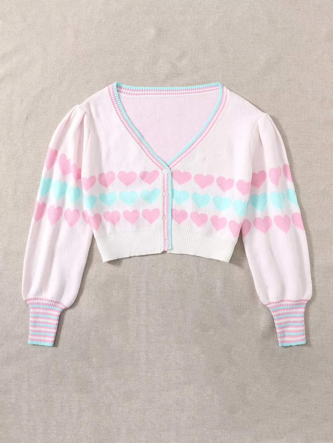 Plus Heart Pattern Button Front Bishop Sleeve Cardigan