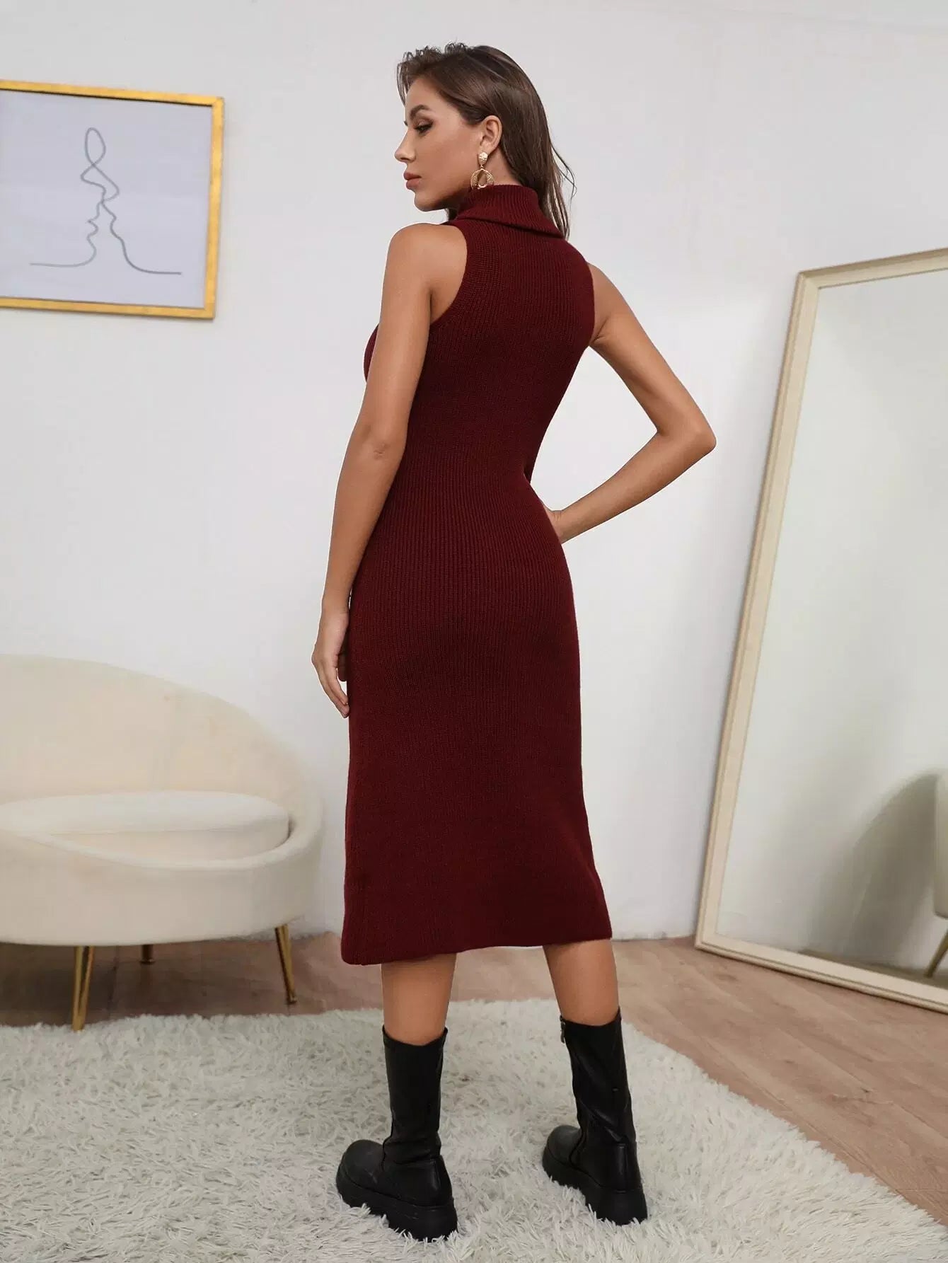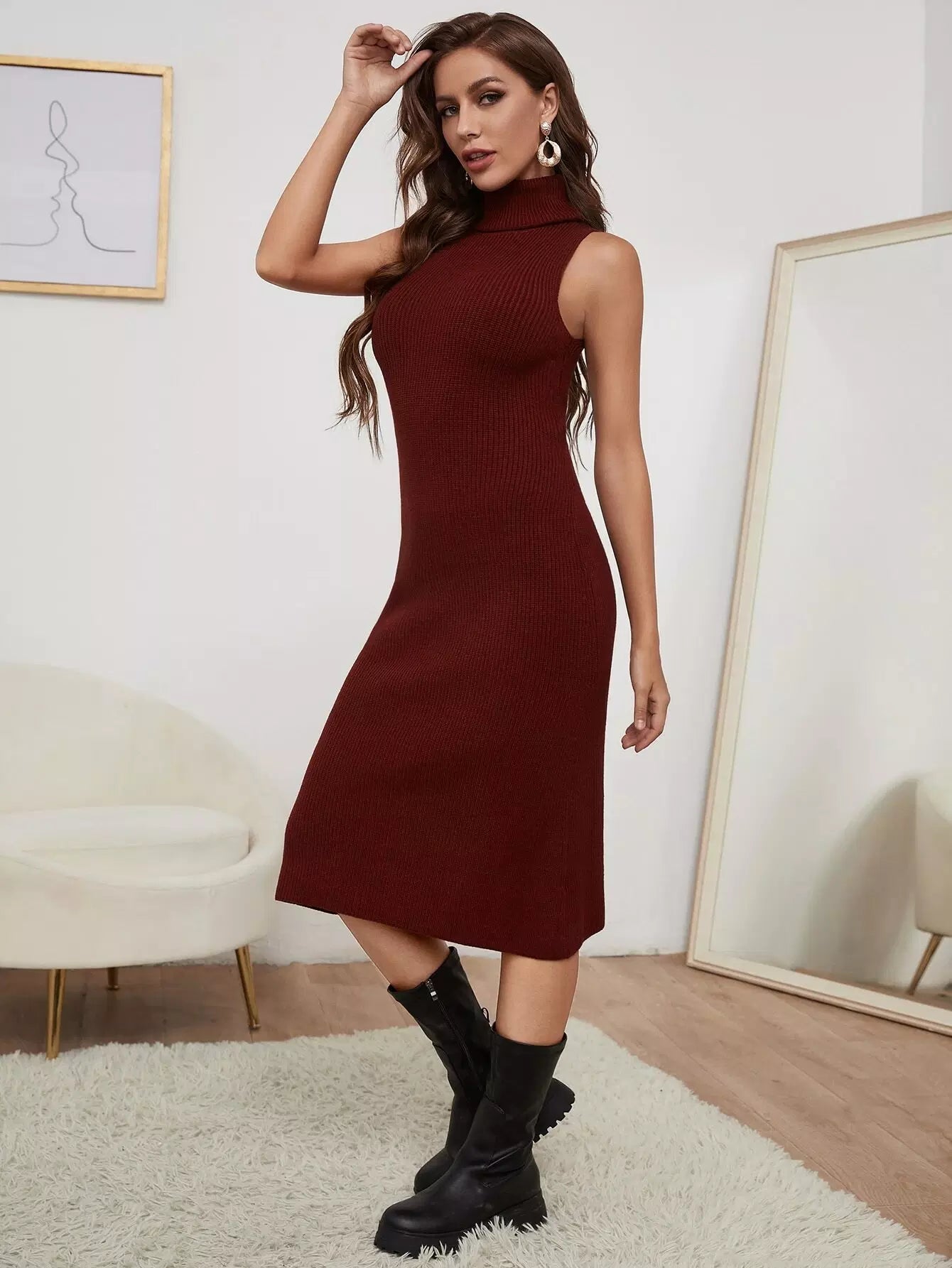 Ribbed-Knit Bodycon Sweater Dress Without Belt