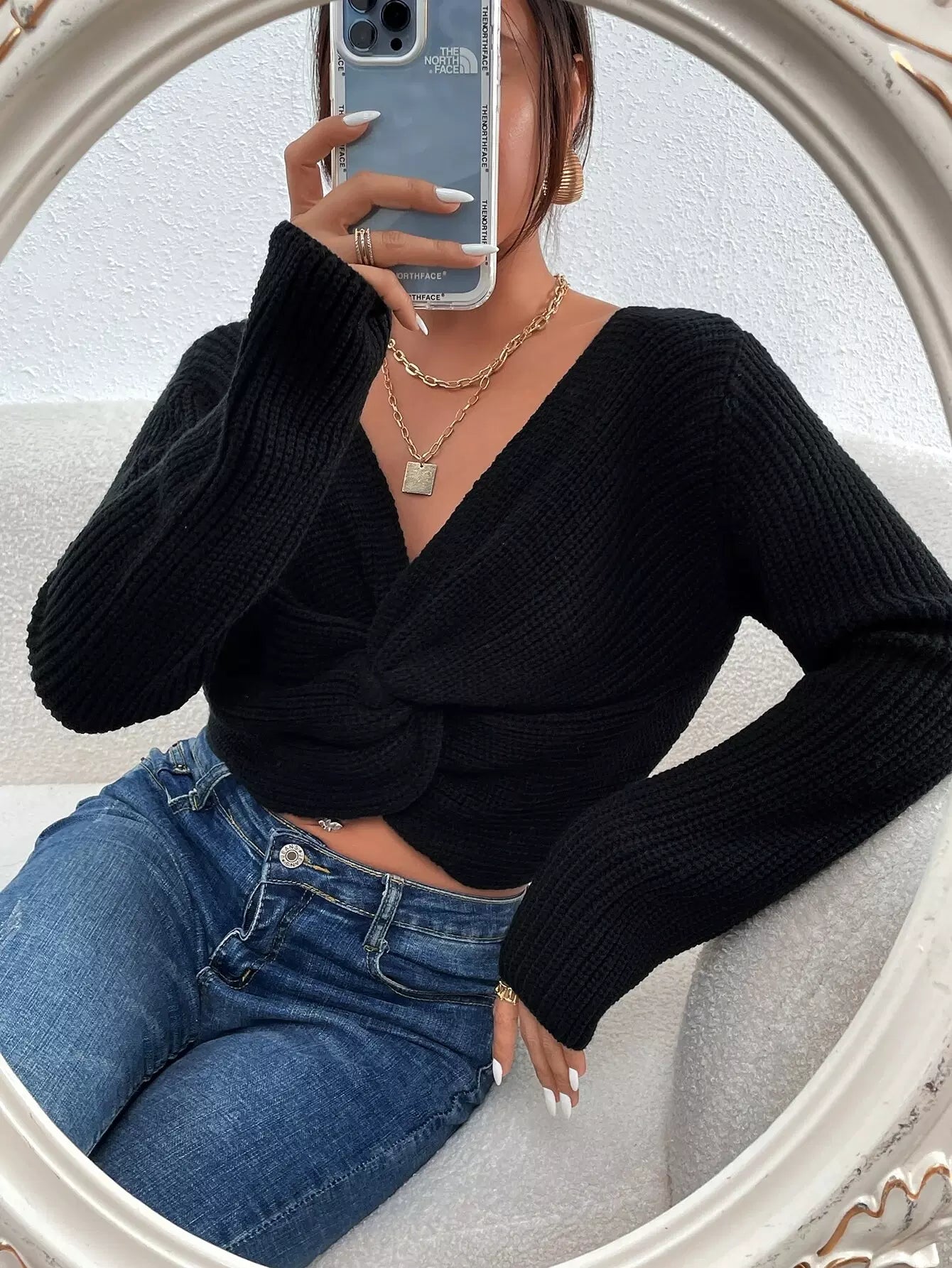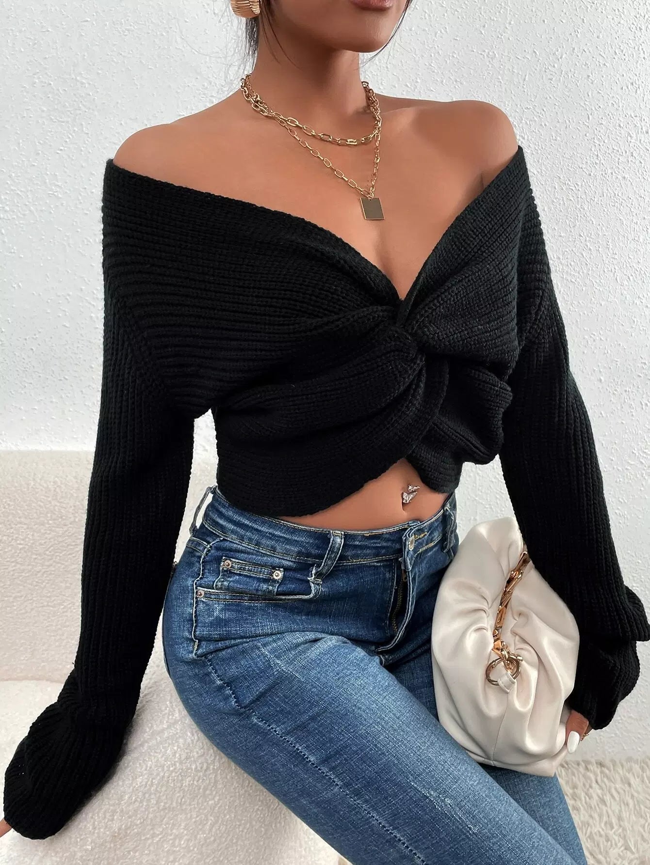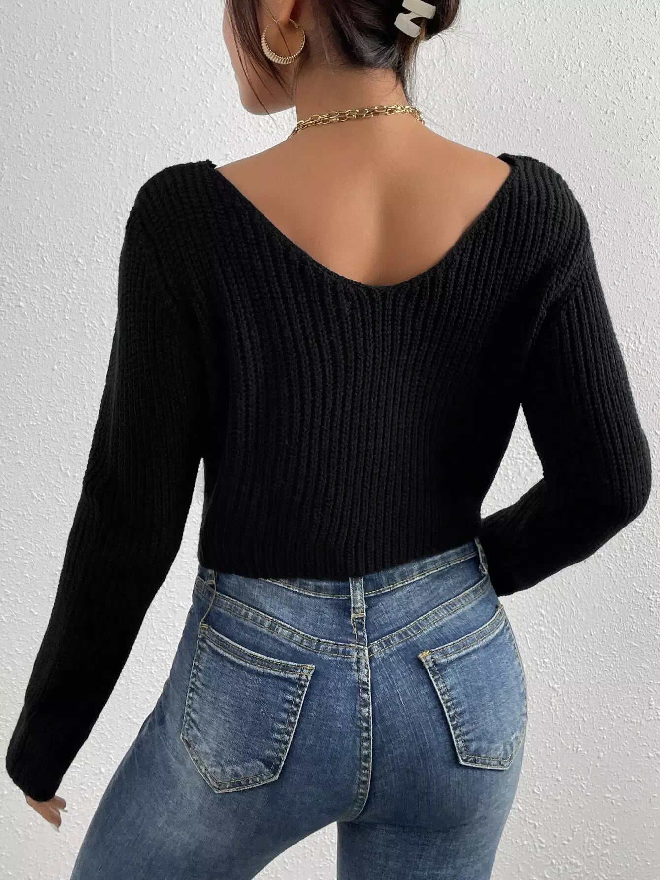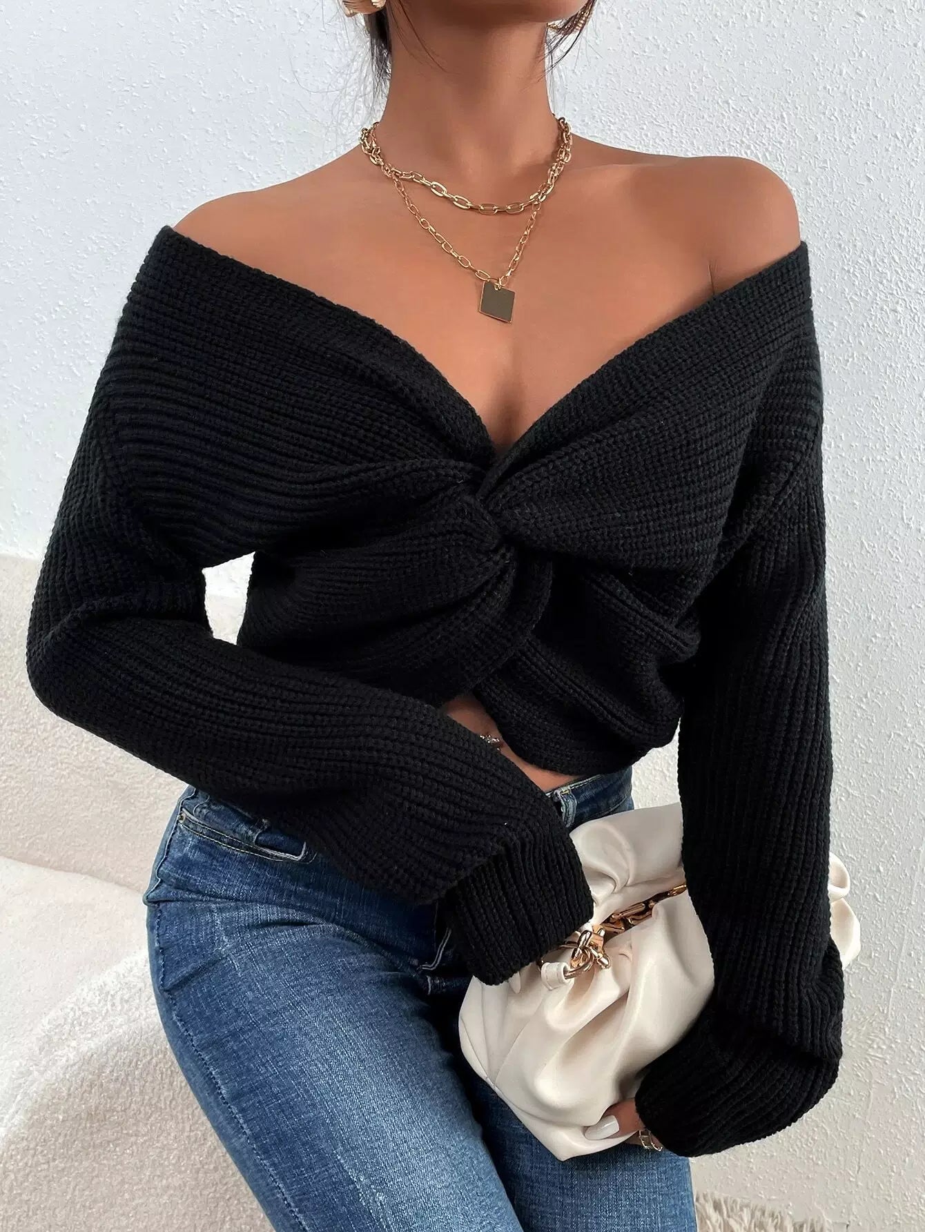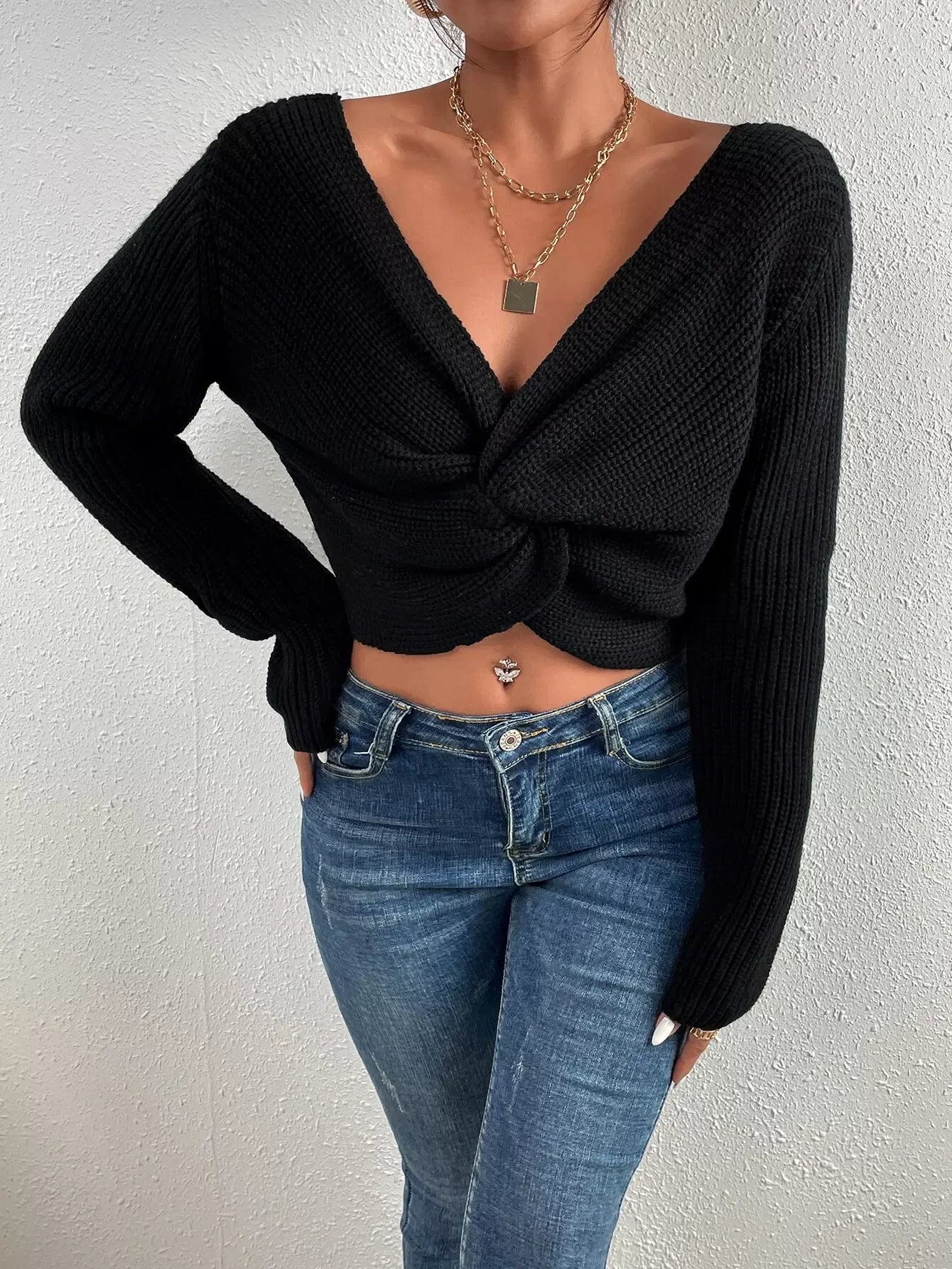 Solid Twisted Front Knitted Sweater