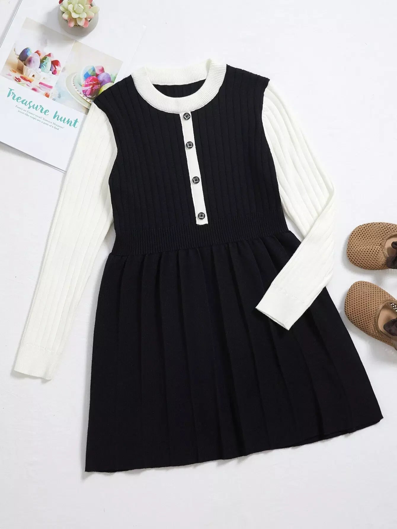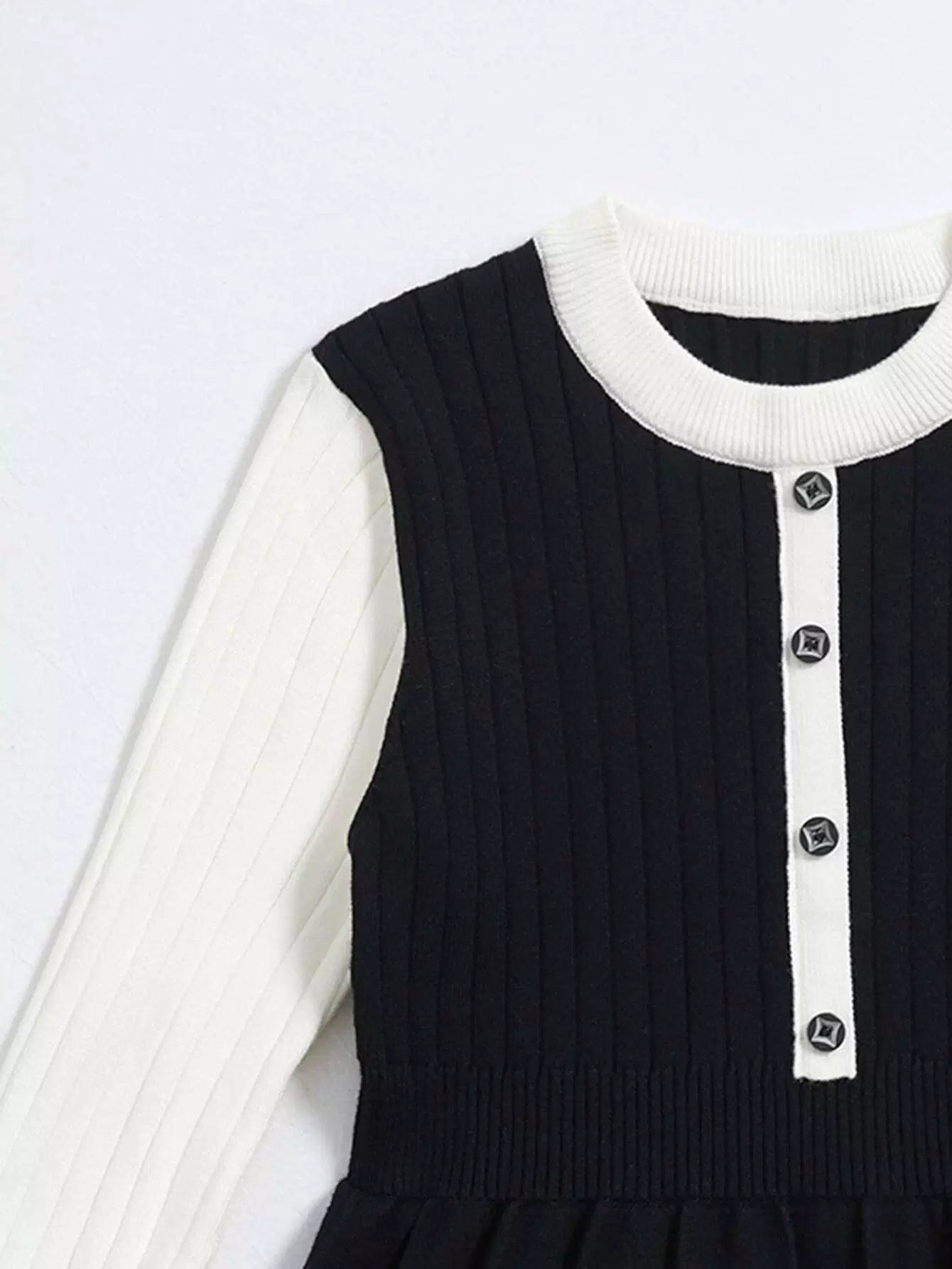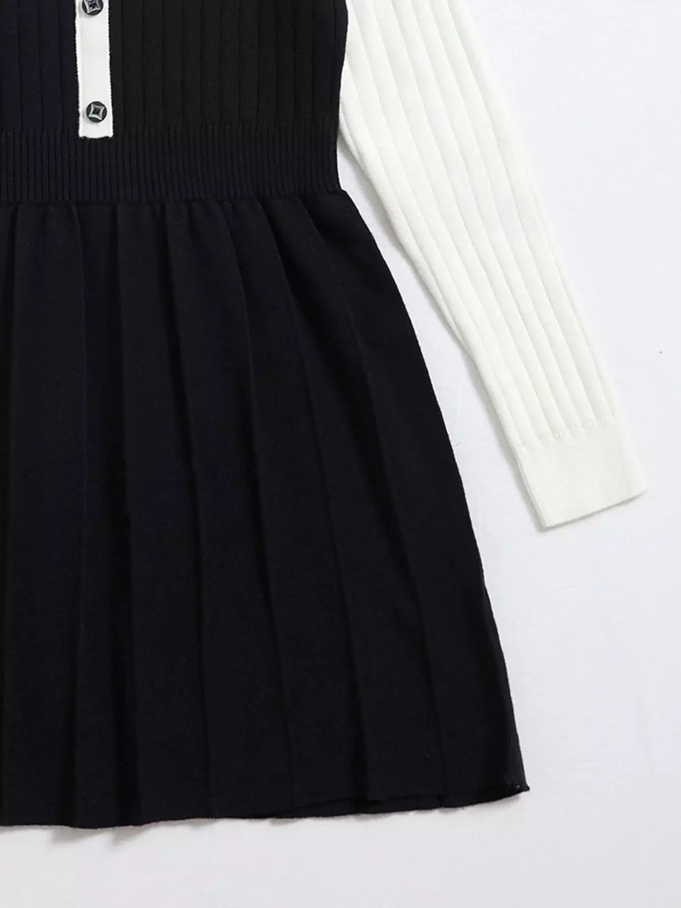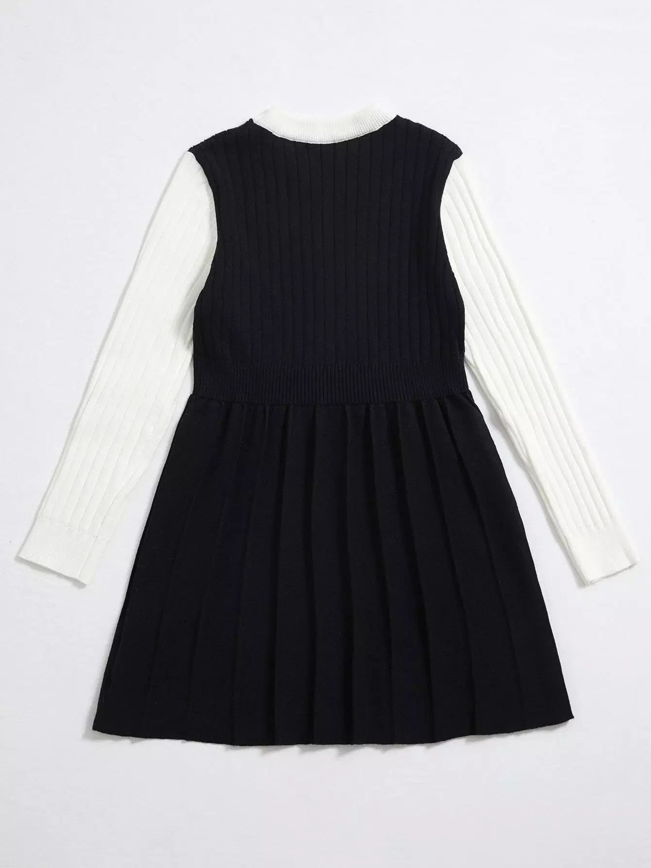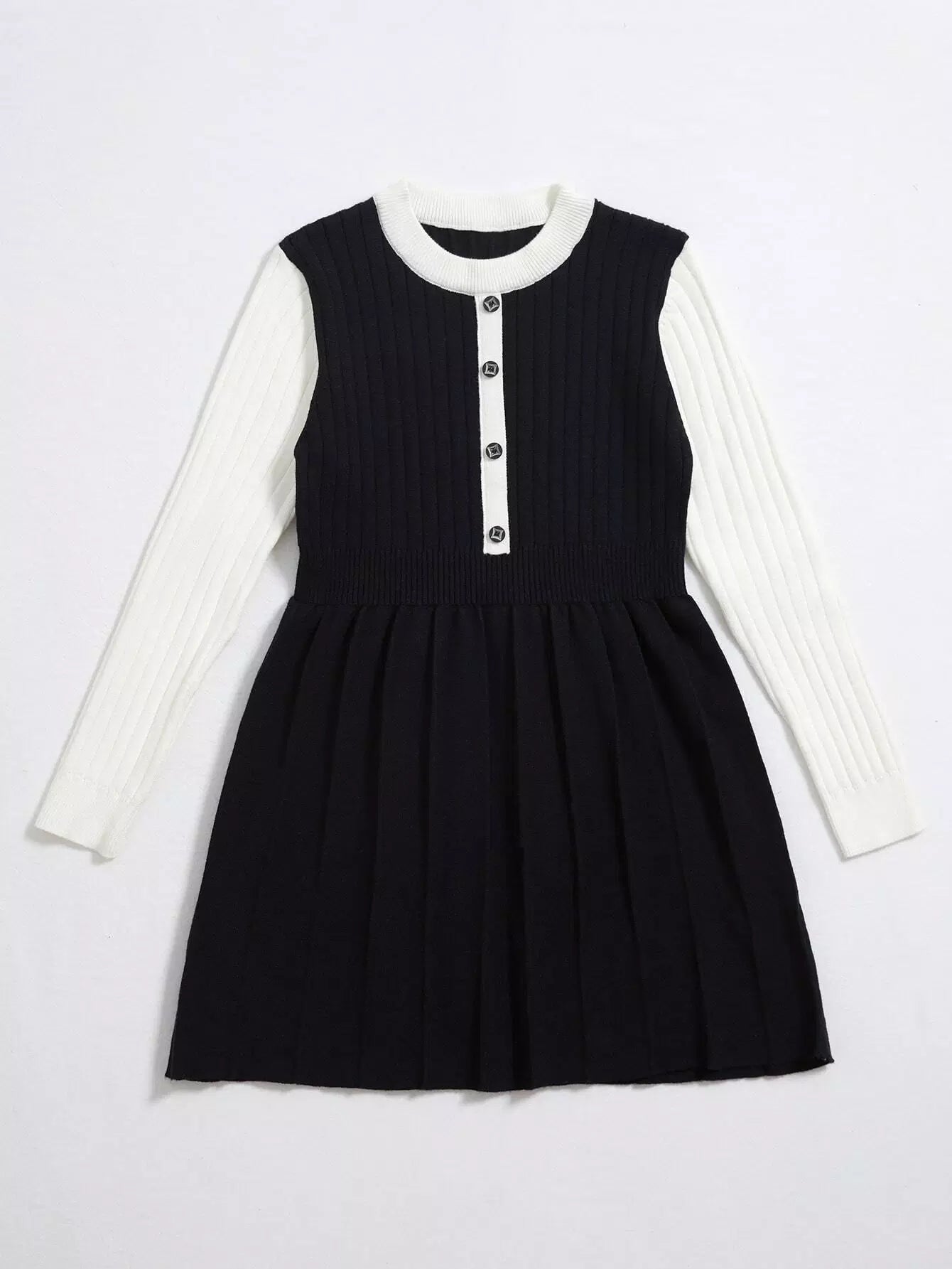 Girls Color Block Single Breasted Fold Pleated Sweater Dress