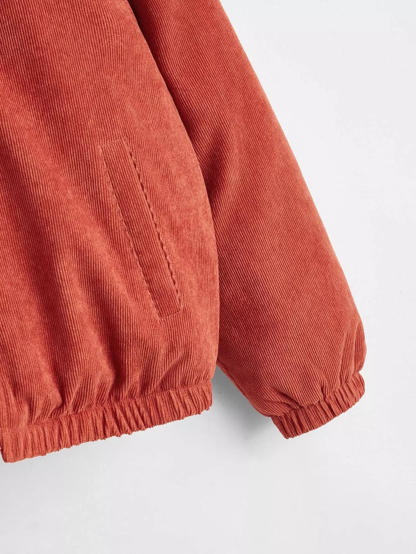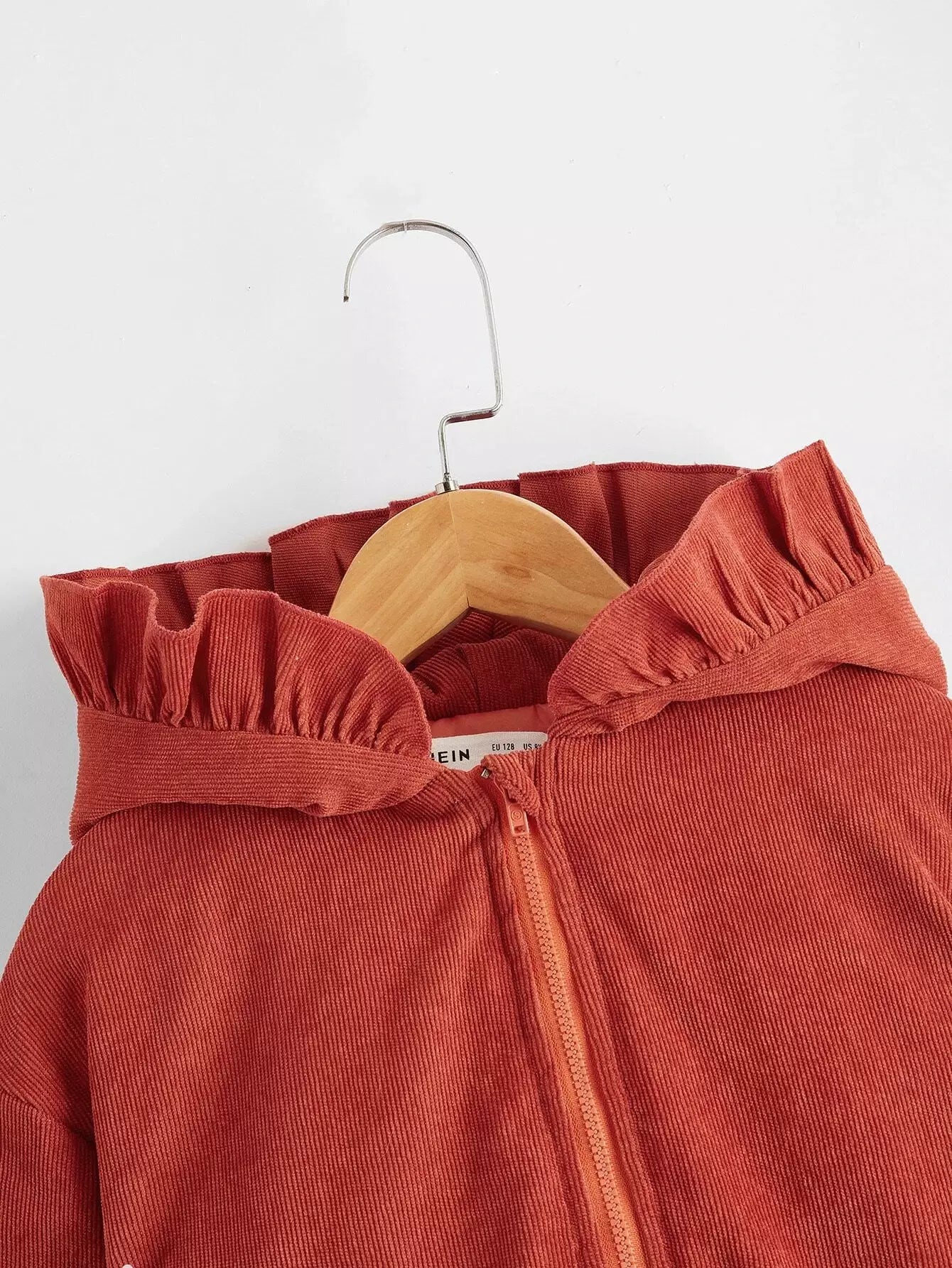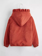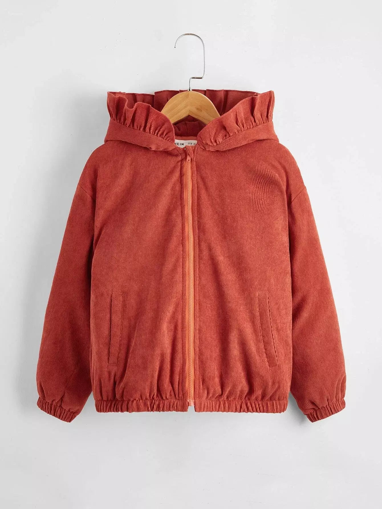 Girls Ruffle Trim Hooded Padded Cord Jacket