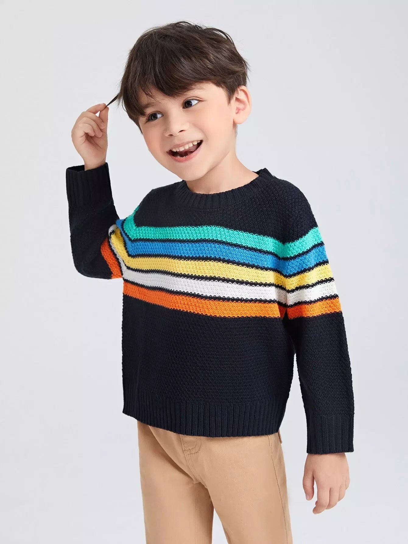 Toddler Boys Block Striped Pattern Sweater